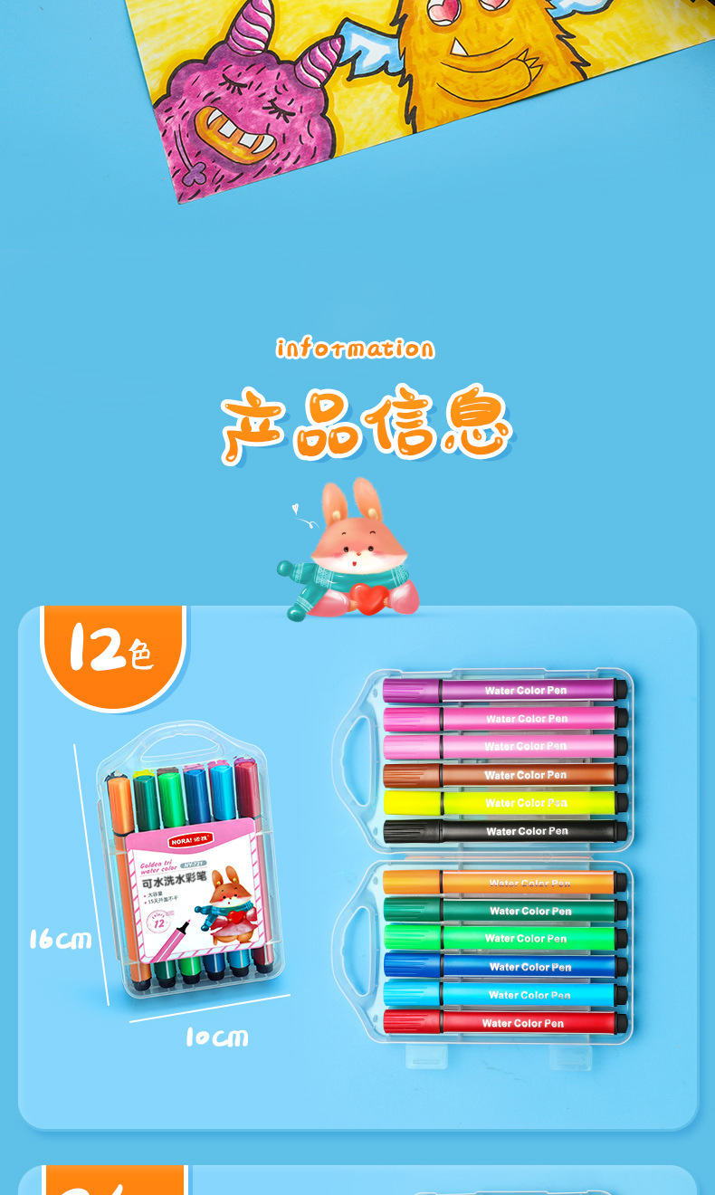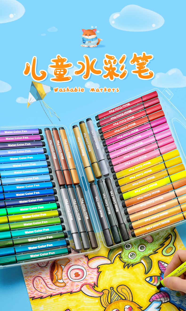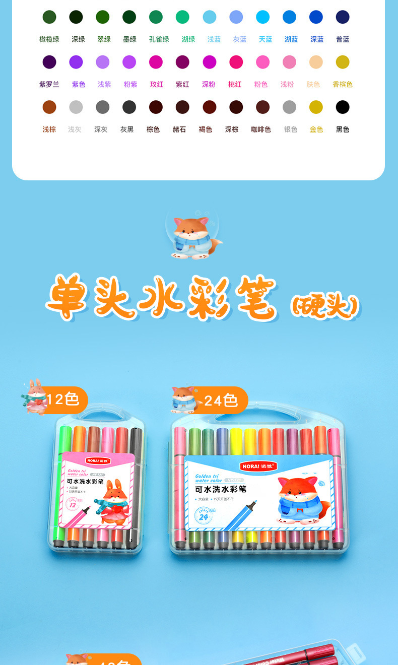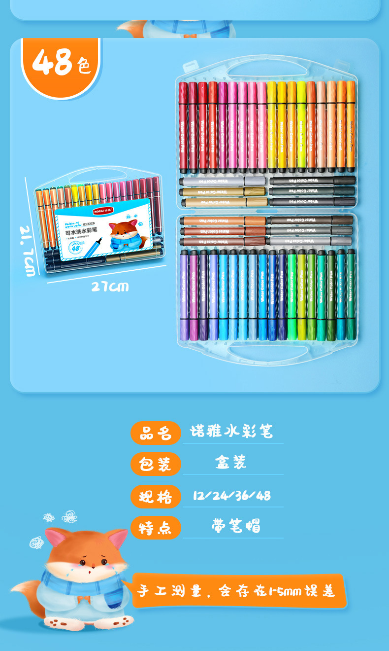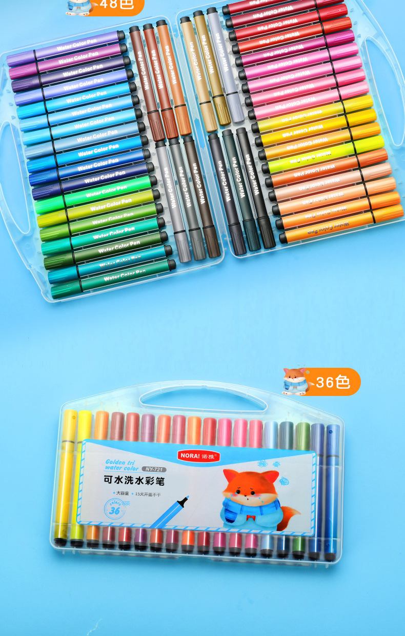 Nuoya 48-color acuarela pintura pincel niños pintura pluma lavable color pluma traje arte graffiti pluma fabricante