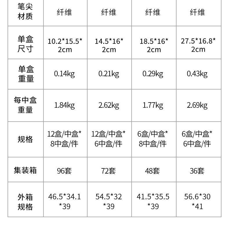 | Color | 12 colores,18 colores,24 colores,36 colores,48 colores |