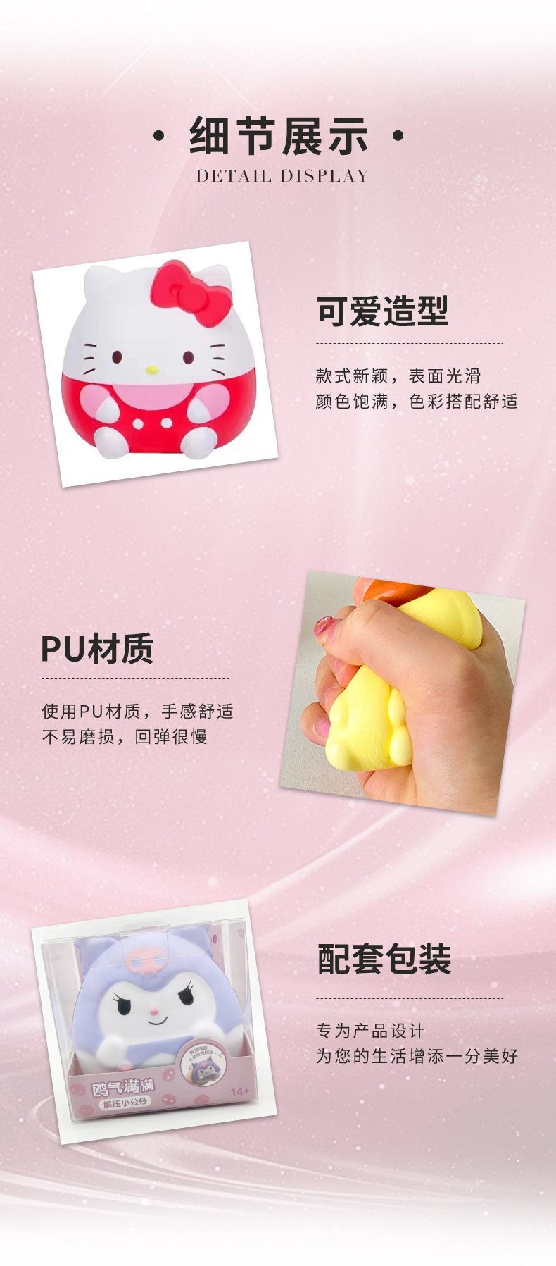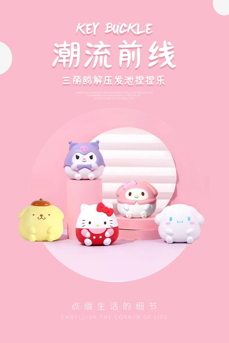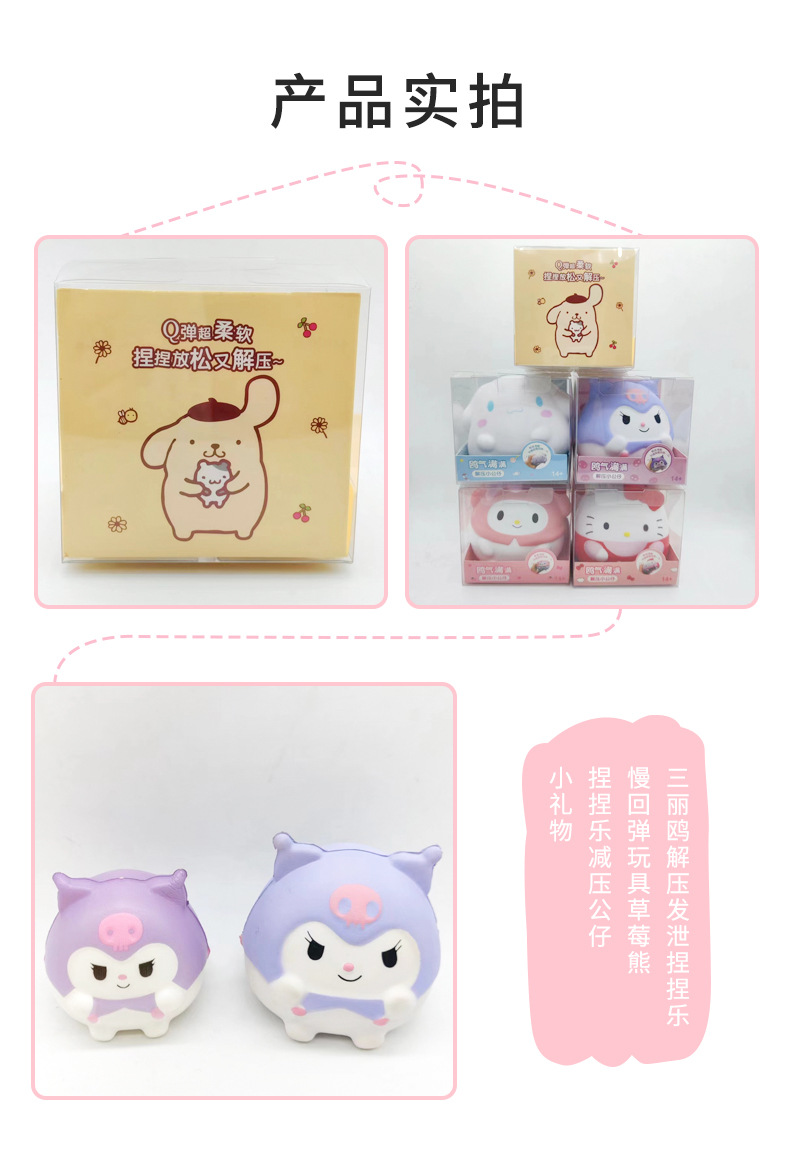 Sanrio descompresión ventilación pellizco música lento rebote juguete fresa oso pellizco música descompresión muñeca cura pequeño regalo