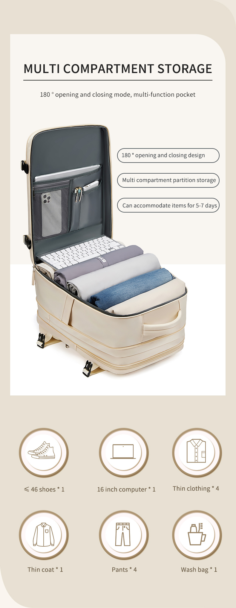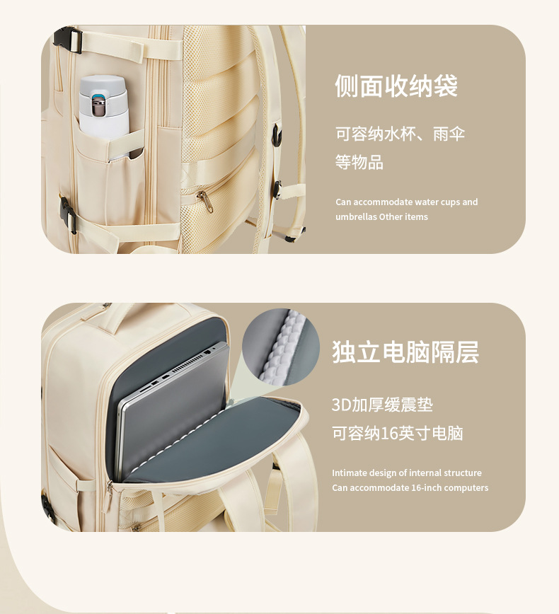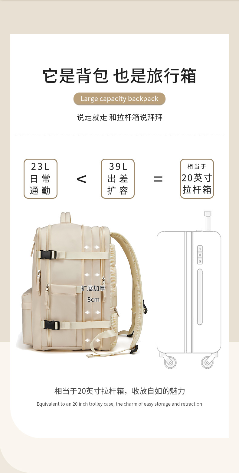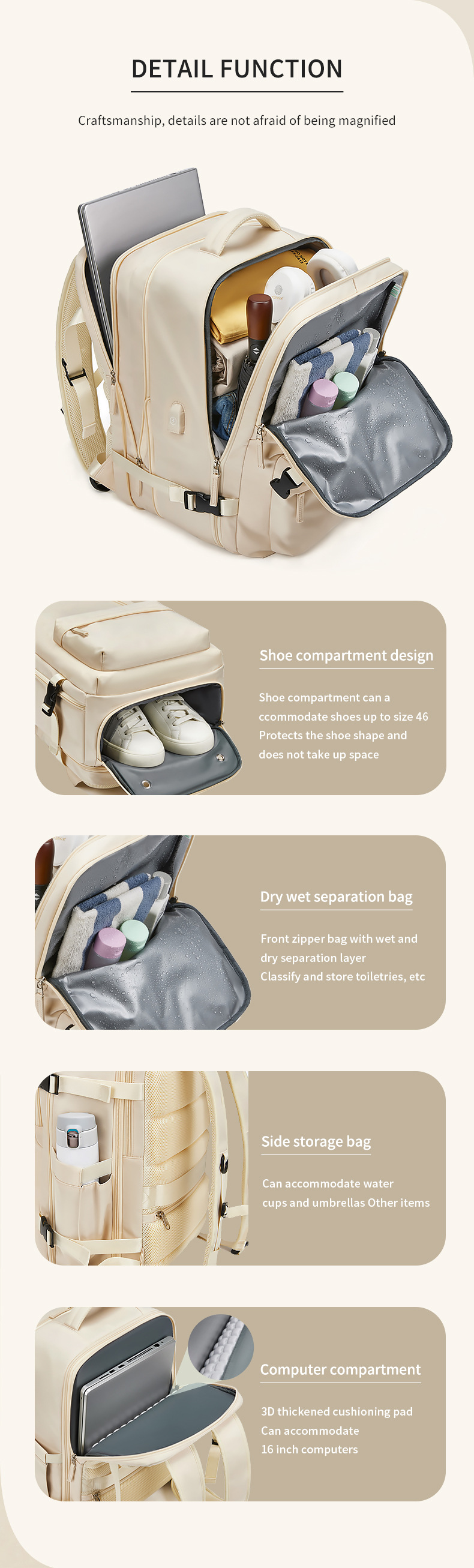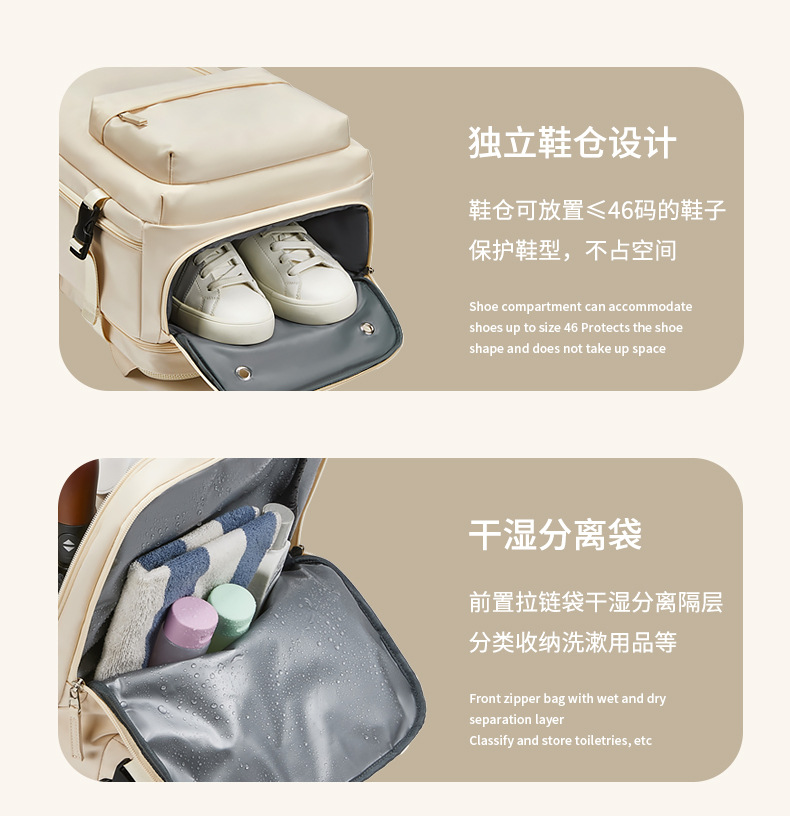 Mochila de gran capacidad Bolsa de ordenador de negocios para mujeres Bolsa de equipaje de corta distancia Bolsa de estudiante de escuela secundaria Mochila de separación húmeda y seca