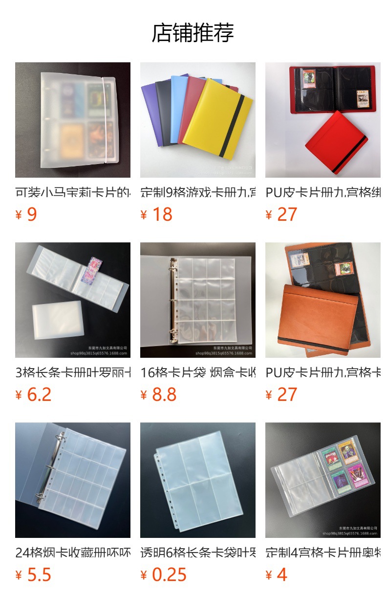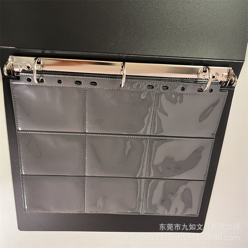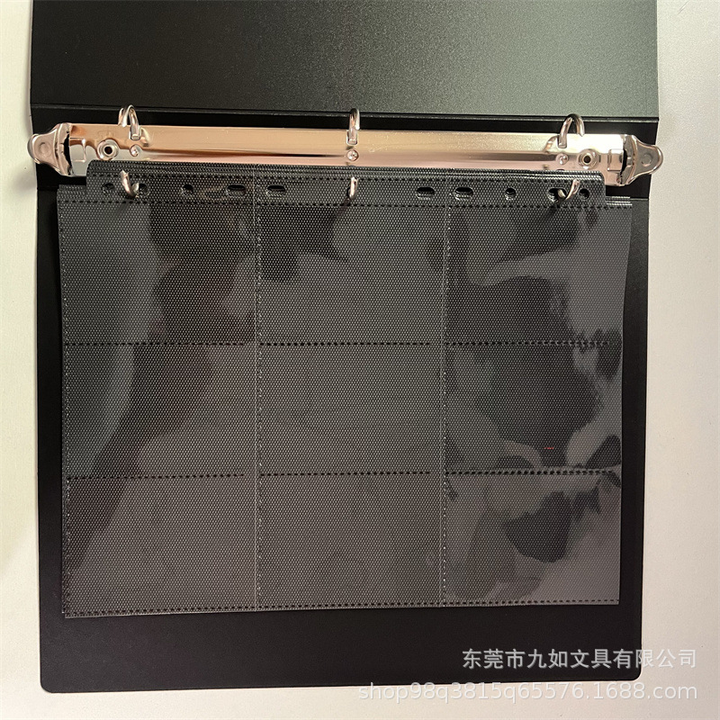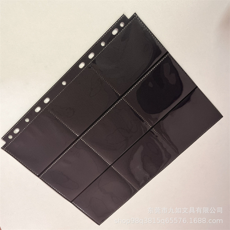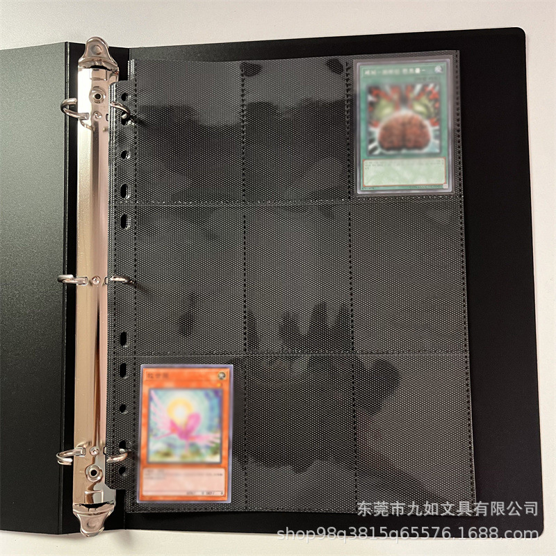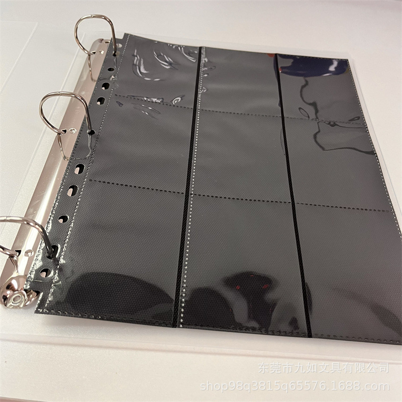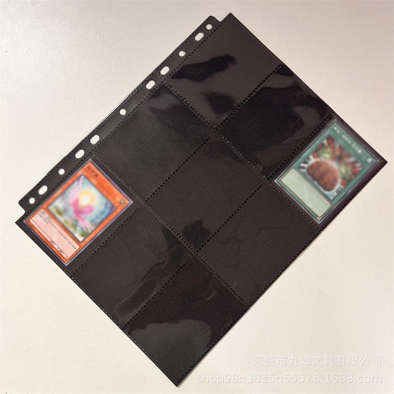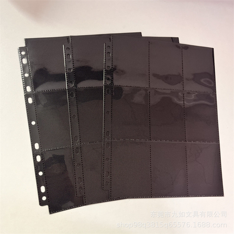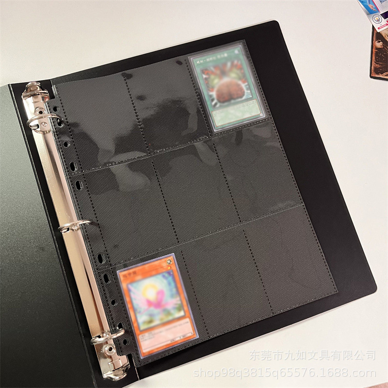 Carpeta de tarjetas de 9 ranuras con carga lateral de PP negra, en stock, adecuada para álbumes de tarjetas Nezha, álbumes de tarjetas de visita de hojas sueltas y tarjetas de juego con páginas interiores.