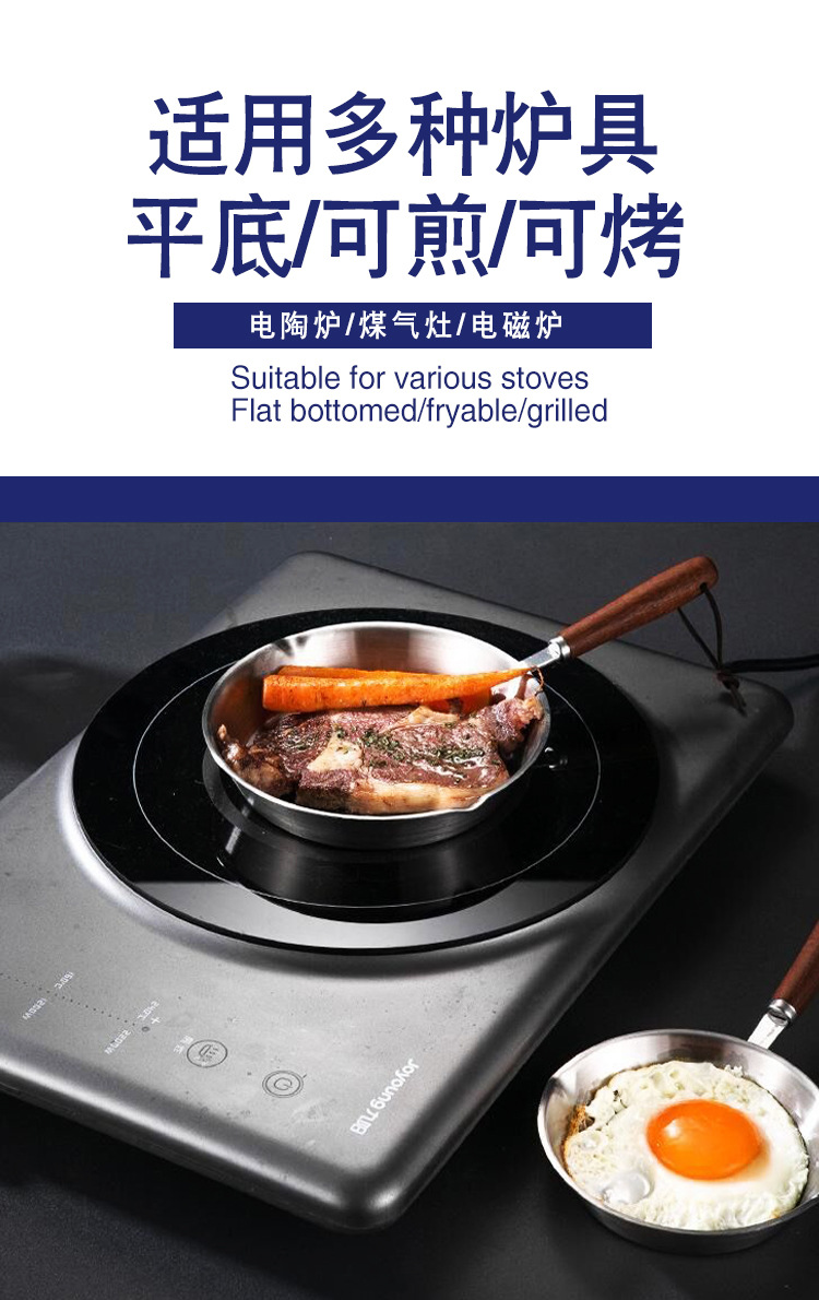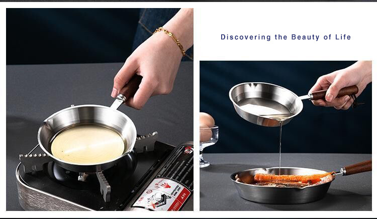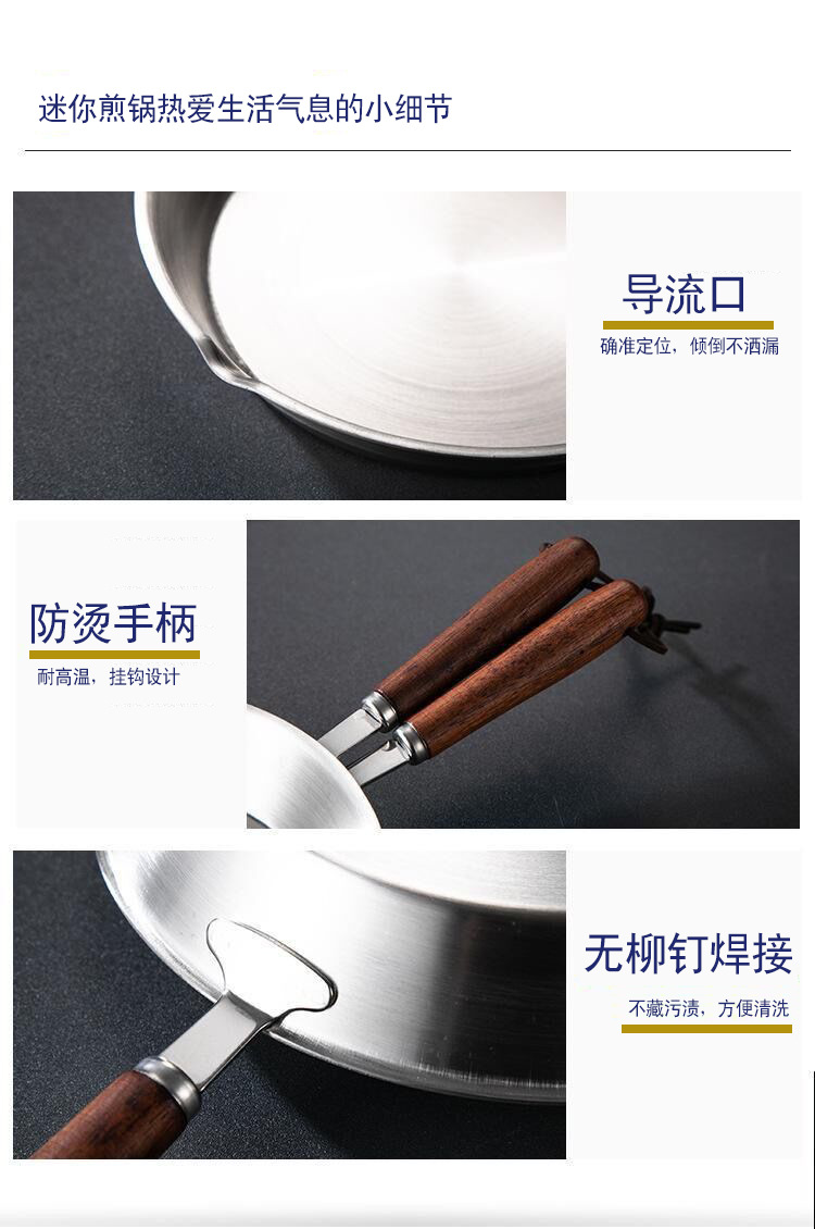 304 mini sartén de acero inoxidable sartén especial de aceite caliente para cocina de inducción hogar suplemento alimenticio pan de tortilla de fondo plano al por mayor