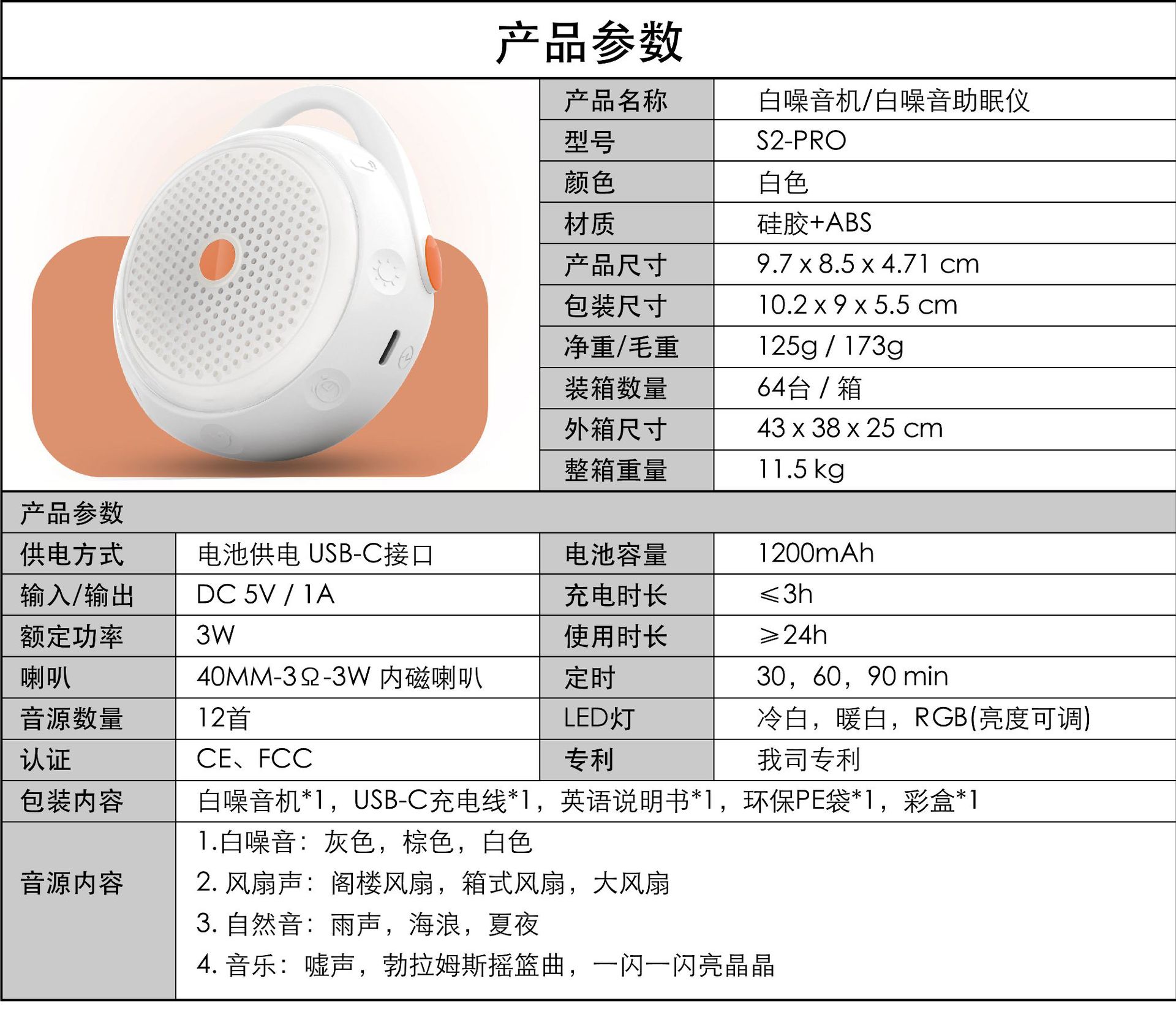 Portátil blanco ruido sueño ayuda bebé sueño ayuda artefacto batería incorporada LED respiración noche luz transfronteriza