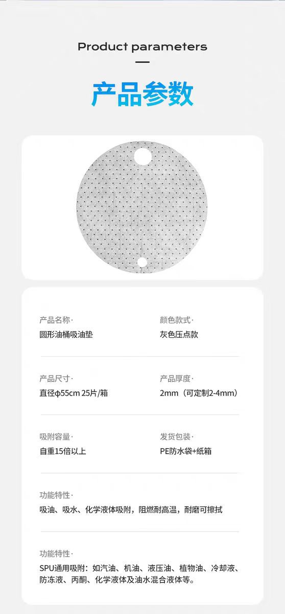 55cm de diámetro blanco gris amarillo aceite de succión de aceite de tambor almohadilla química a prueba de fugas tipo común