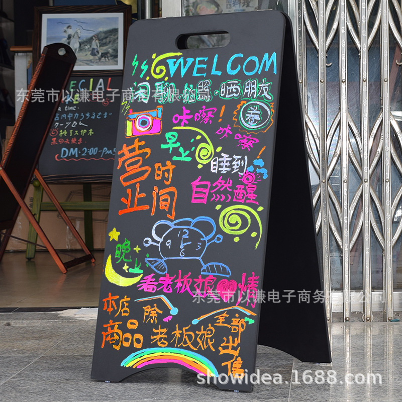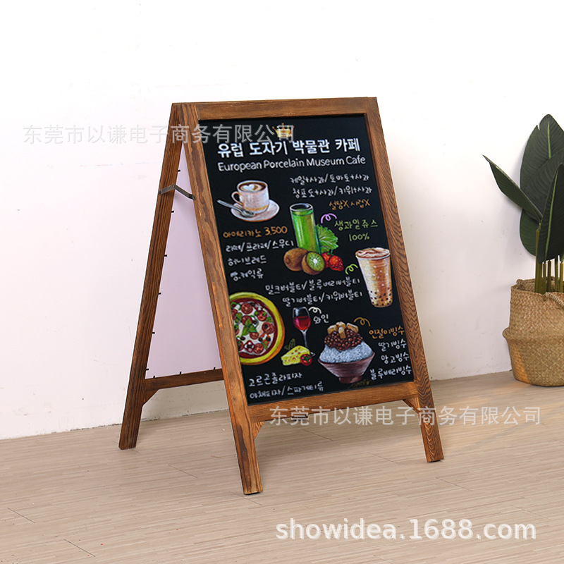 Tienda de pizarra pequeña de doble cara de madera maciza con apertura comercial reclutamiento creativo tablero de publicidad vertical al aire libre pantalla a prueba de viento