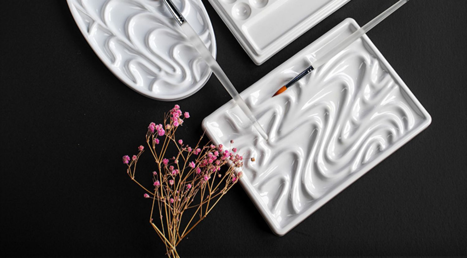 Bandeja de colores grande, imitación de porcelana, pintura rectangular gruesa, necesidades diarias, arte, pintura de acuarela, bandeja de pintura de cerámica