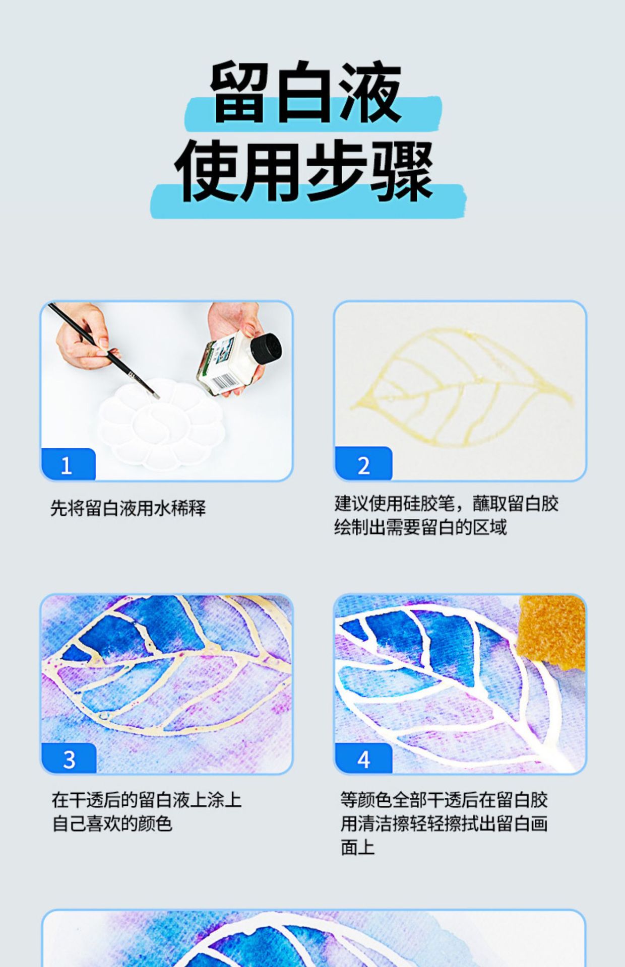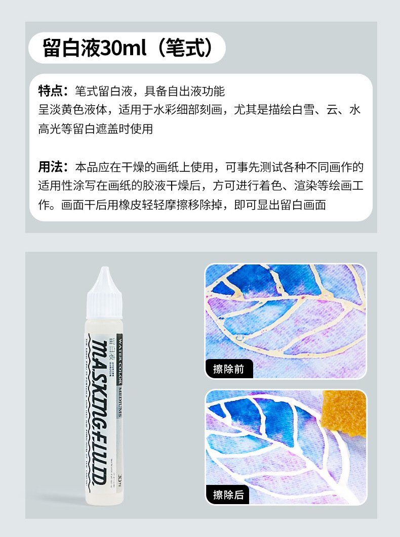 Haite Blanqueamiento Líquido Pintura de color Acuarela Goma arábiga Pintura de bilis Líquido de cubierta de modificación en blanco