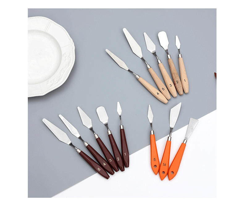 Transfronterizo DE ARTE pequeño triángulo de acero inoxidable de madera multifunción Tarjeta de succión color mezcla pala estudiante pintura al óleo raspador