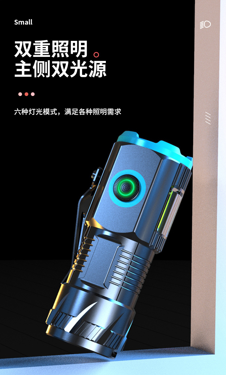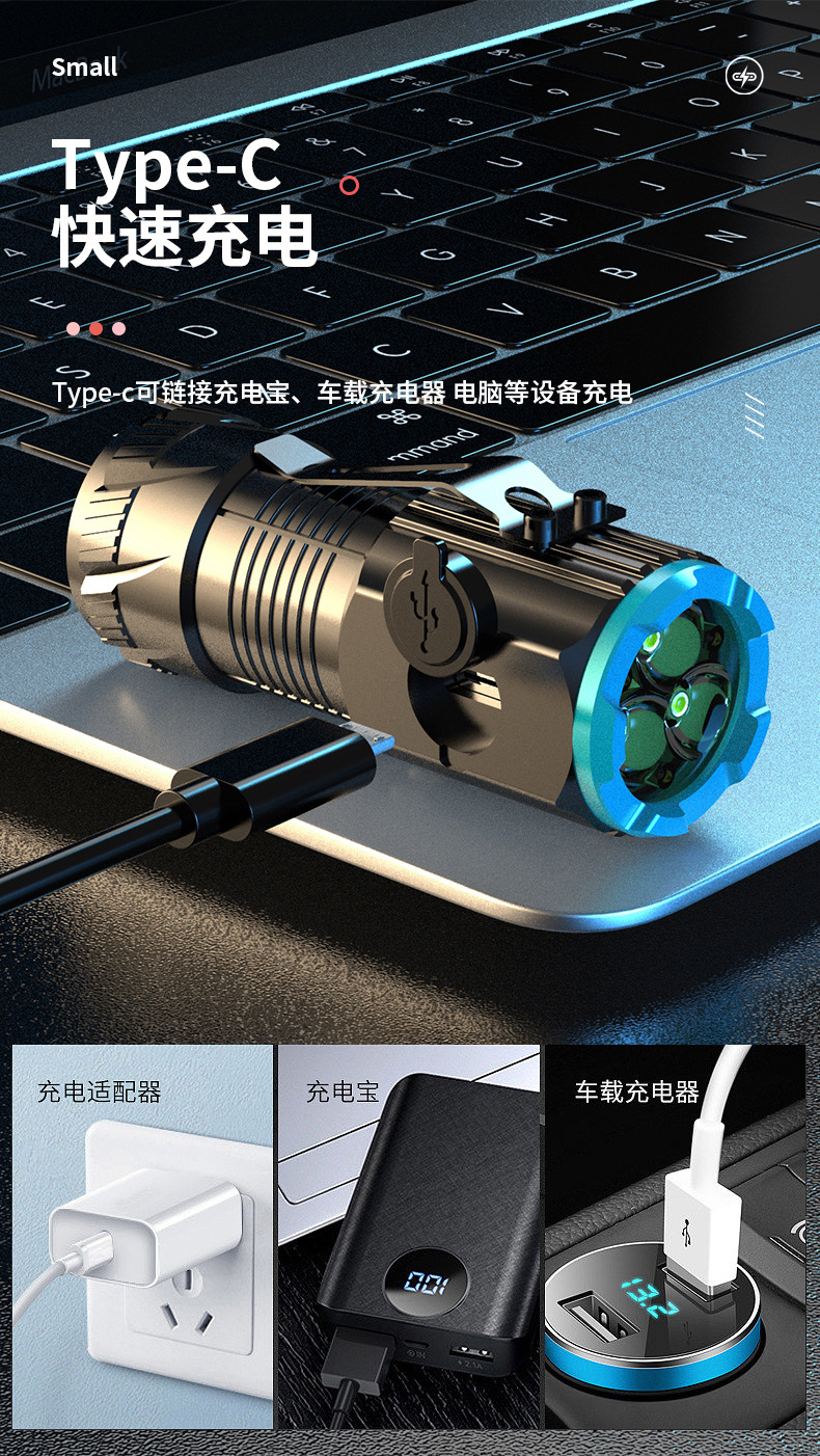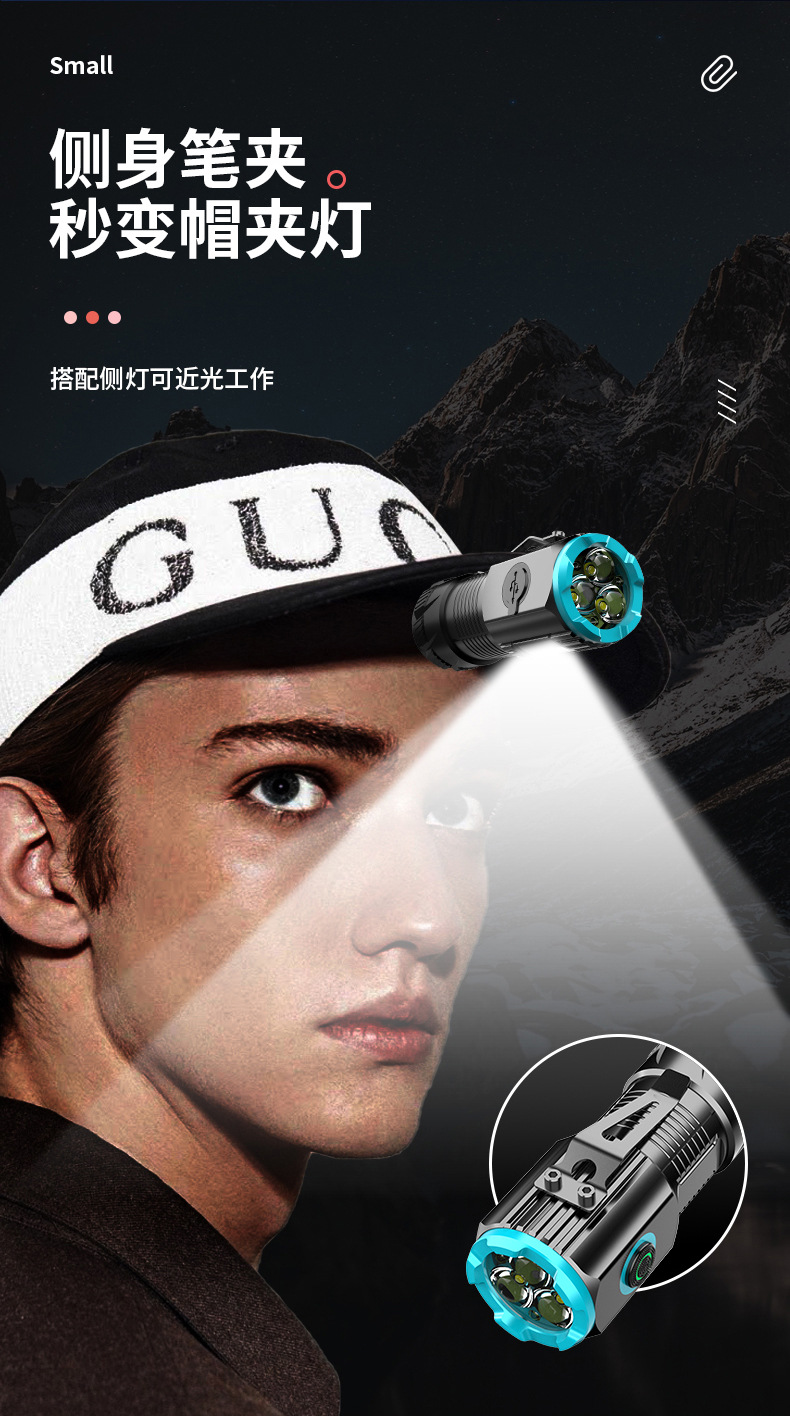 Al Aire Libre de tres ojos linterna aleación de aluminio tapa magnética clip pequeña pistola de acero multi-funcional tipo-c portátil transfronteriza nuevo