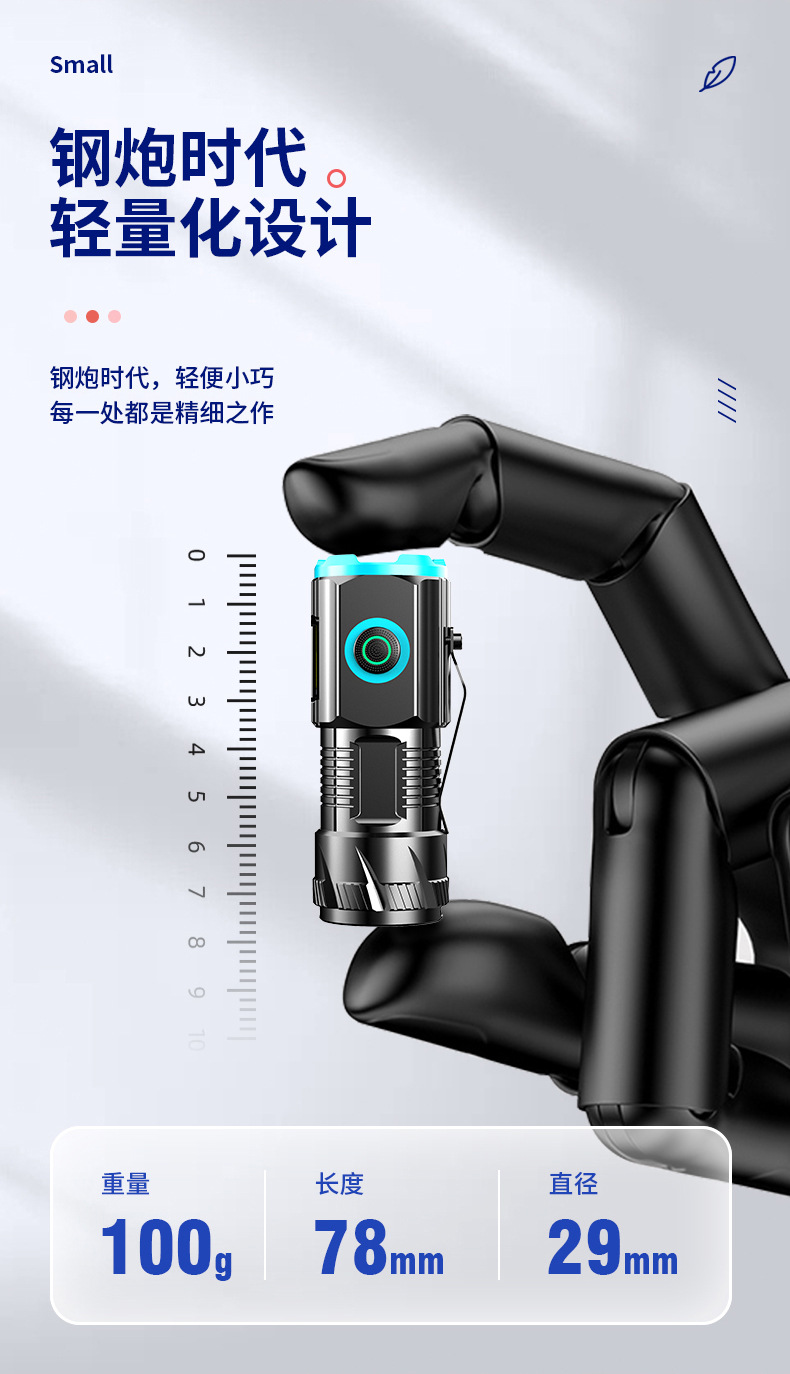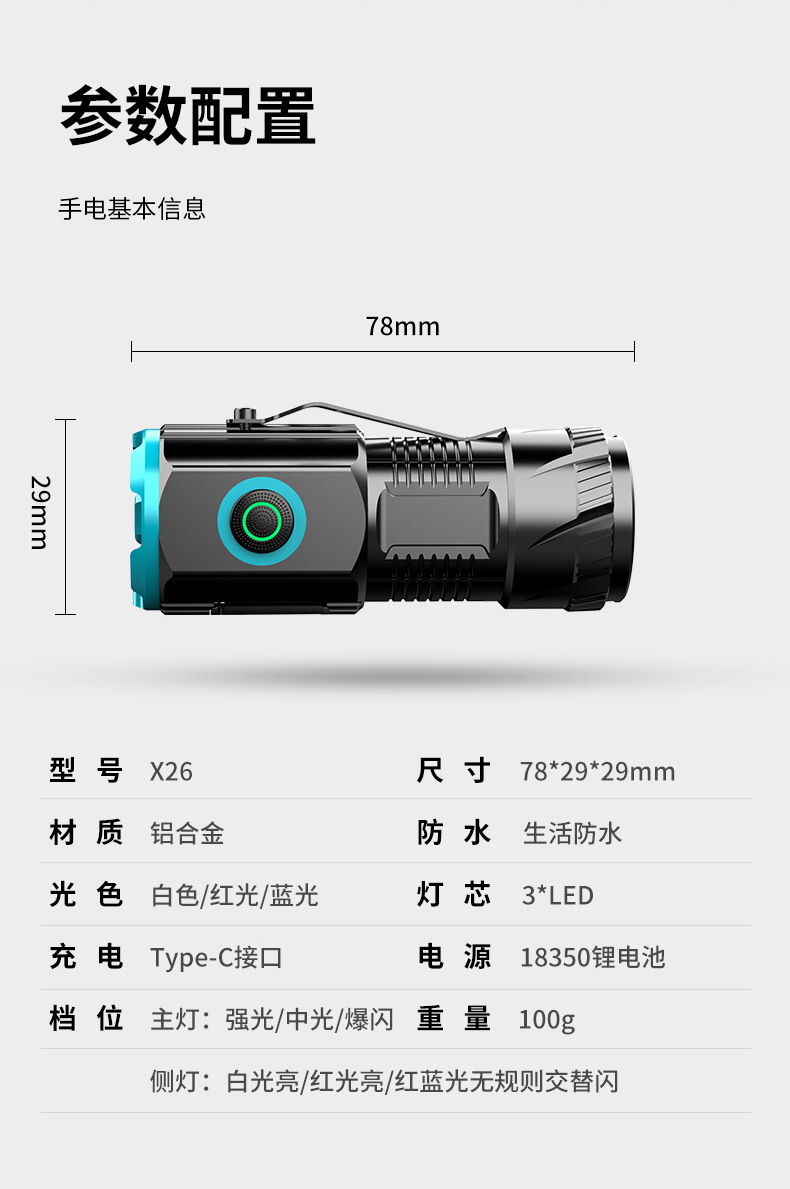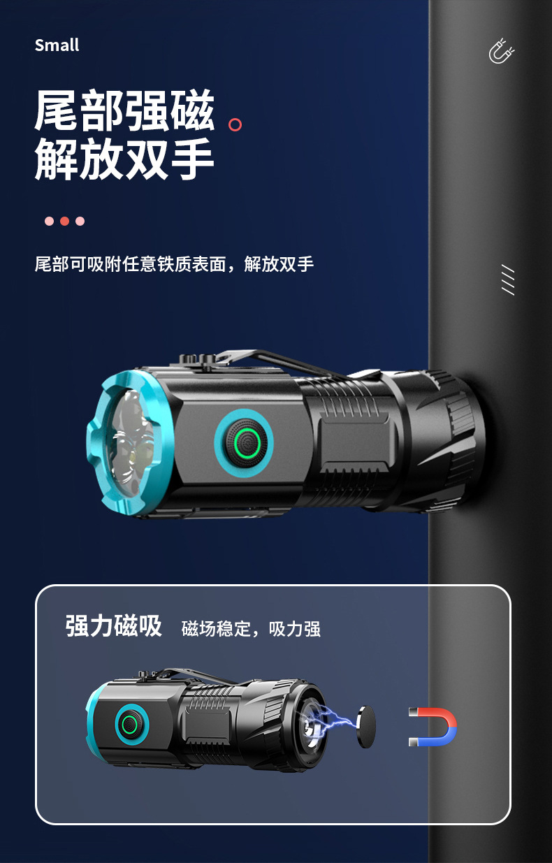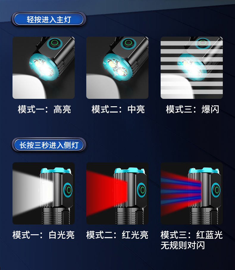 Al Aire Libre de tres ojos linterna aleación de aluminio tapa magnética clip pequeña pistola de acero multi-funcional tipo-c portátil transfronteriza nuevo
