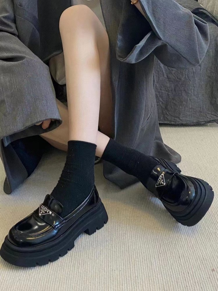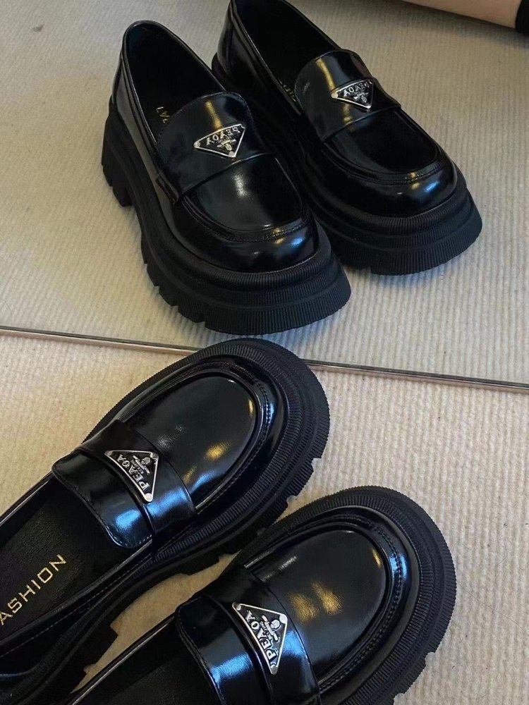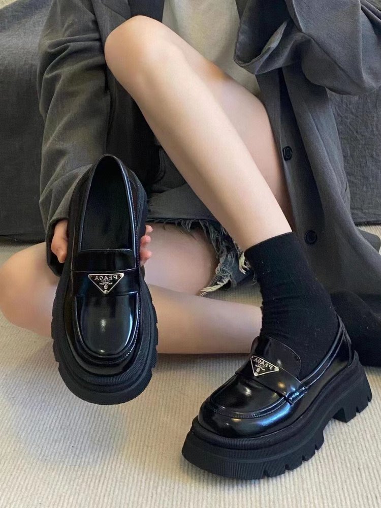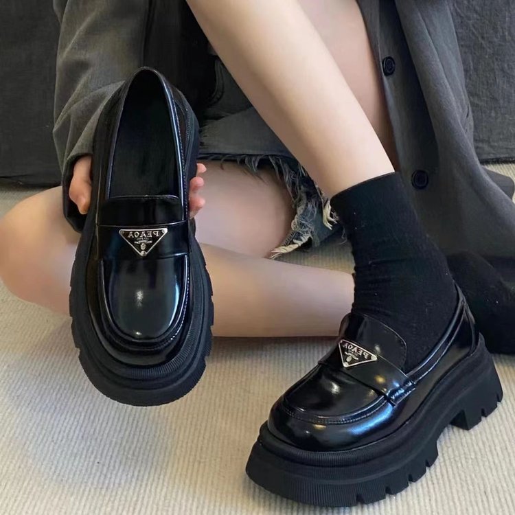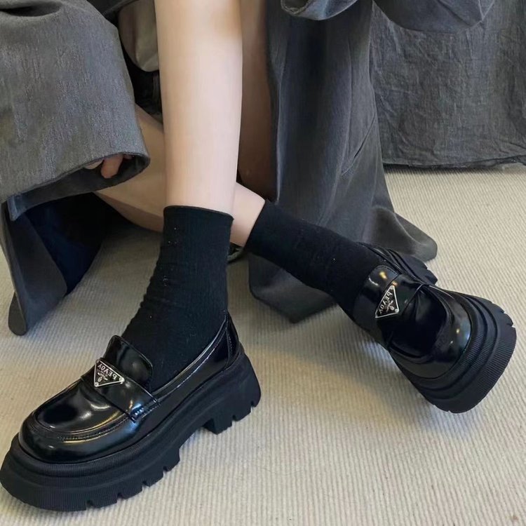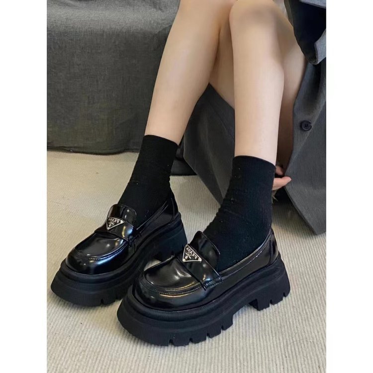 Plataforma de comercio exterior mocasines de las mujeres 2024 nueva moda casual negro grueso Talón de una sola capa de zapatos de estilo británico zapatos de deslizamiento