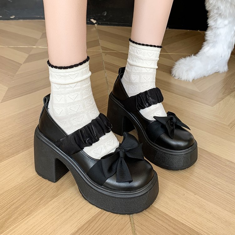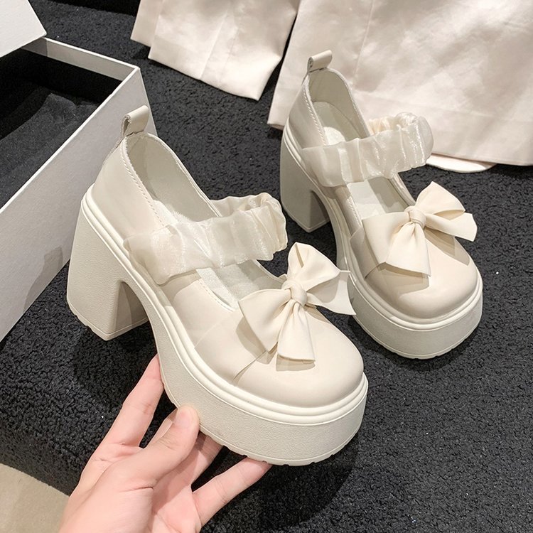 Estilo británico Mary Jane zapatos de cuero 2024 primavera nueva plataforma tacón grueso zapatos de una sola capa de las mujeres slip-on mocasines