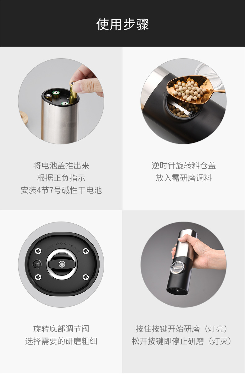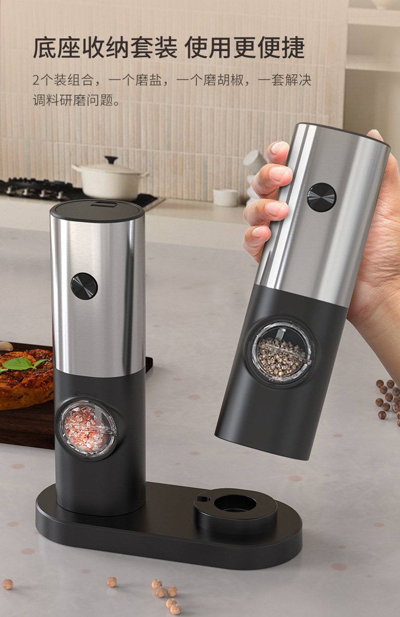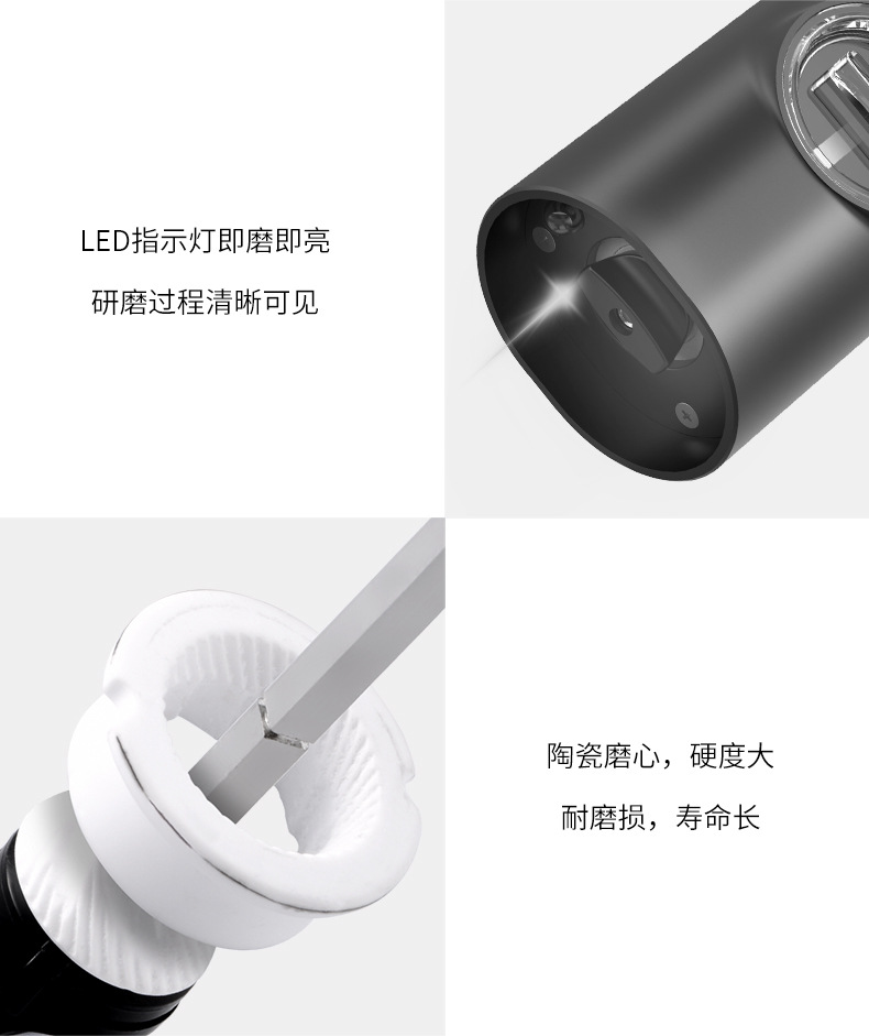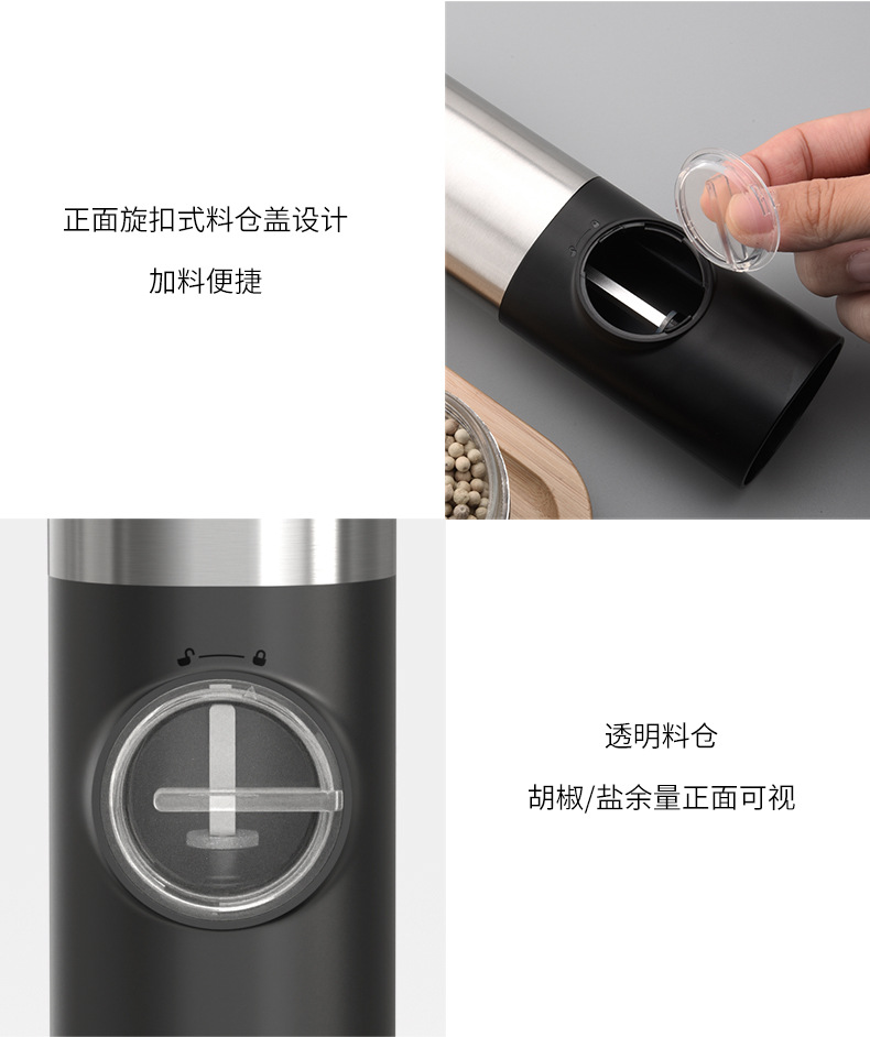 Inducción automática eléctrica molinillo de pimienta espesor botella de condimento sal de mar pimienta Zhitong molino de harina