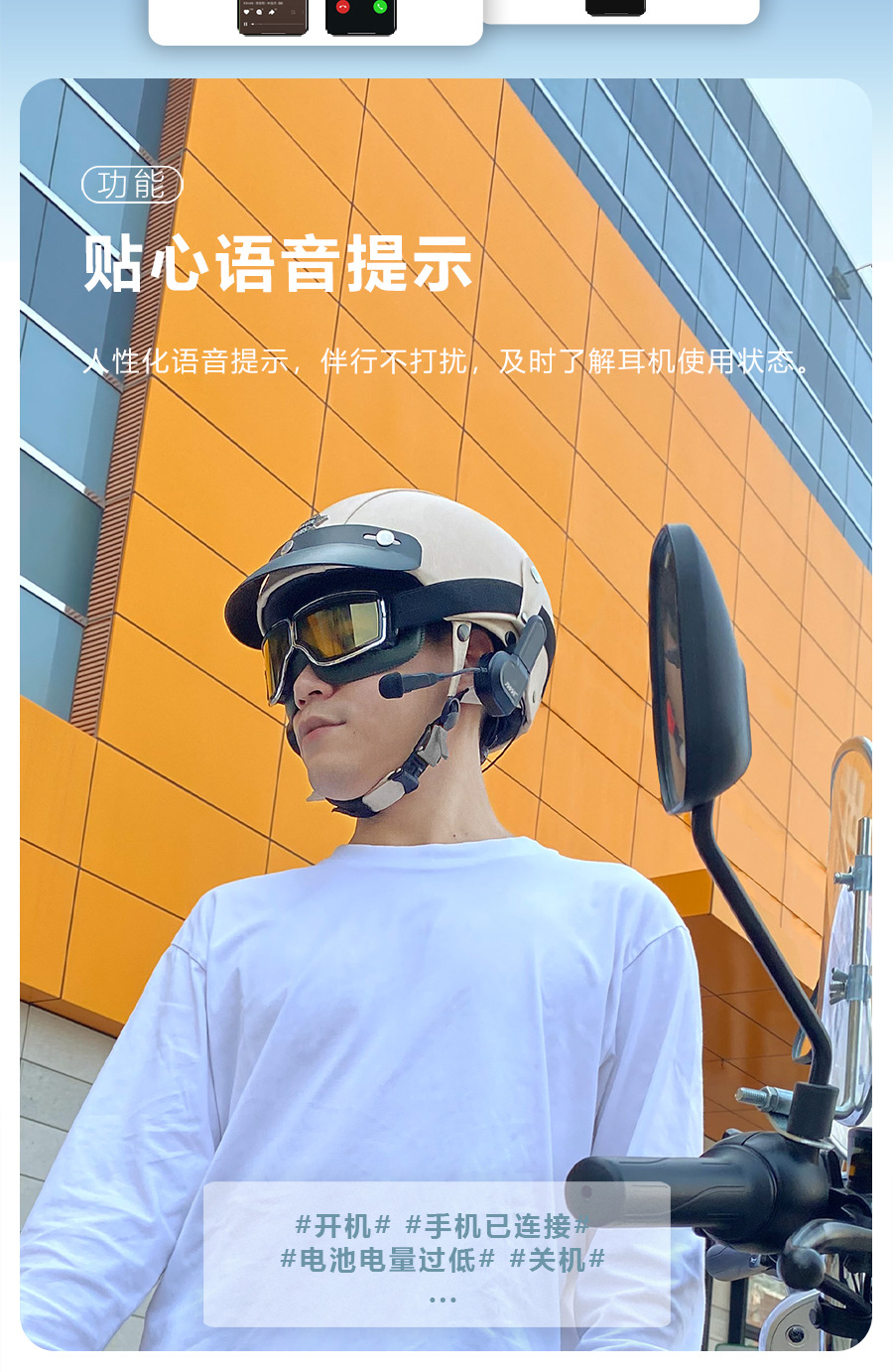 Llevar-out rider 1/2 verano media cubierta casco auricular Bluetooth adhesivo coche eléctrico llamada Bluetooth