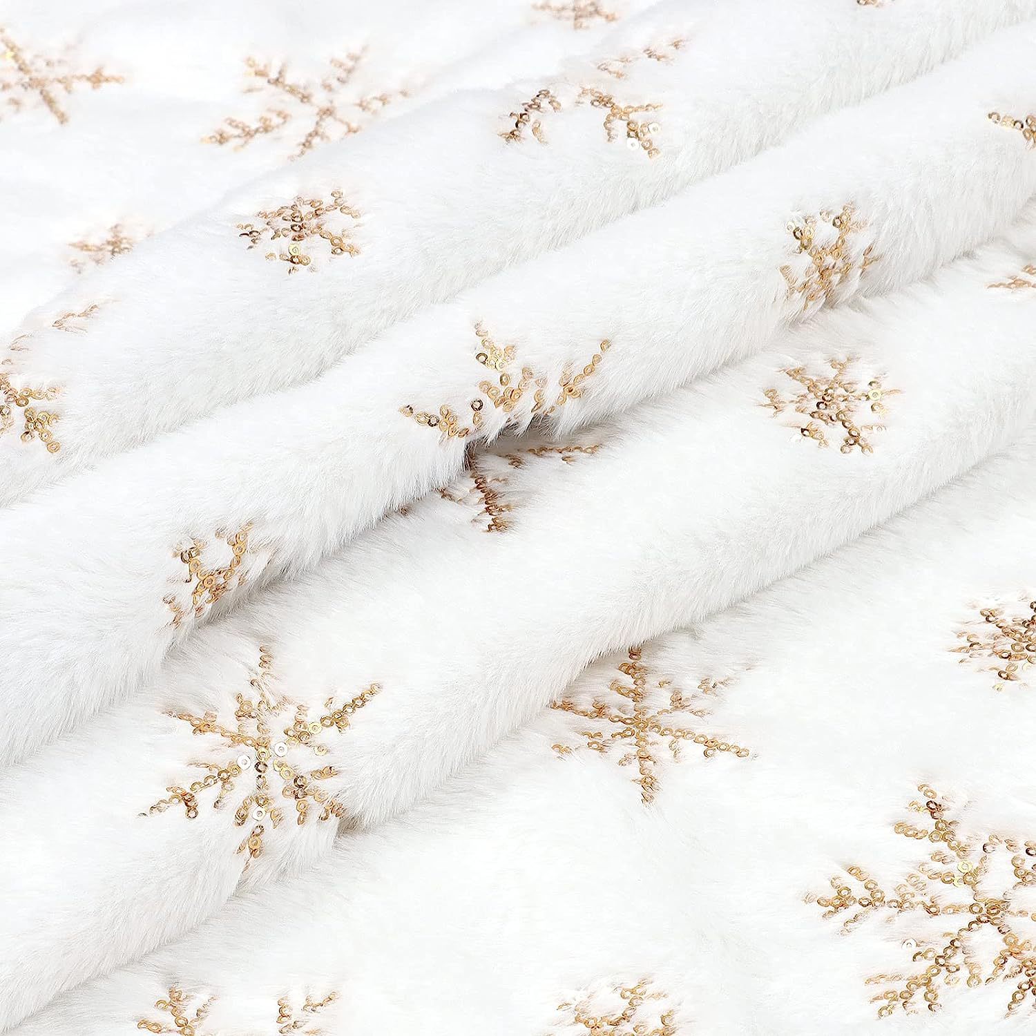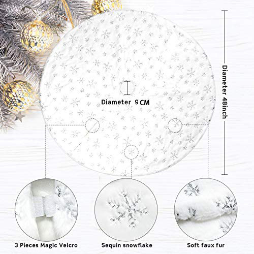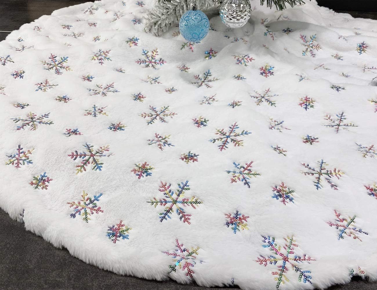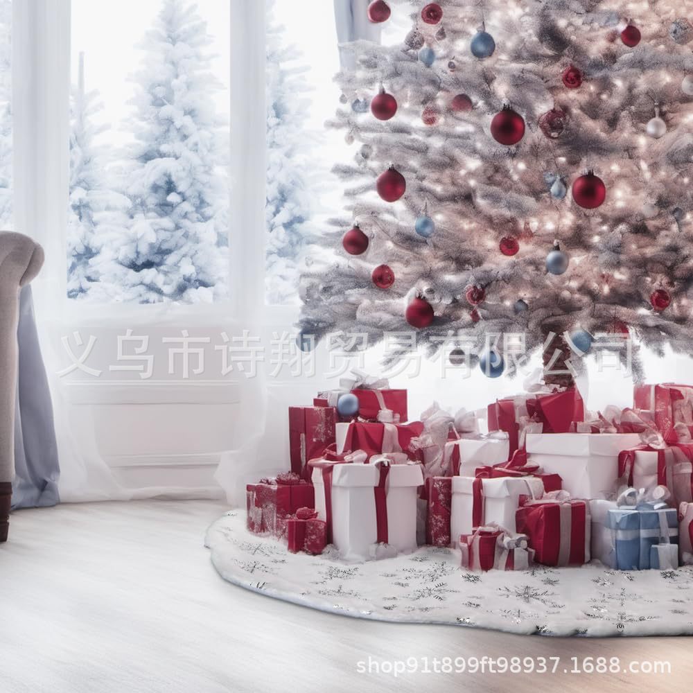 Falda para árbol de Navidad transfronteriza, falda para árbol de lentejuelas con copos de nieve nacarados, falda para árbol bordada de felpa blanca, decoración para árbol de Navidad