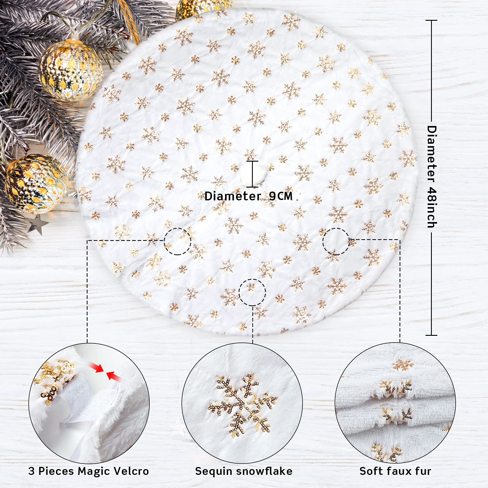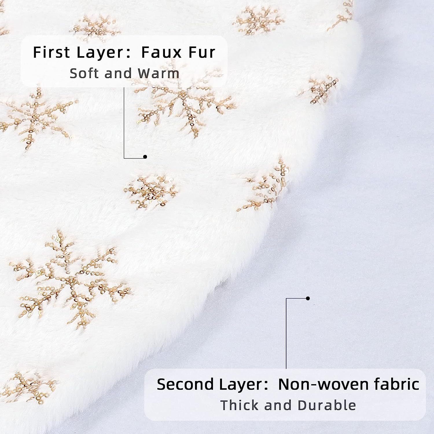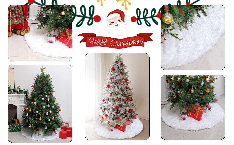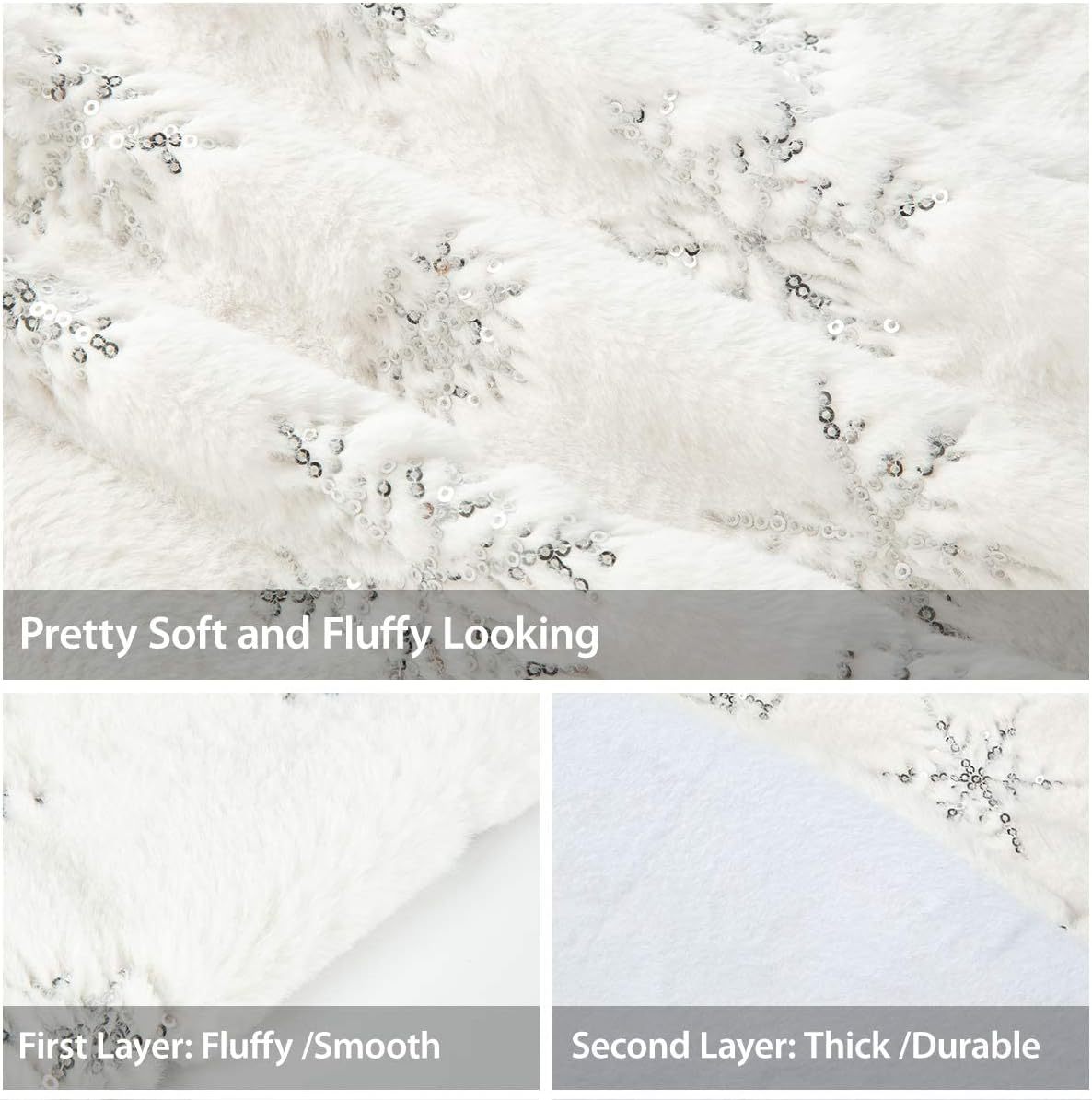 Falda para árbol de Navidad transfronteriza, falda para árbol de lentejuelas con copos de nieve nacarados, falda para árbol bordada de felpa blanca, decoración para árbol de Navidad
