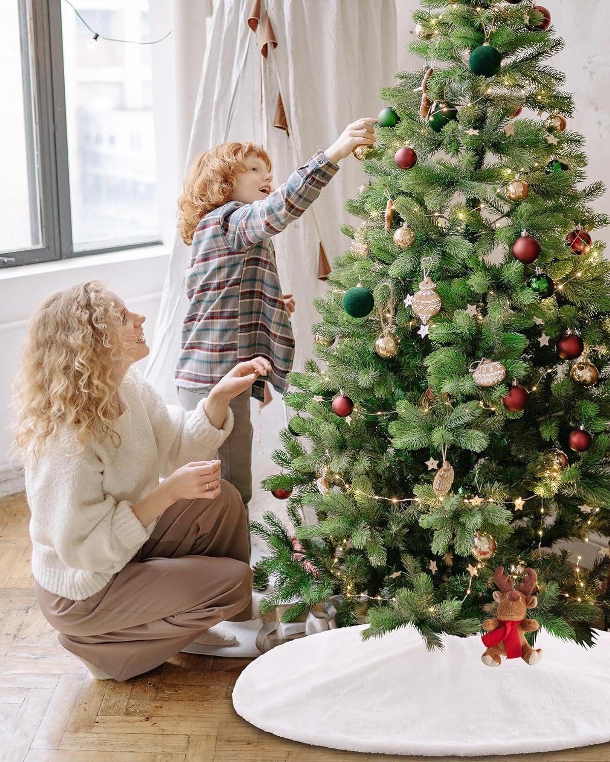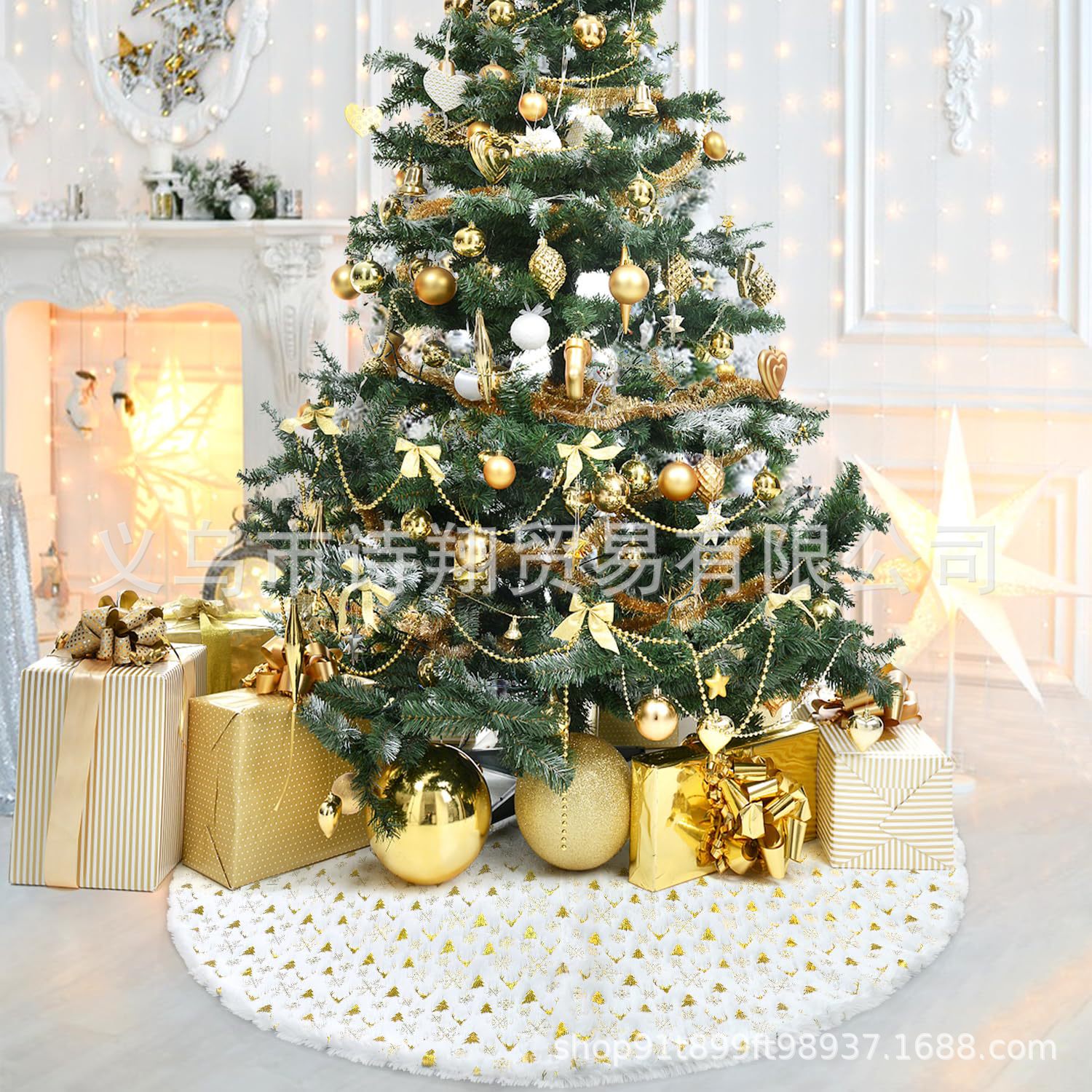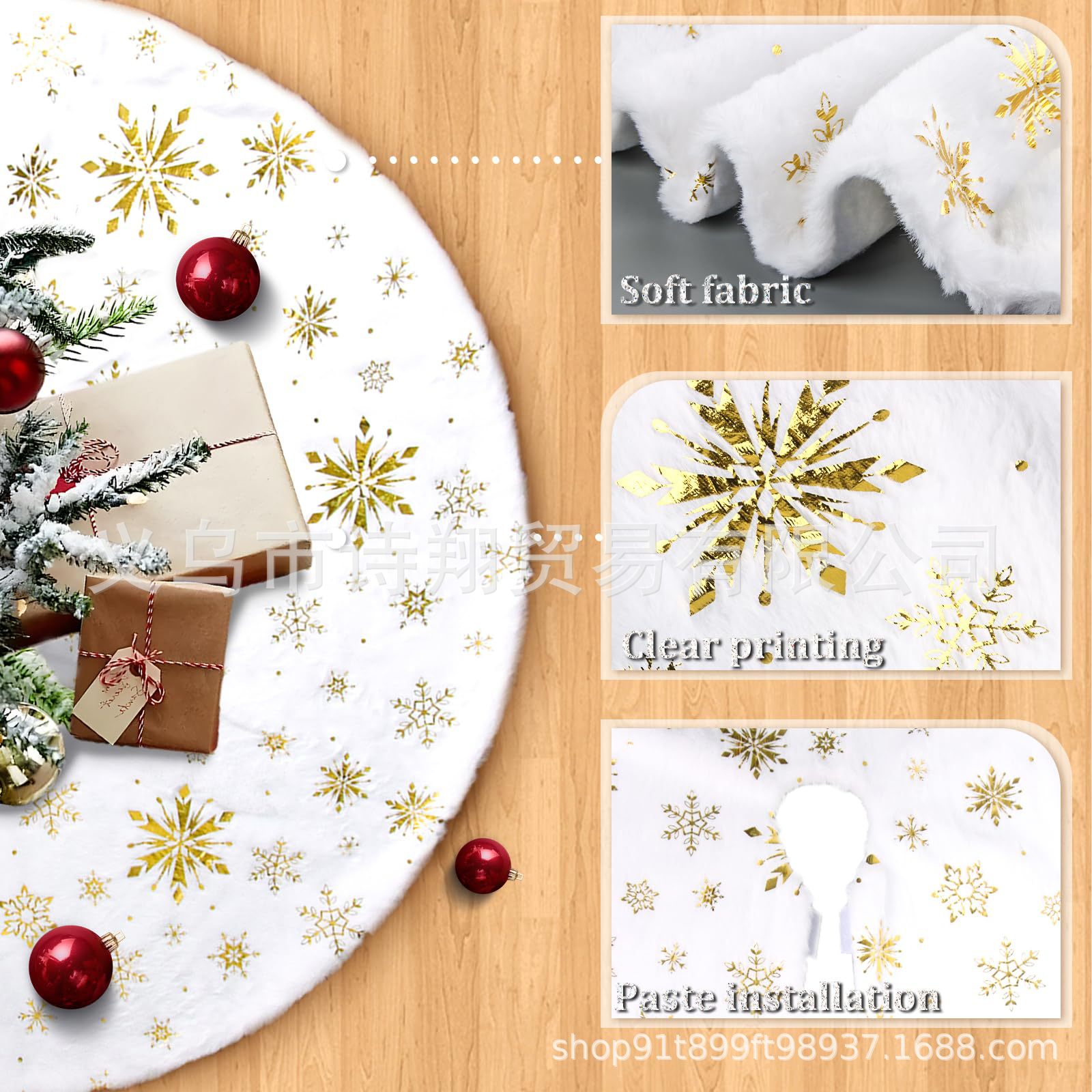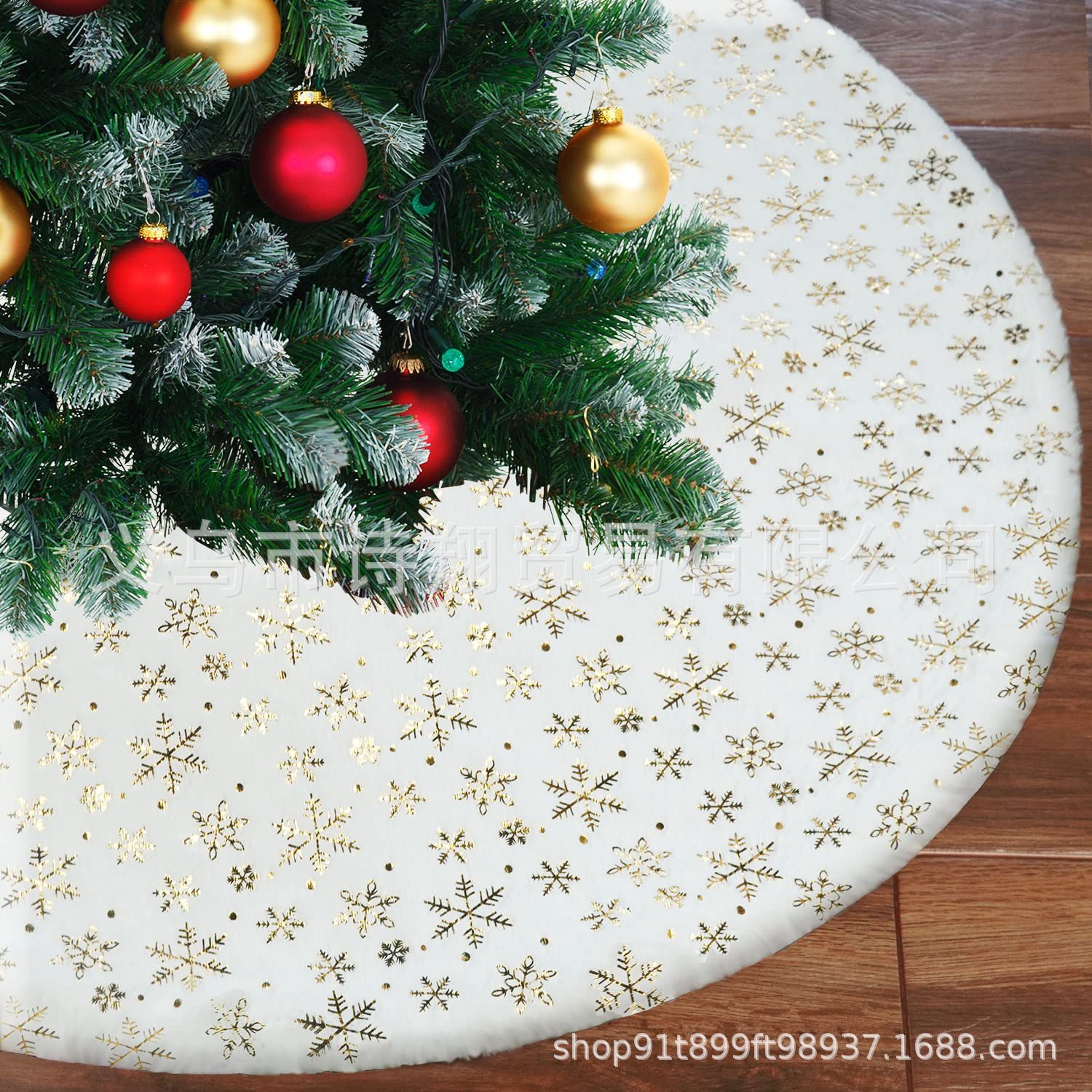 Falda para árbol de Navidad transfronteriza, falda para árbol de lentejuelas con copos de nieve nacarados, falda para árbol bordada de felpa blanca, decoración para árbol de Navidad