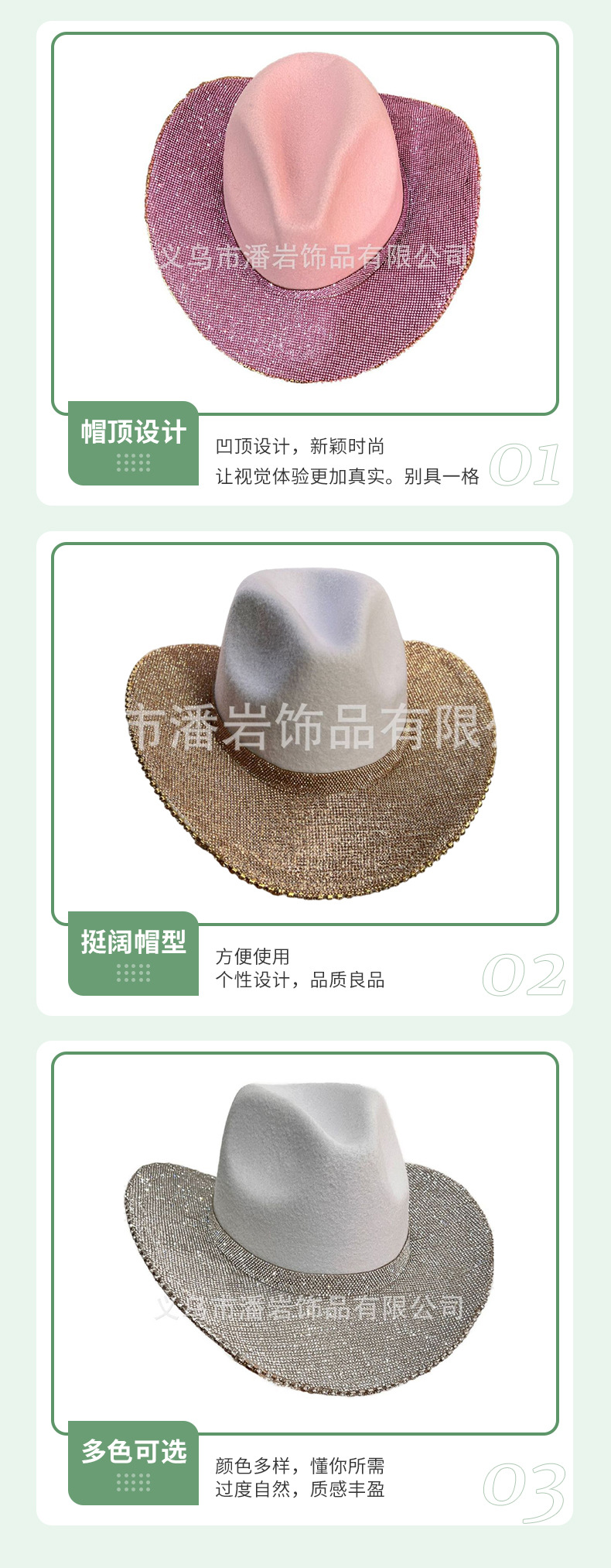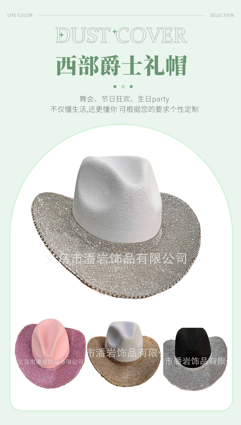 Sombreros de estilo europeo y americano para comercio exterior, sombreros de vaquero occidentales, sombreros de jazz para hombres y mujeres con pedrería, sombreros de fieltro de lana con ala ancha