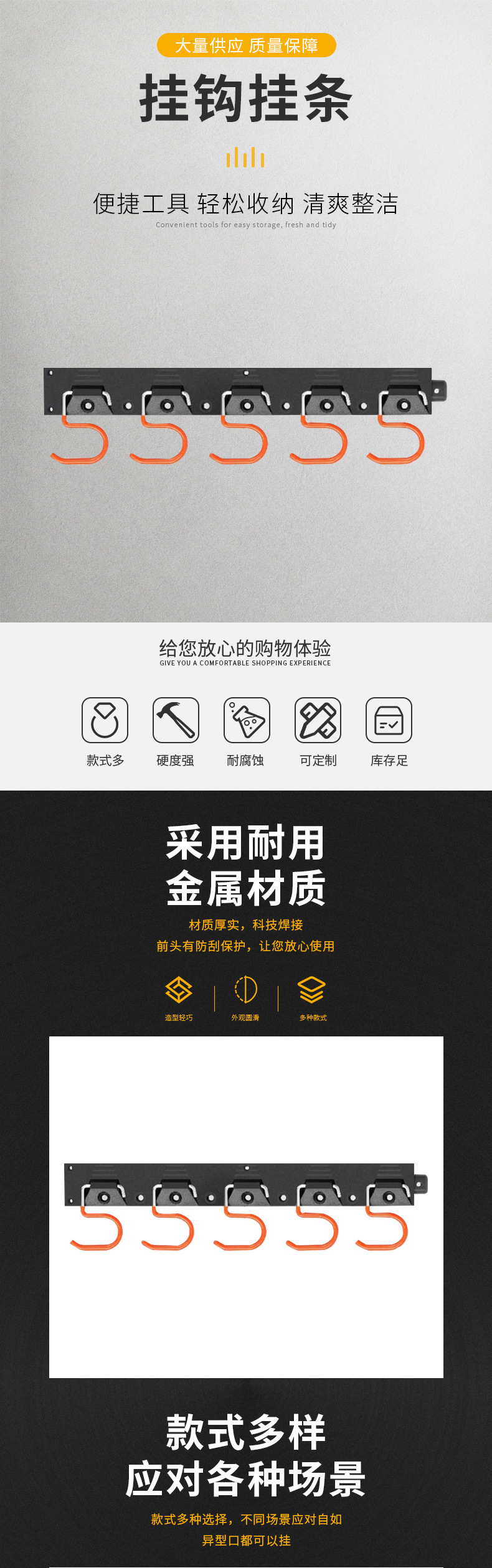 Gancho de garaje transfronterizo, tablero de pared, gancho de metal, fregona, herramienta de almacenamiento de pala, almacenamiento de herramientas de jardín de almacén