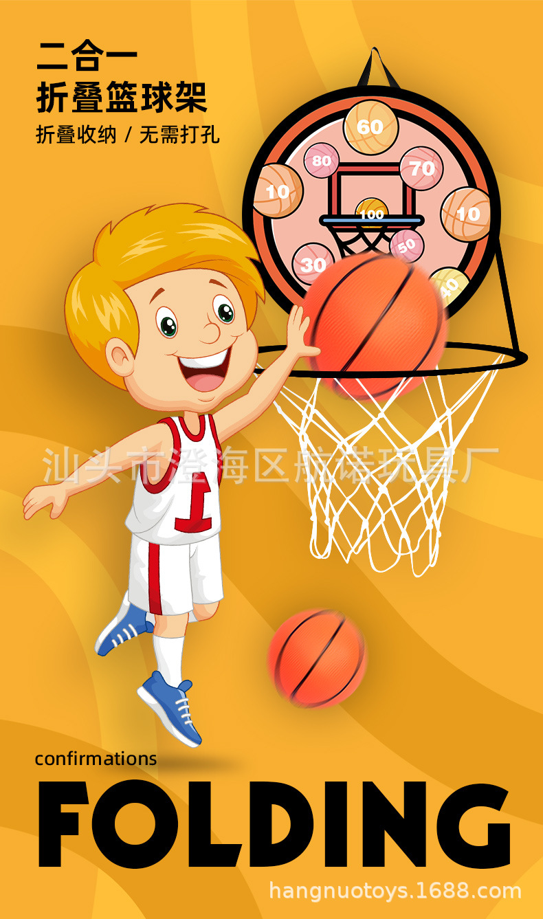 Soporte de baloncesto plegable dos en uno para niños transfronterizos sin perforar tablero de baloncesto deportes de interior juguete de marco de tiro con bola pegajosa