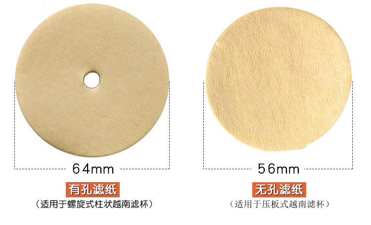 Agujero redondo papel de filtro de café 64/82/95mm papel de filtro de café agujero medio Vietnam olla presión francés olla papel de filtro
