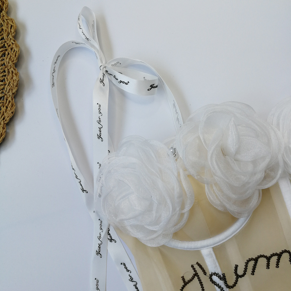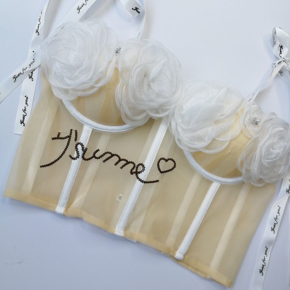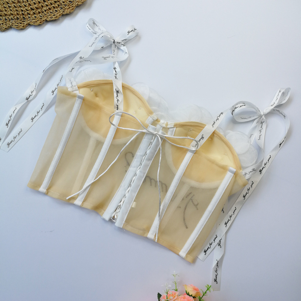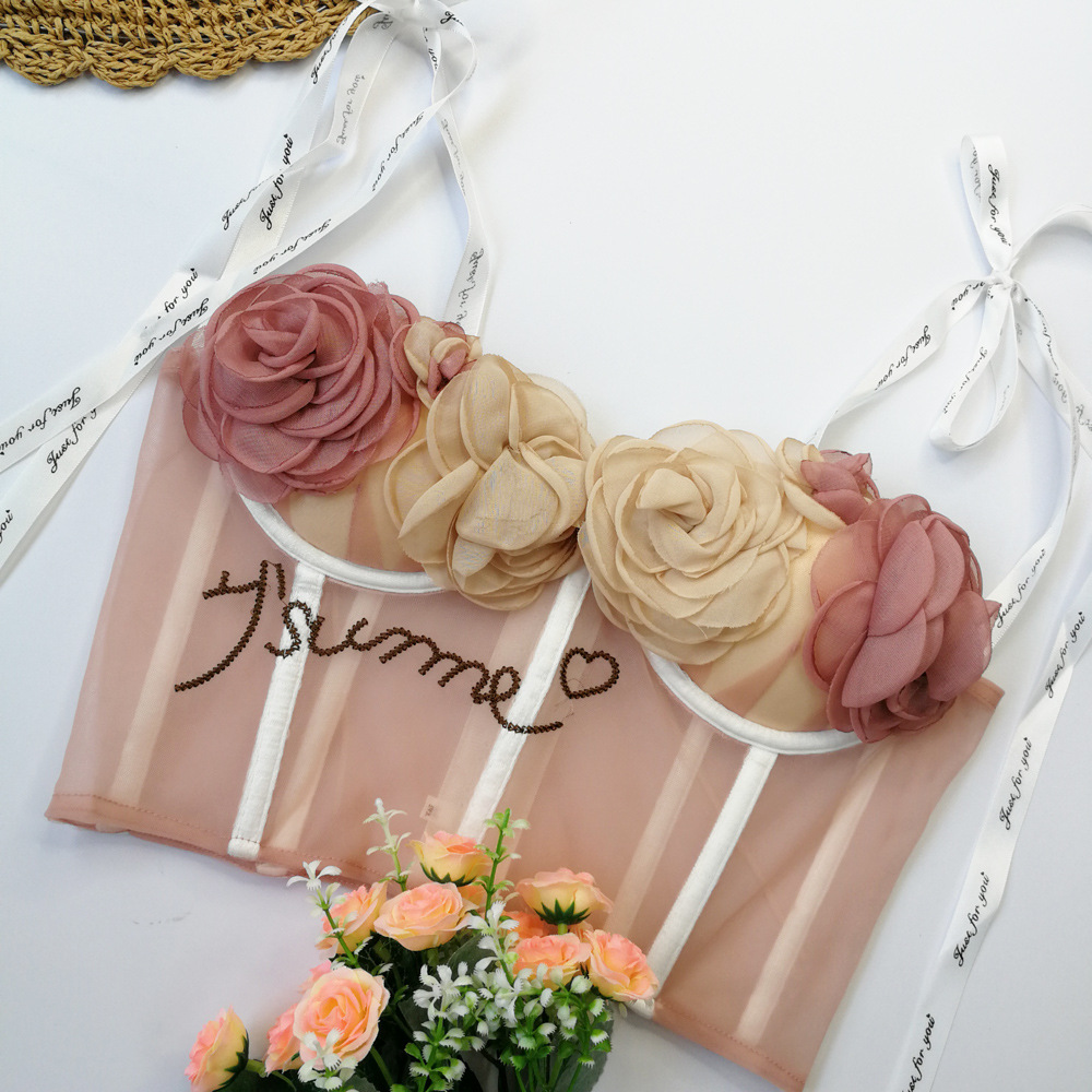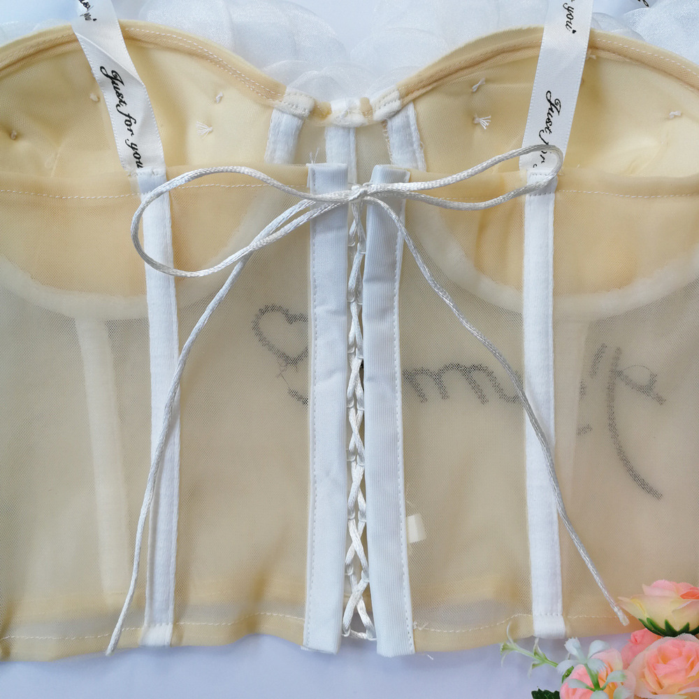 Lencería sexy con almohadilla en el pecho corto ver a través de la correa bellyband expuesto ombligo sexy Correa chica linda flor tubo superior