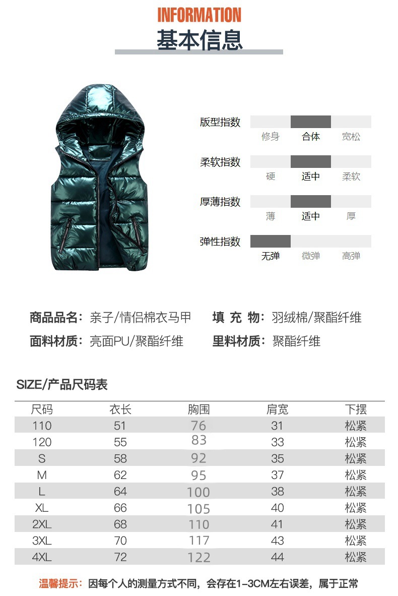 Chalecos de algodón para padres e hijos, nuevos hombres de invierno, chalecos de algodón brillantes desechables, chalecos de algodón, ropa de jardín, ropa de trabajo, chaquetas de algodón, marea