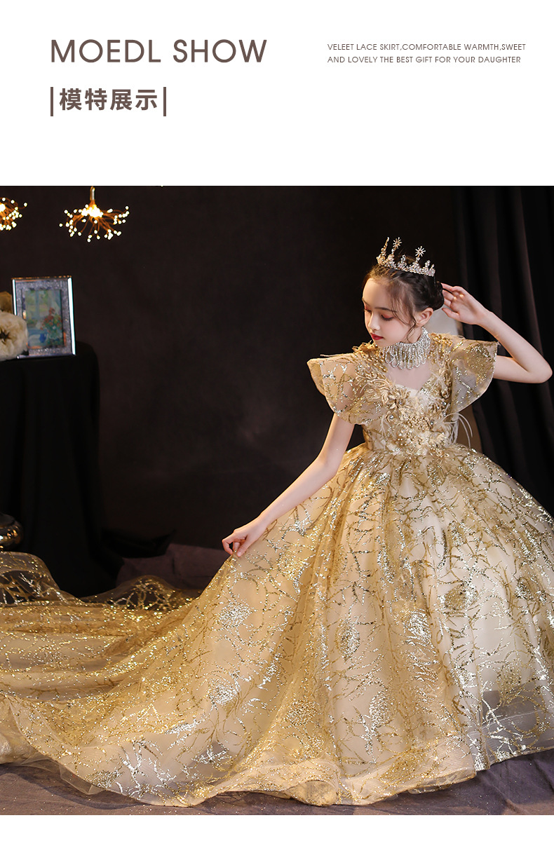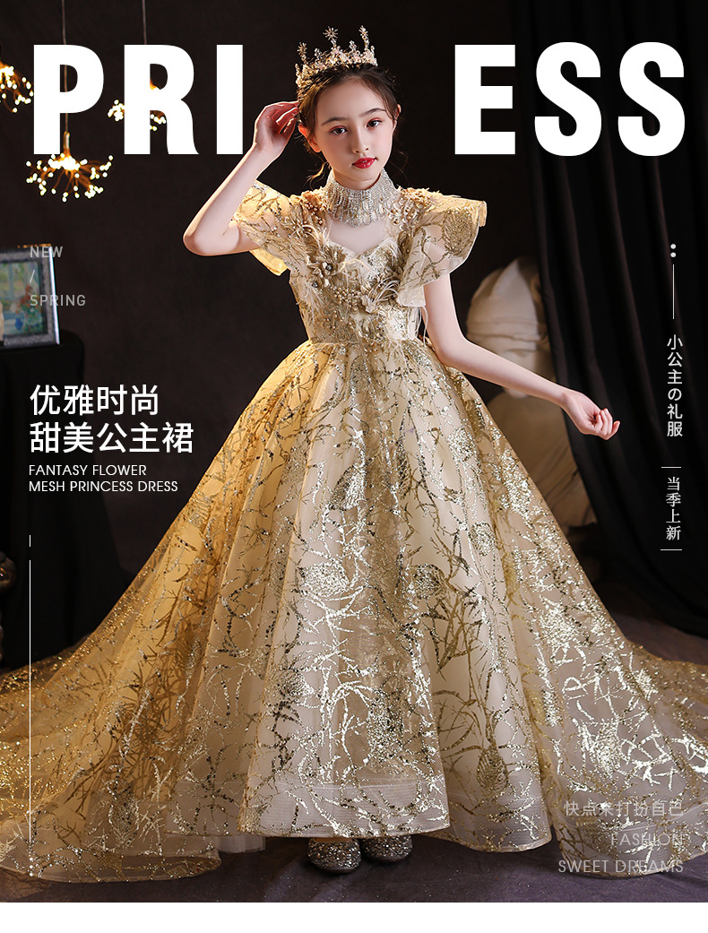 Vestido de arrastre para niños Súper Hada vestido de verano de un año de edad hilo esponjoso Vestido de princesa occidental pasarela T-etapa disfraz para niños