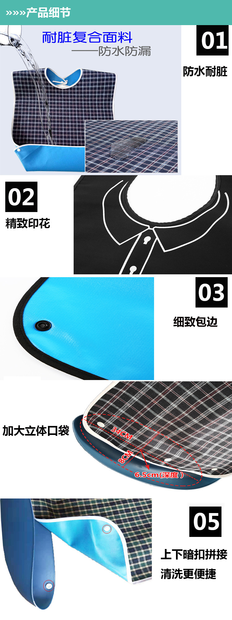 Venta al por mayor de algodón-como babero de comida para adultos de gran tamaño babero de comedor impermeable resistente a las manchas babero de doble cara para los ancianos