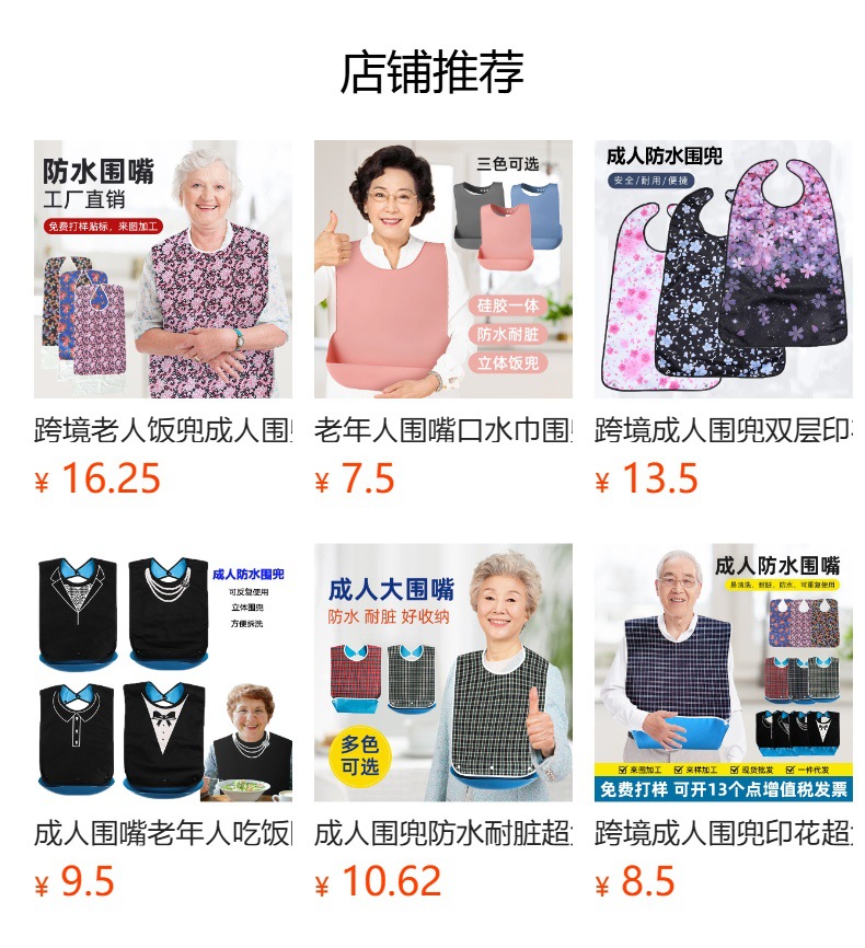 En stock al por mayor impermeable de gran tamaño adulto alimentos babero comedor ancianos babero saliva toalla al por mayor