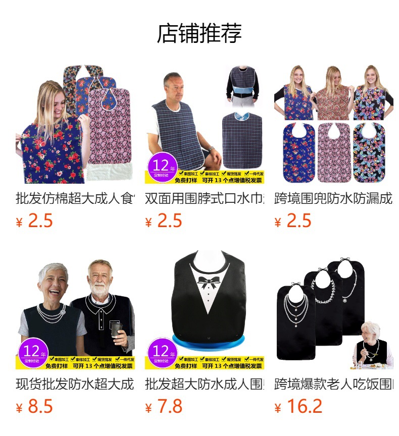 De gran tamaño babero de comida para adultos babero de comedor de algodón artificial babero de los ancianos babero de doble cara