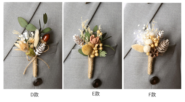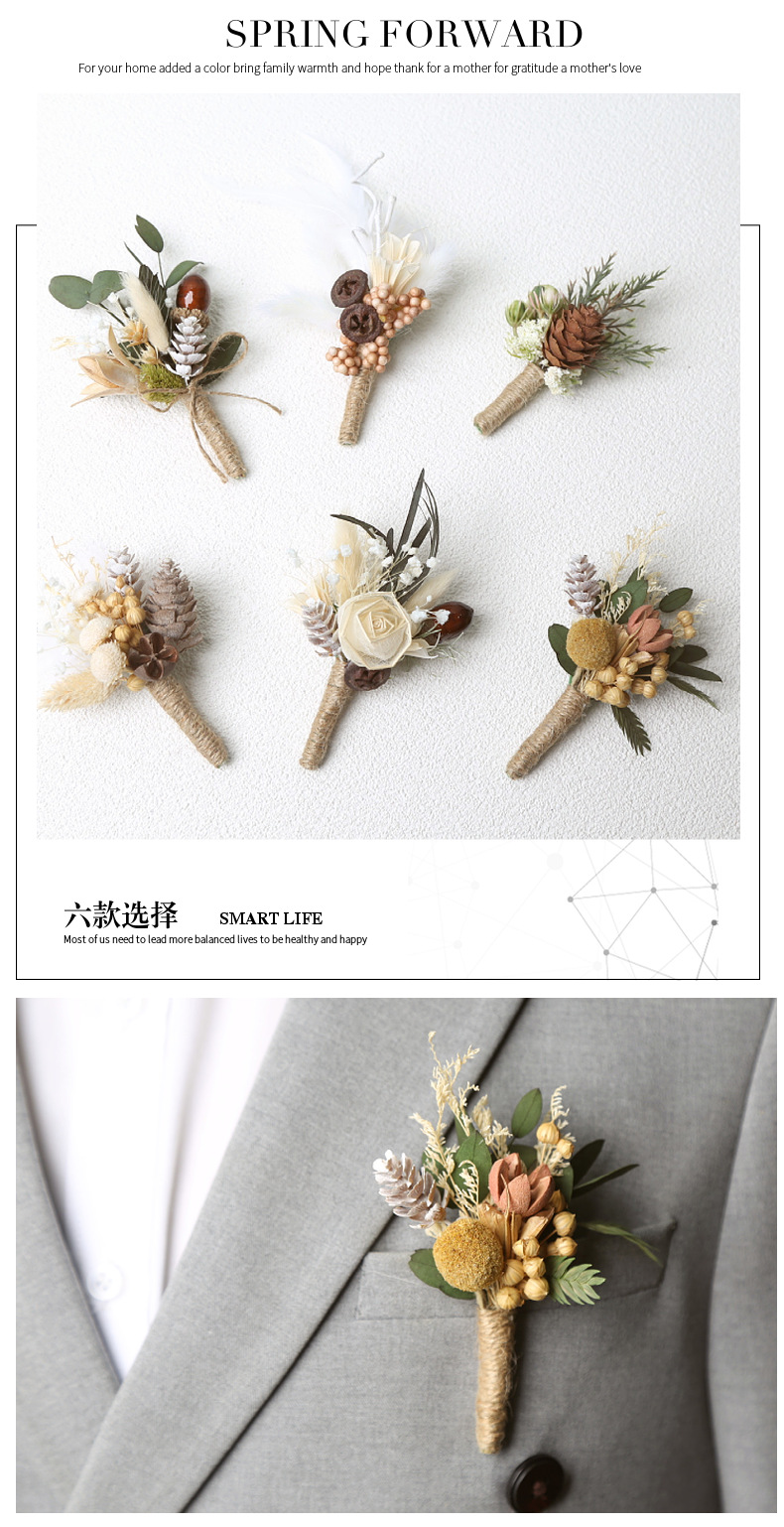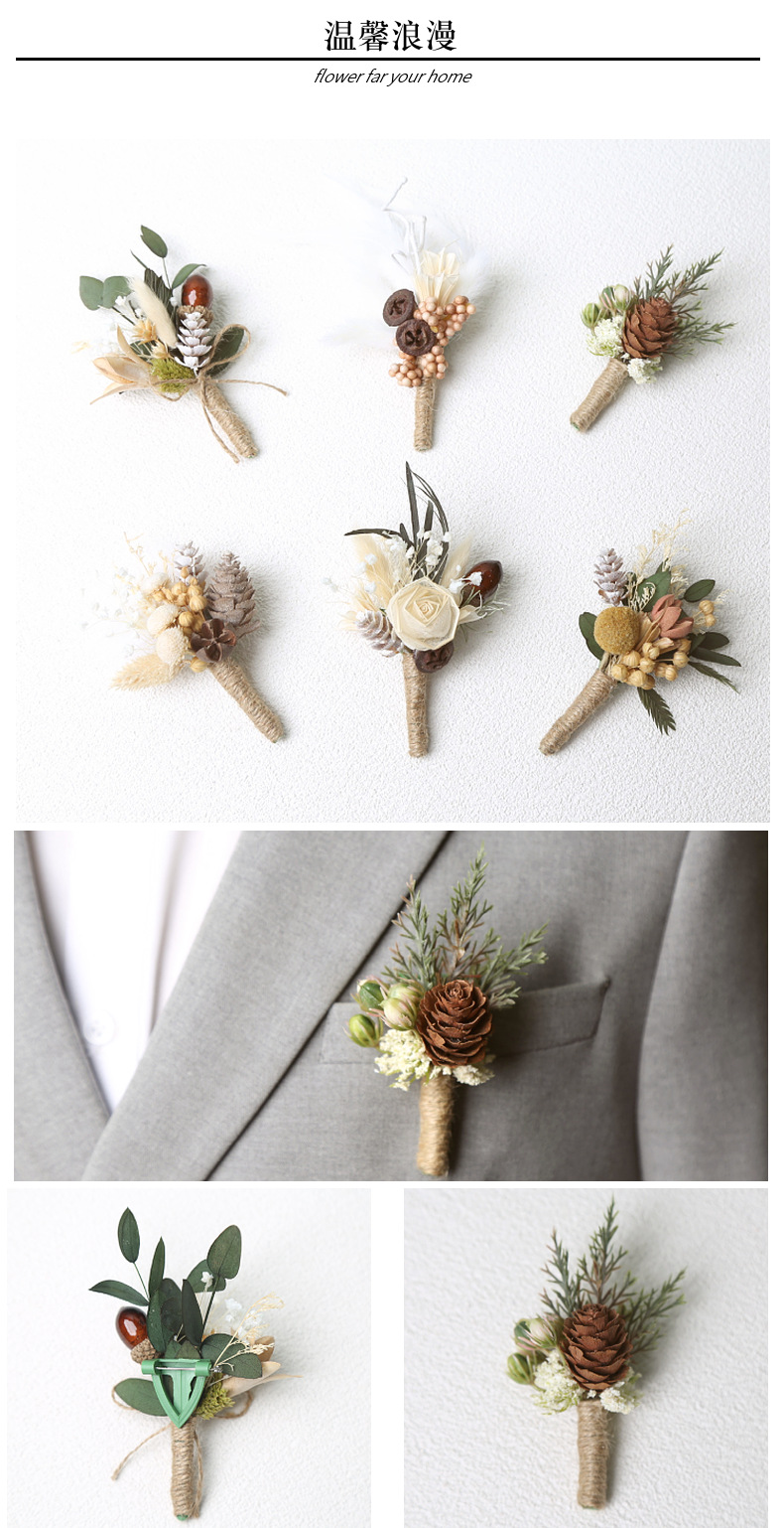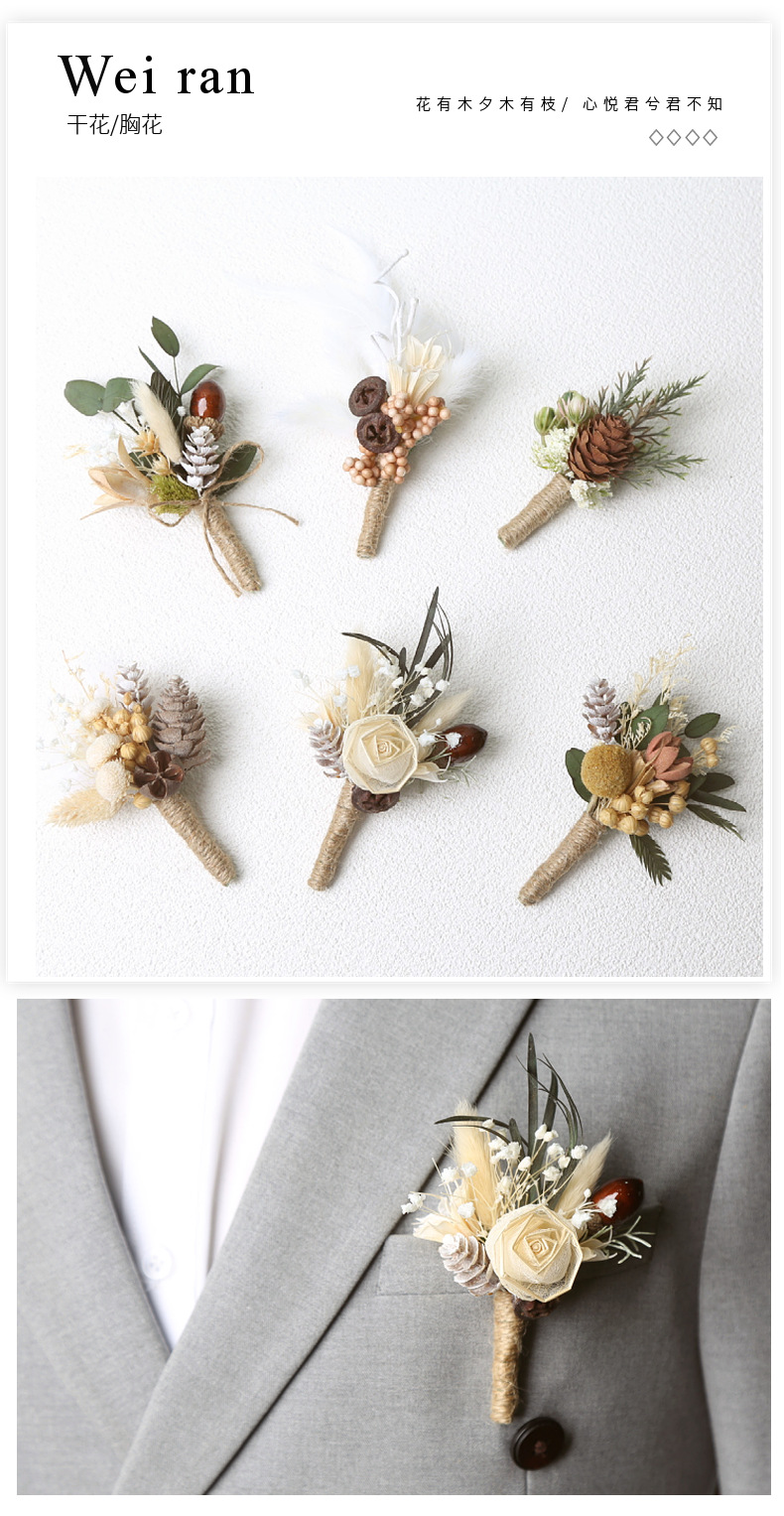 Flor fresca al por mayor flor seca ramillete novia y novio boda vestido de fiesta graduación ramillete accesorios fábrica