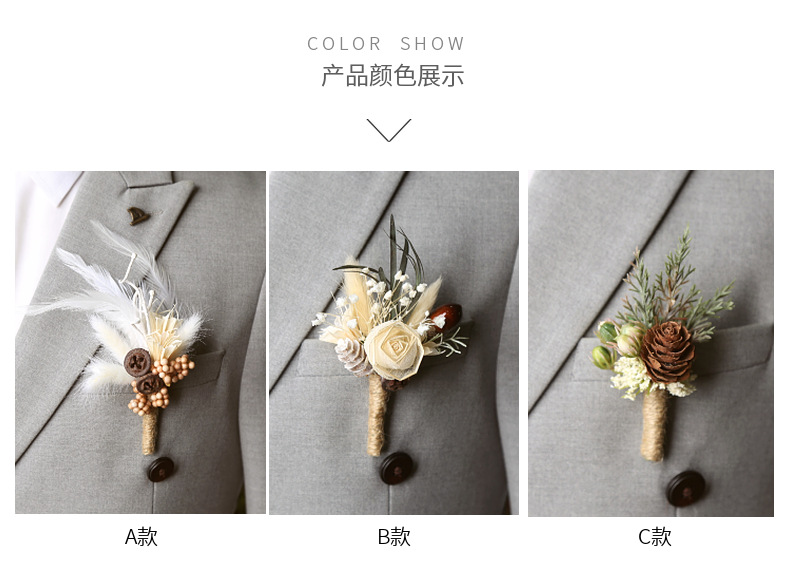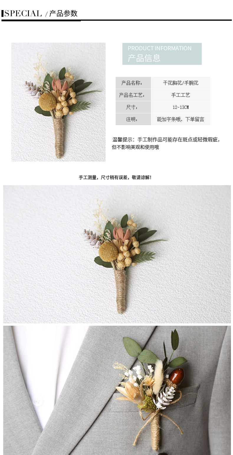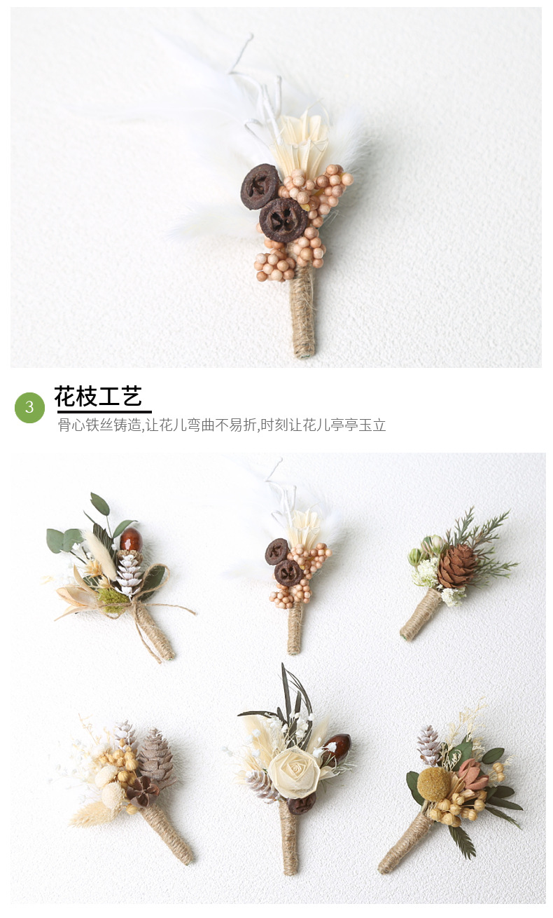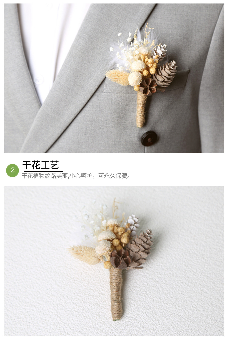 Flor fresca al por mayor flor seca ramillete novia y novio boda vestido de fiesta graduación ramillete accesorios fábrica