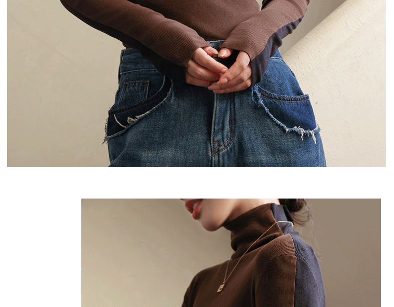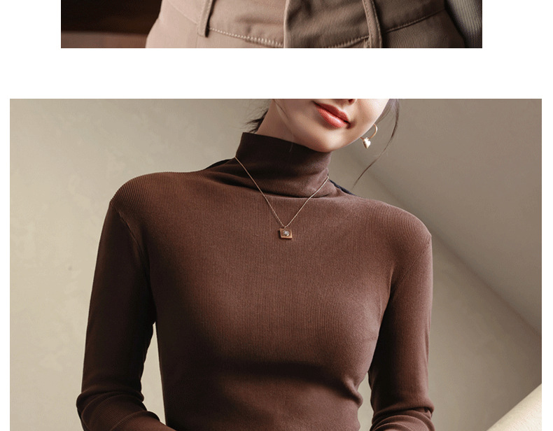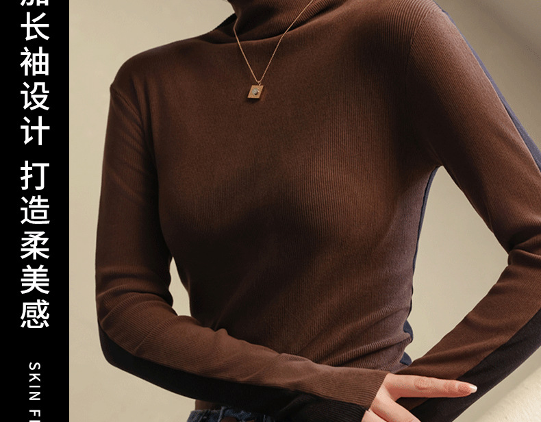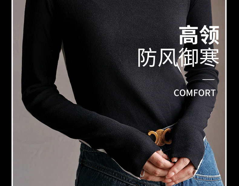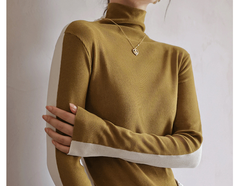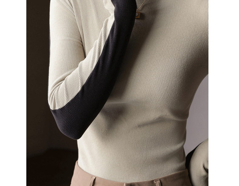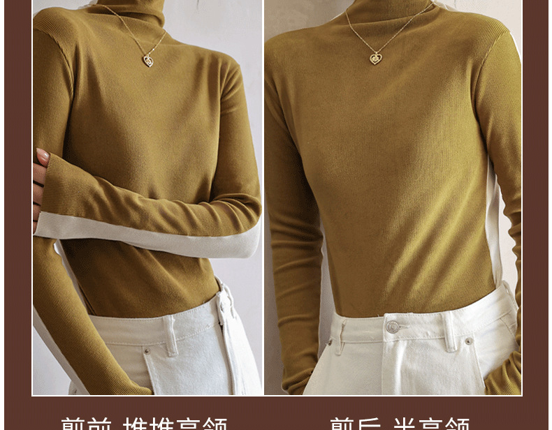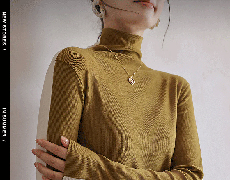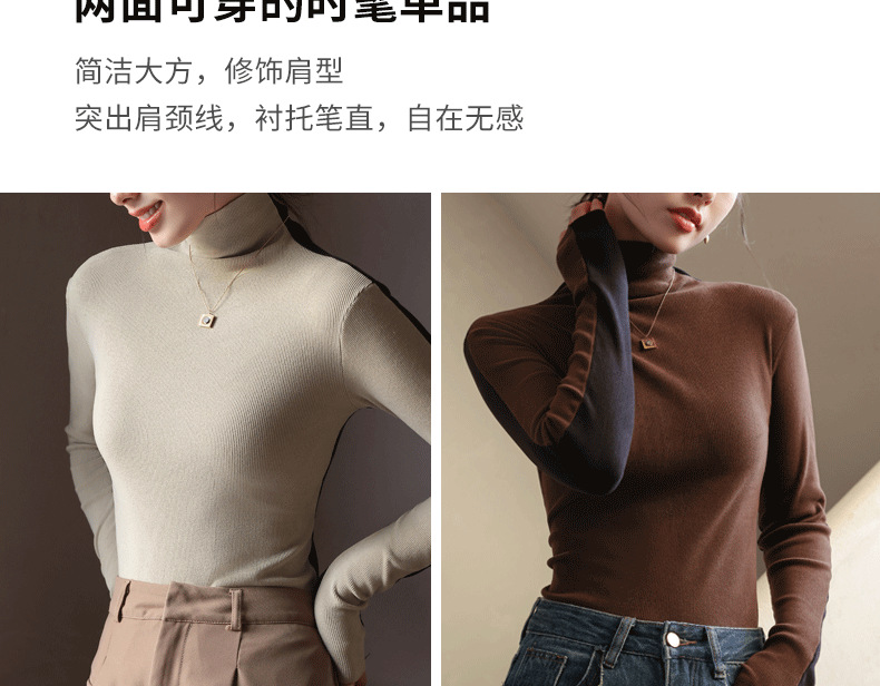Camisa de fondo de cuello alto con cuello alto de hilo de otoño e invierno Camisa de fondo de dos vías de manga larga de ajuste delgado de color interior para mujer