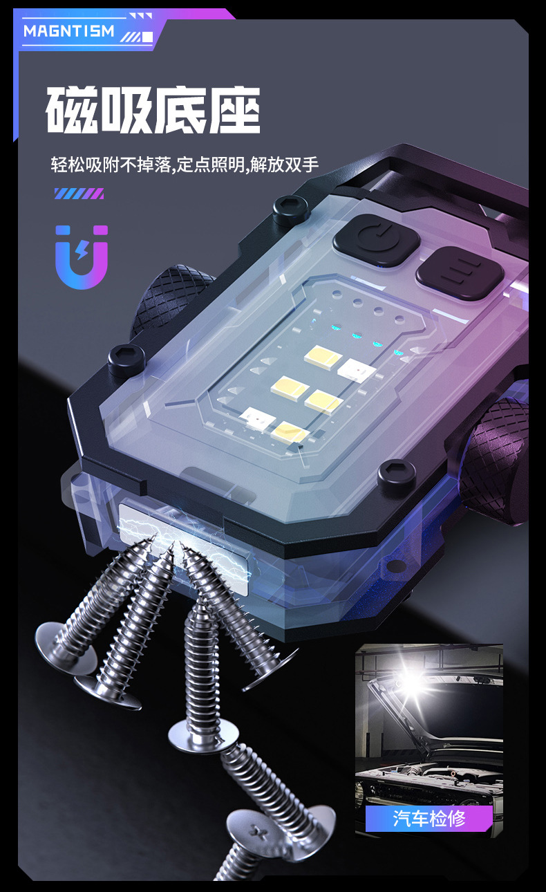 Al Aire Libre portátil al aire libre luz mini llavero de luz de succión magnética Tipo-C de carga rápida herramienta de visualización de energía multifuncional Luz