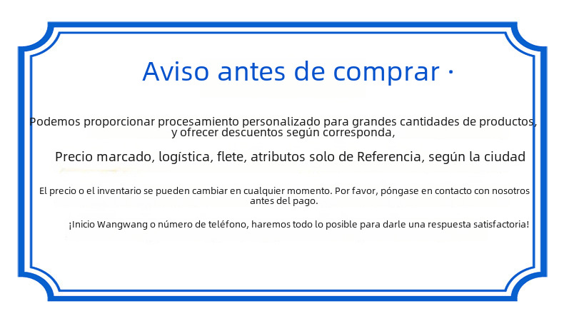 La cantidad indicada corresponde al pedido mínimo requerido por la fábrica; si necesitas ajustar la cantidad del producto, después de enviar el presupuesto, un gerente de compras hispanohablante se pondrá en contacto contigo para discutir los detalles del producto.