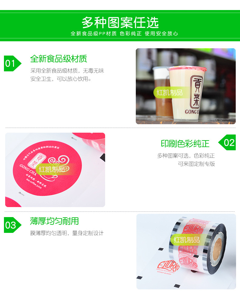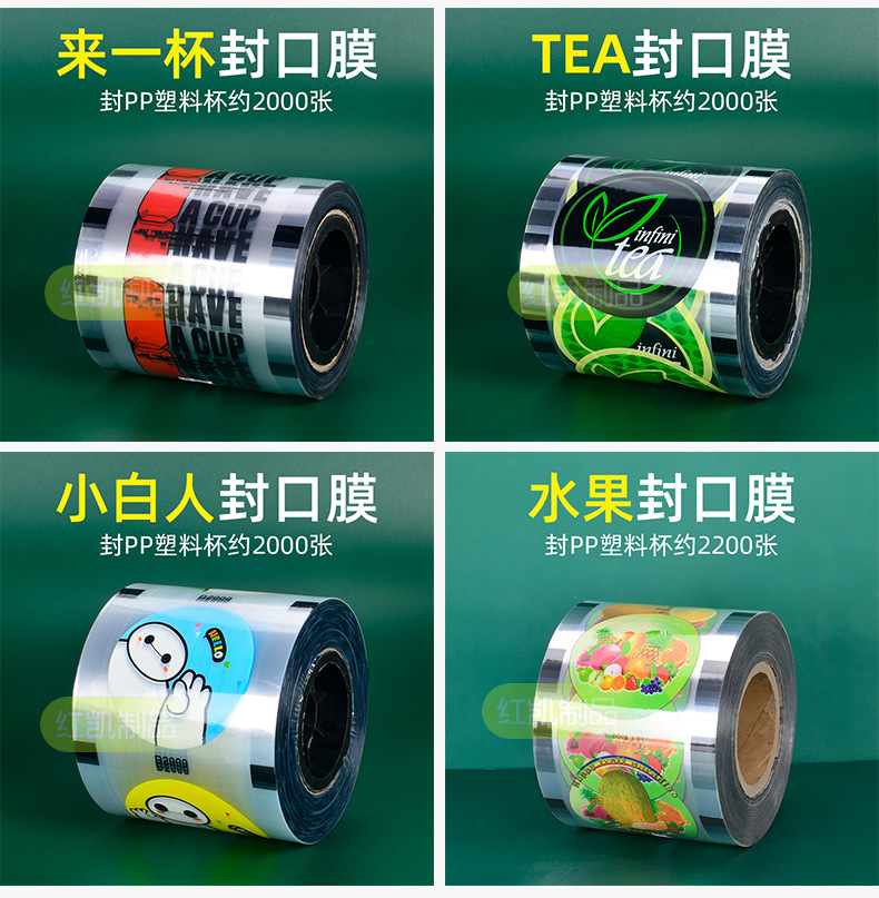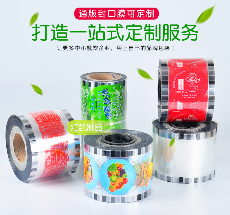 Leche té taza de plástico película de sellado desechable 90/95 calibre leche de soja embalaje Copa película de sellado de impresión logo