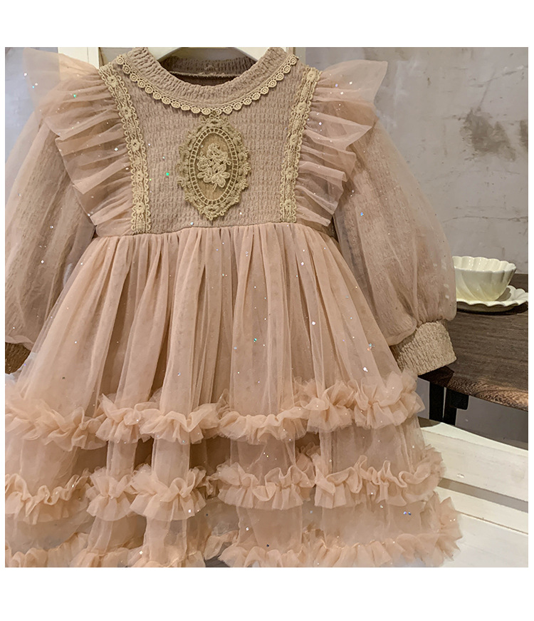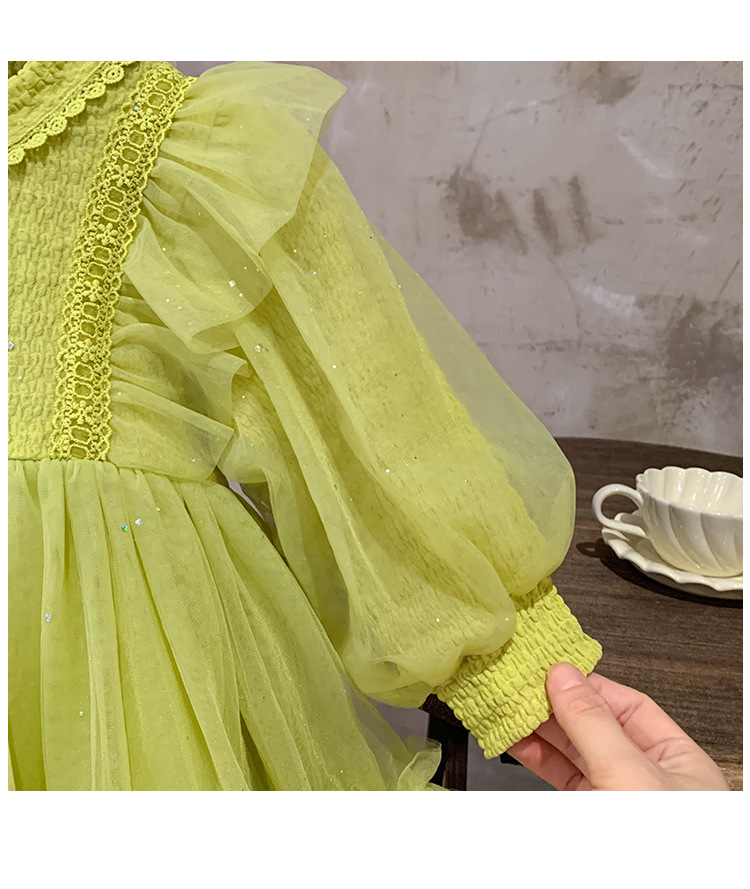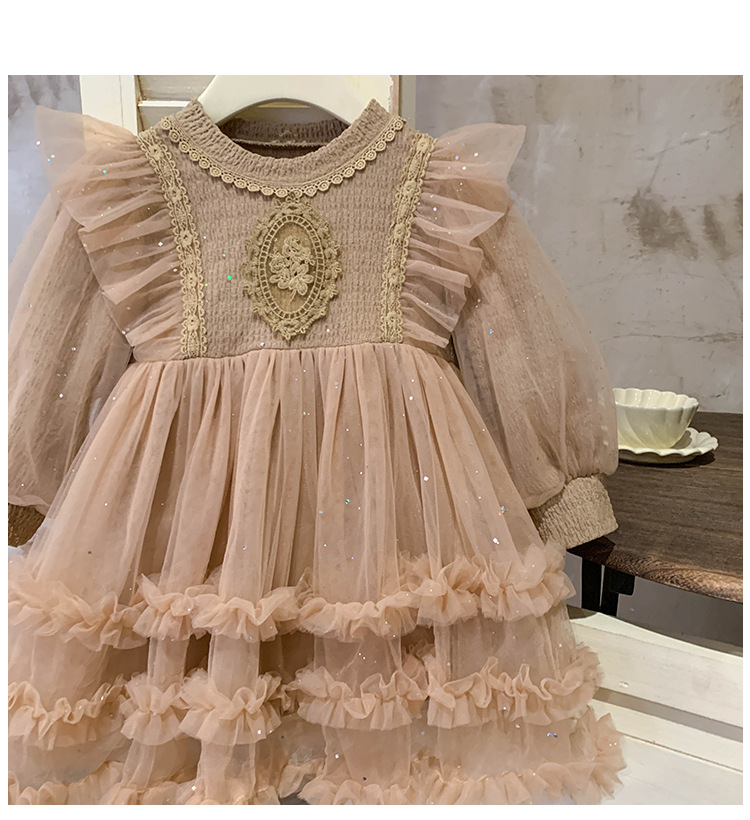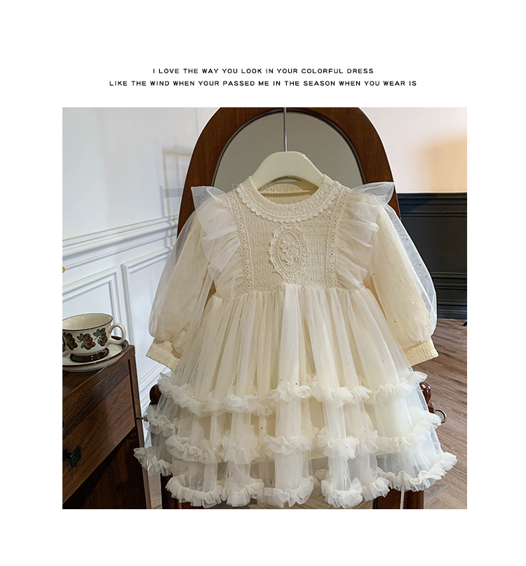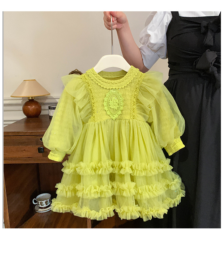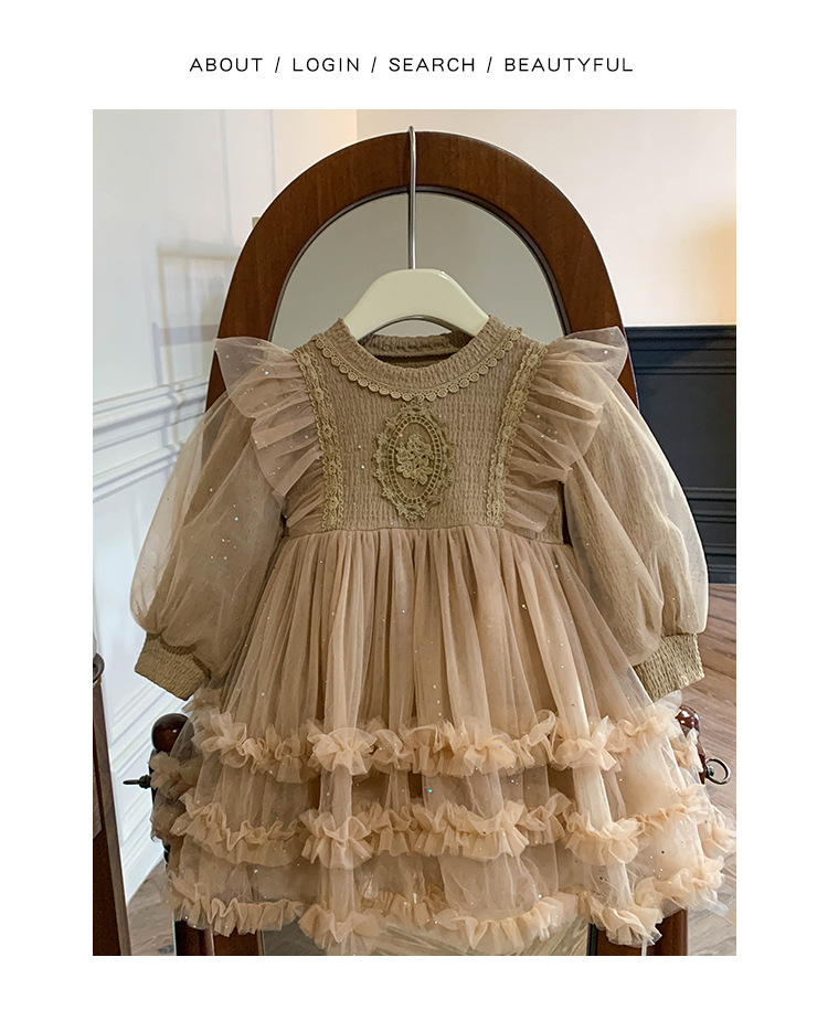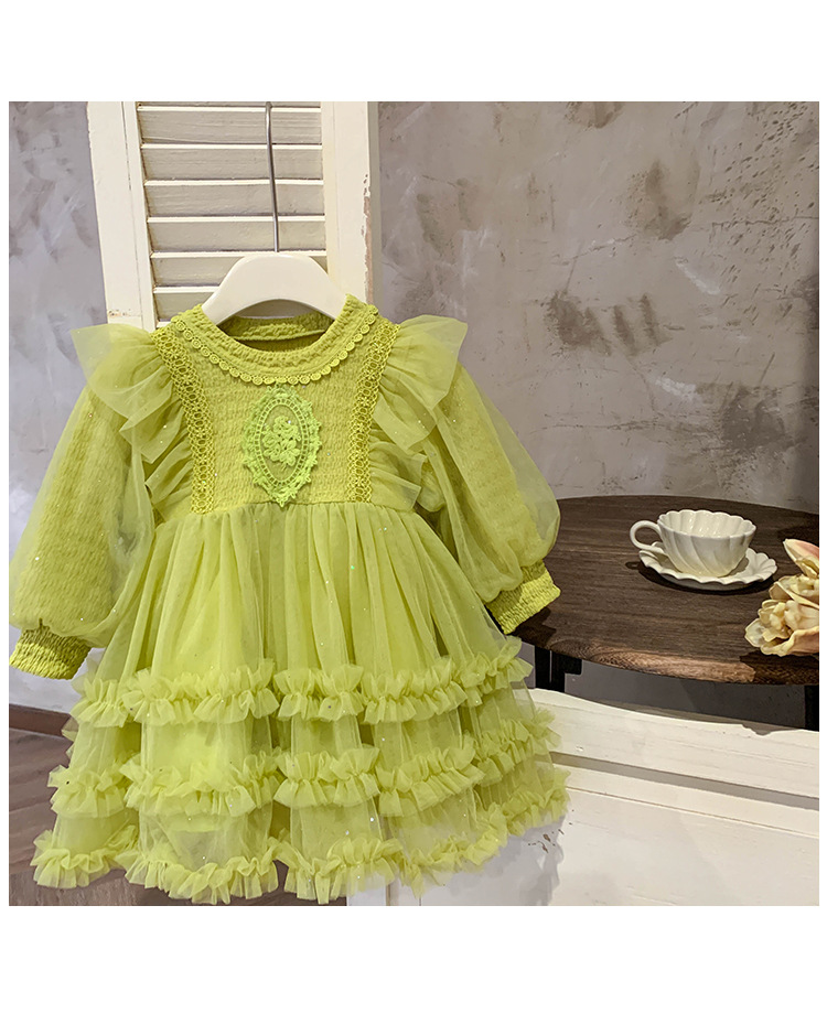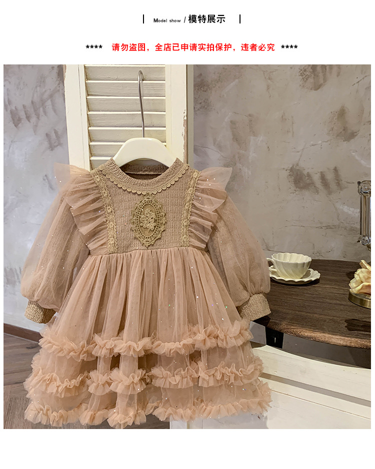Vestido de malla para niñas, nuevo estilo coreano de otoño 2025, vestido moderno para niñas, bebés y niños pequeños, ropa de otoño