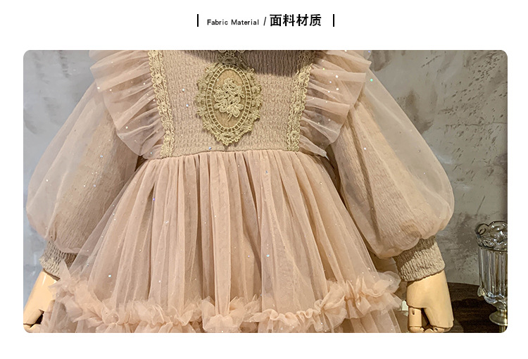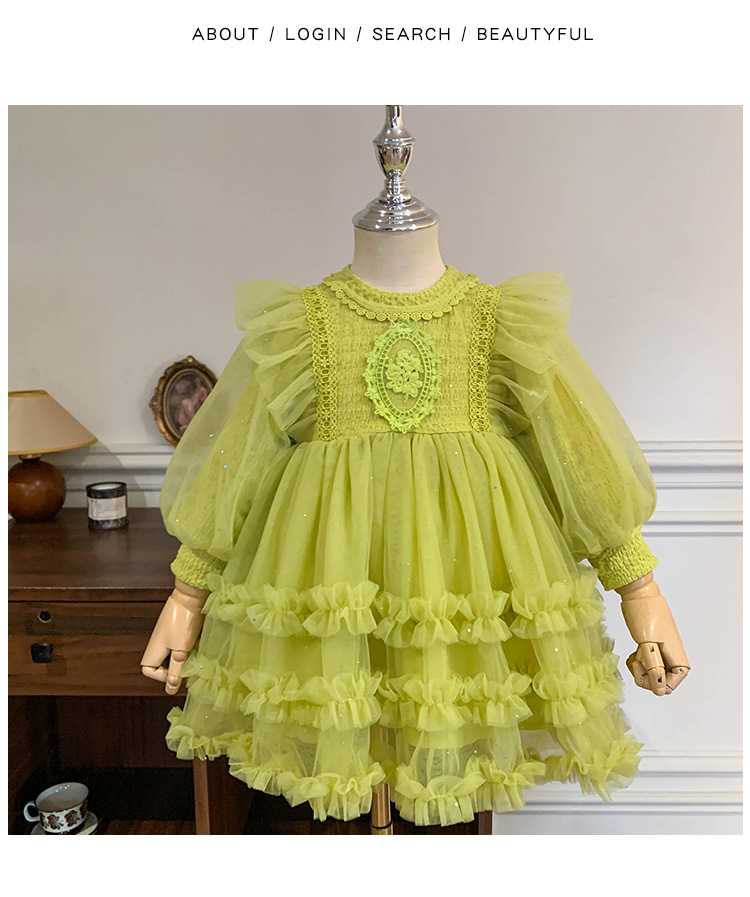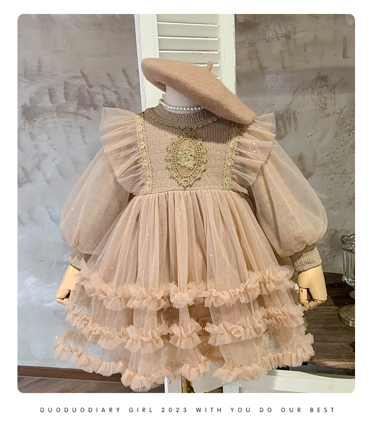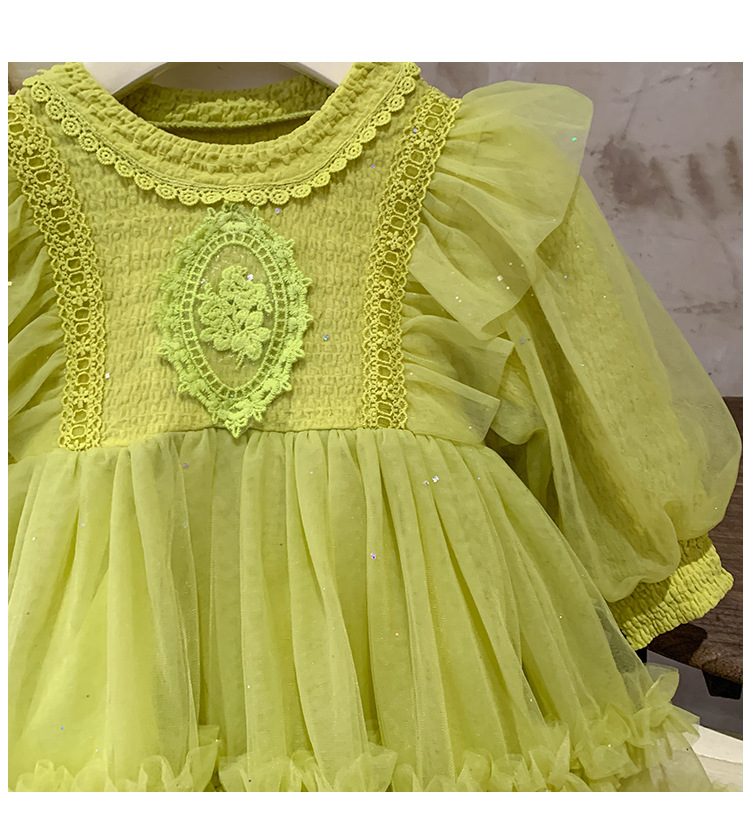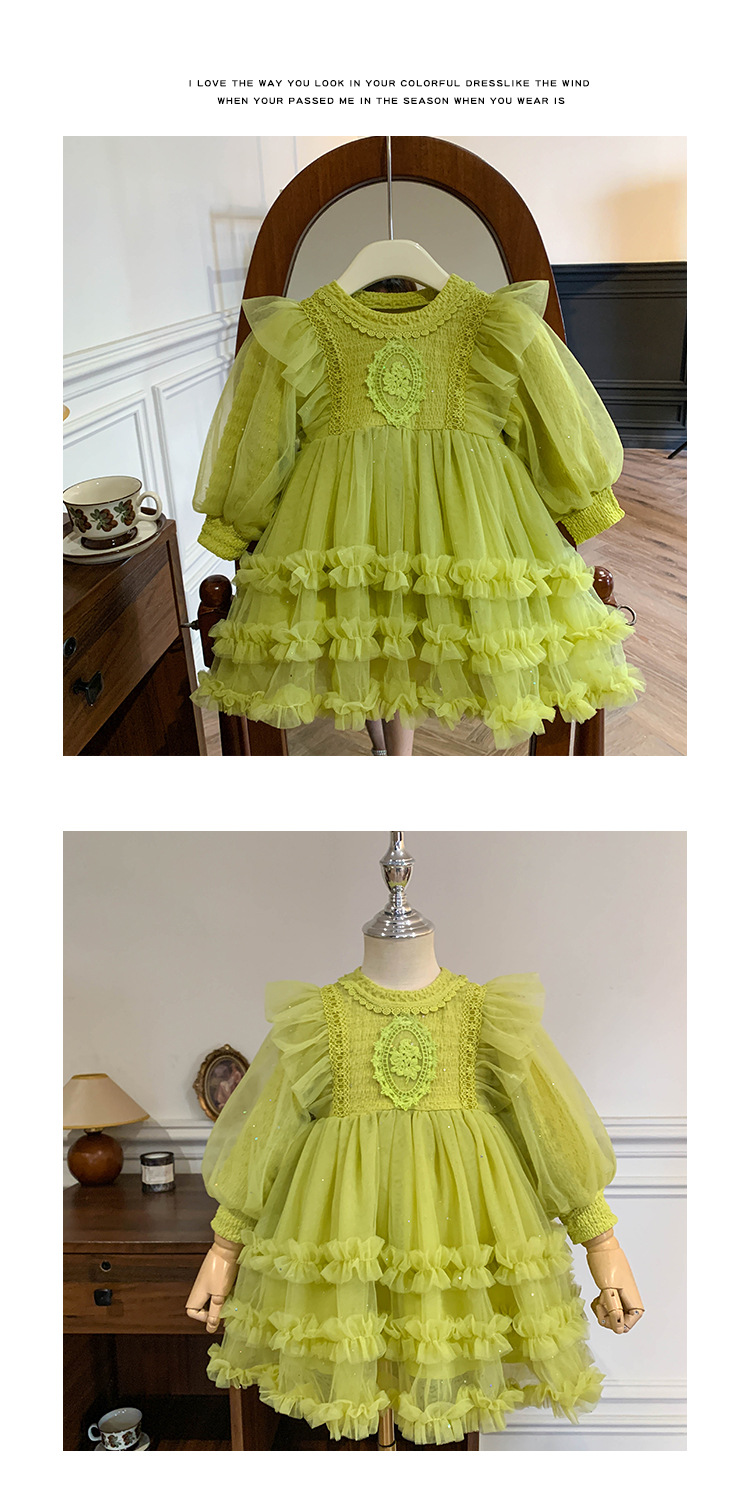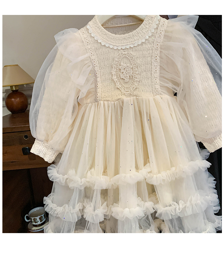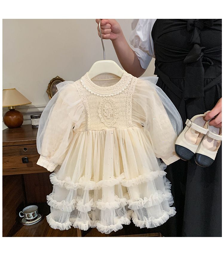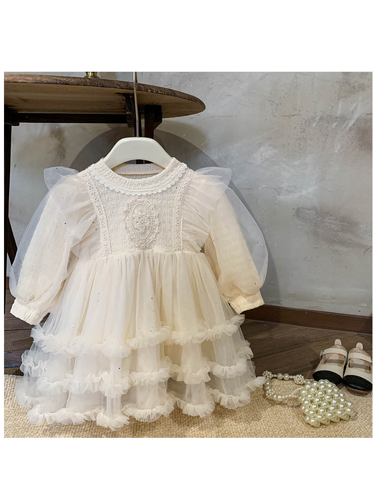 Vestido de malla para niñas, nuevo estilo coreano de otoño 2025, vestido moderno para niñas, bebés y niños pequeños, ropa de otoño