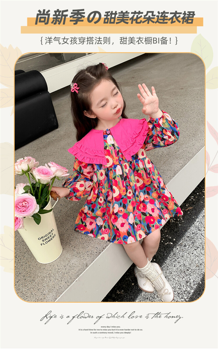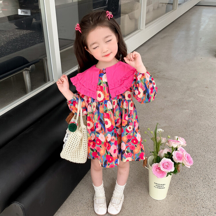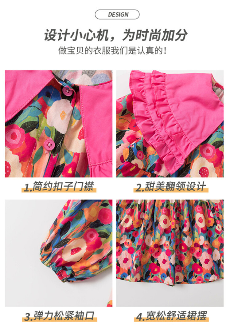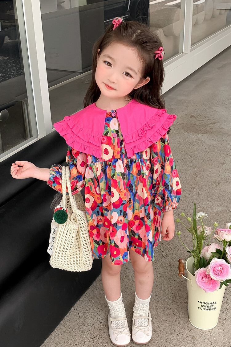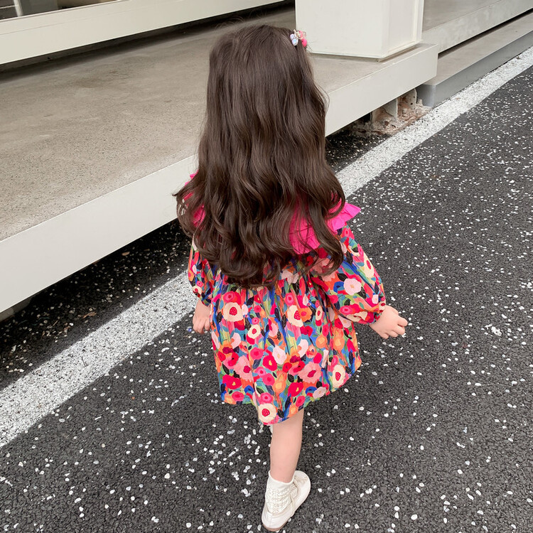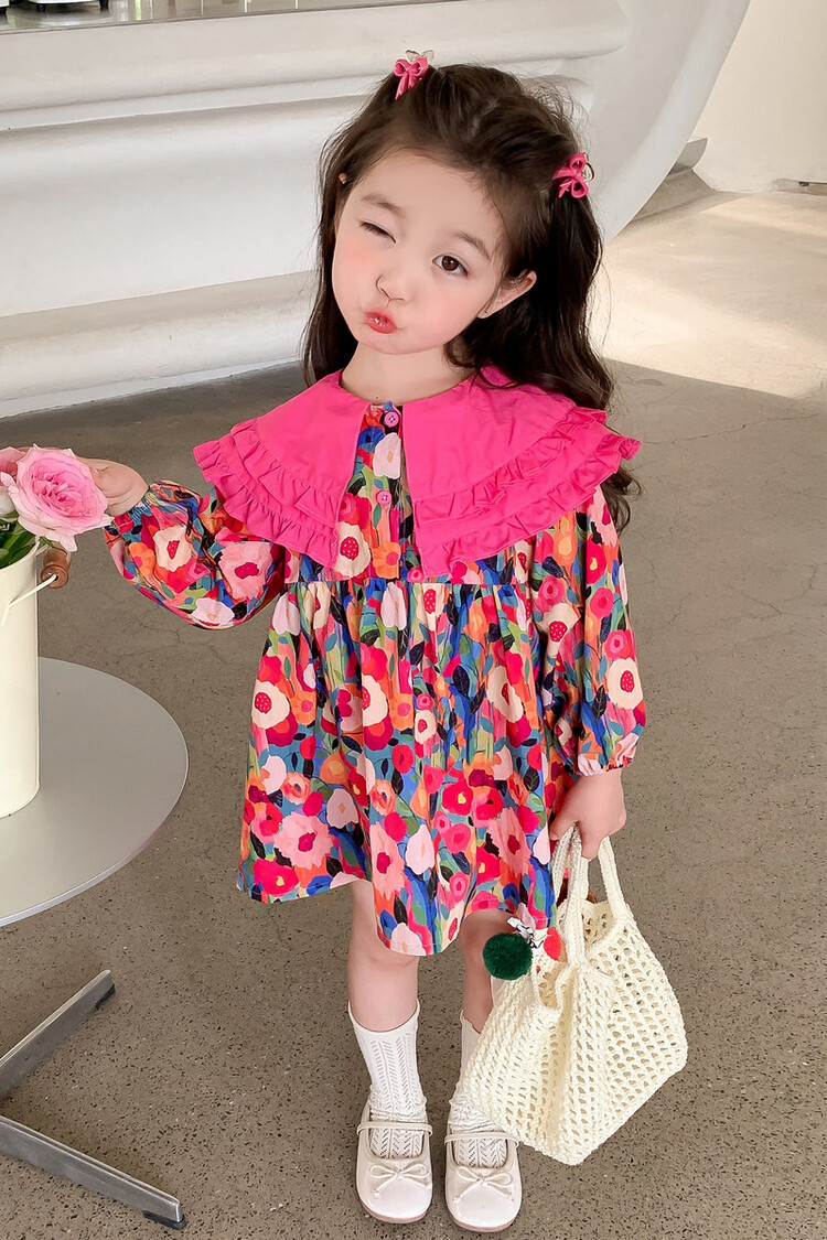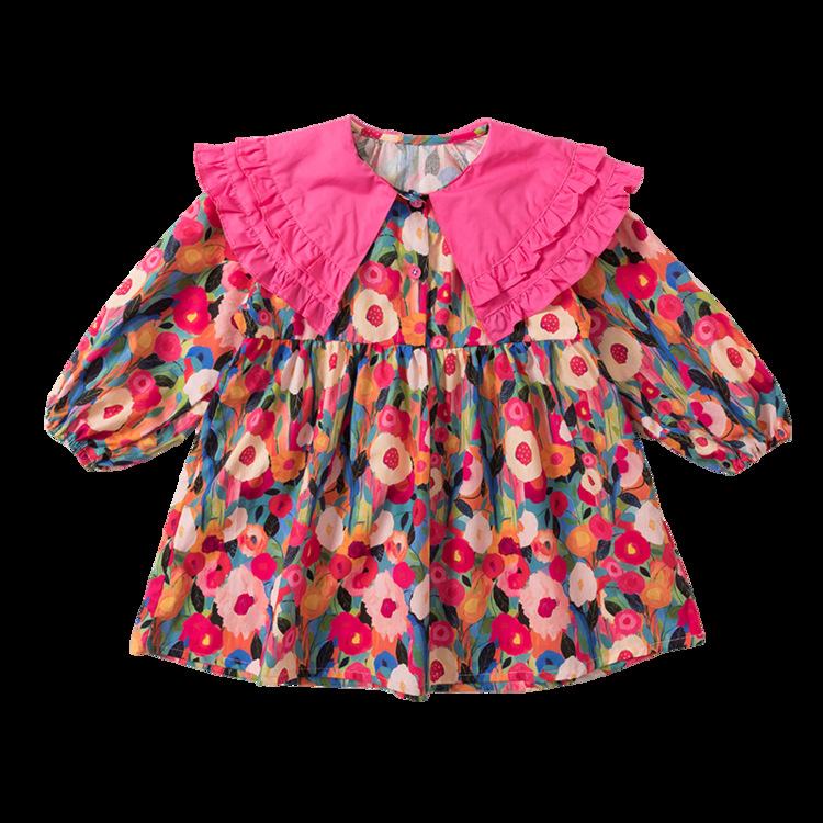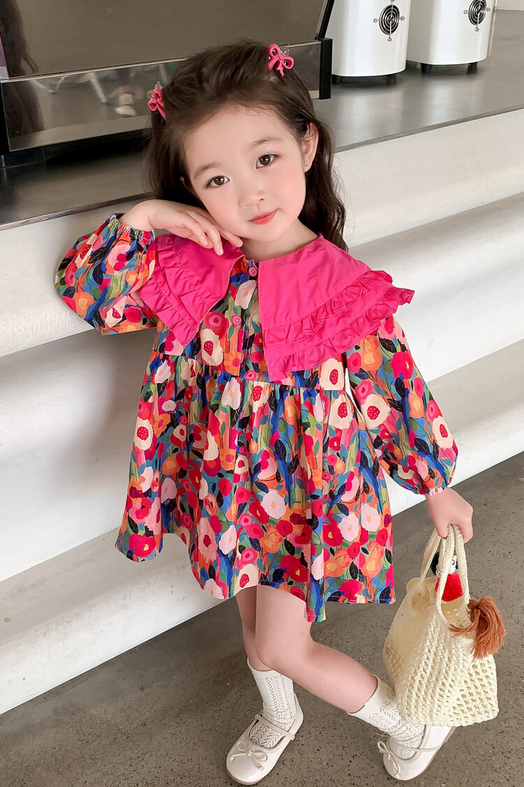 Las niñas de dopamina primavera y otoño vestido floral pitaya falda floral de solapa grande falda floral de estilo occidental de moda