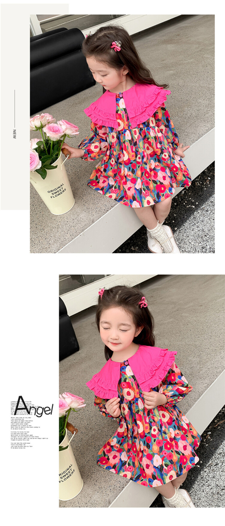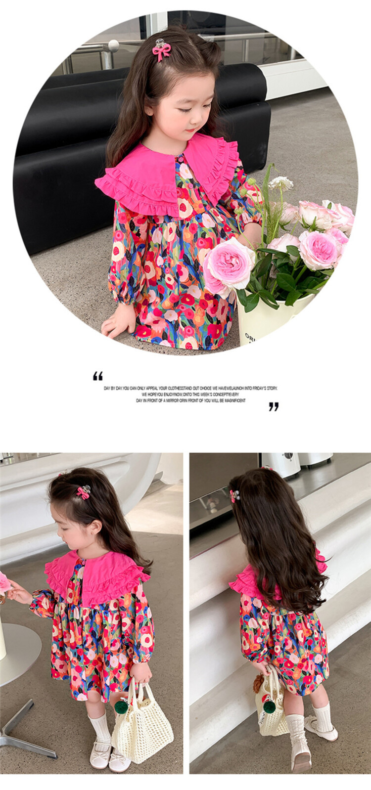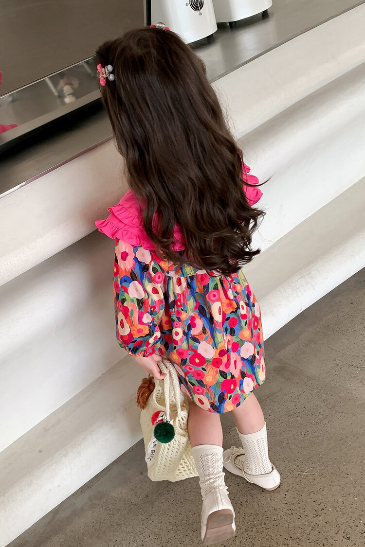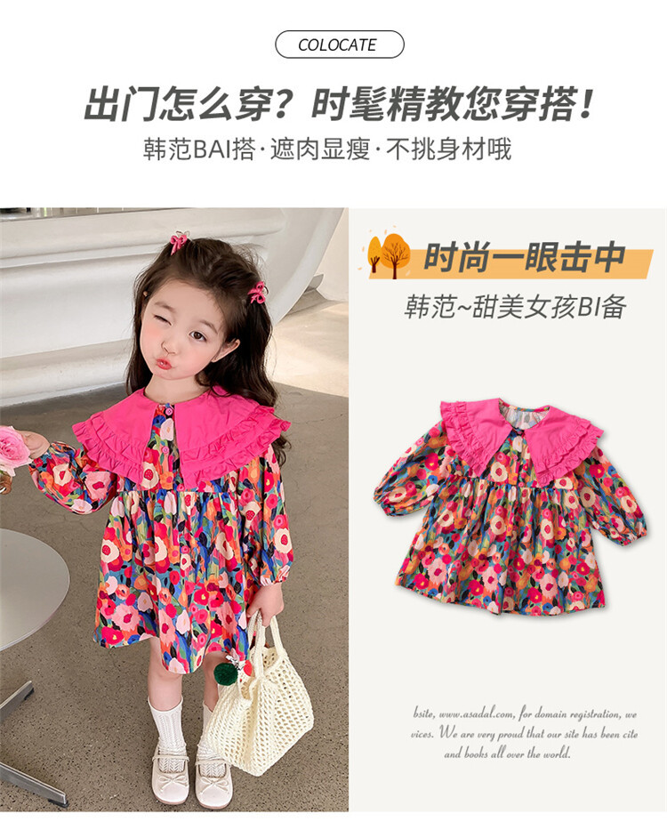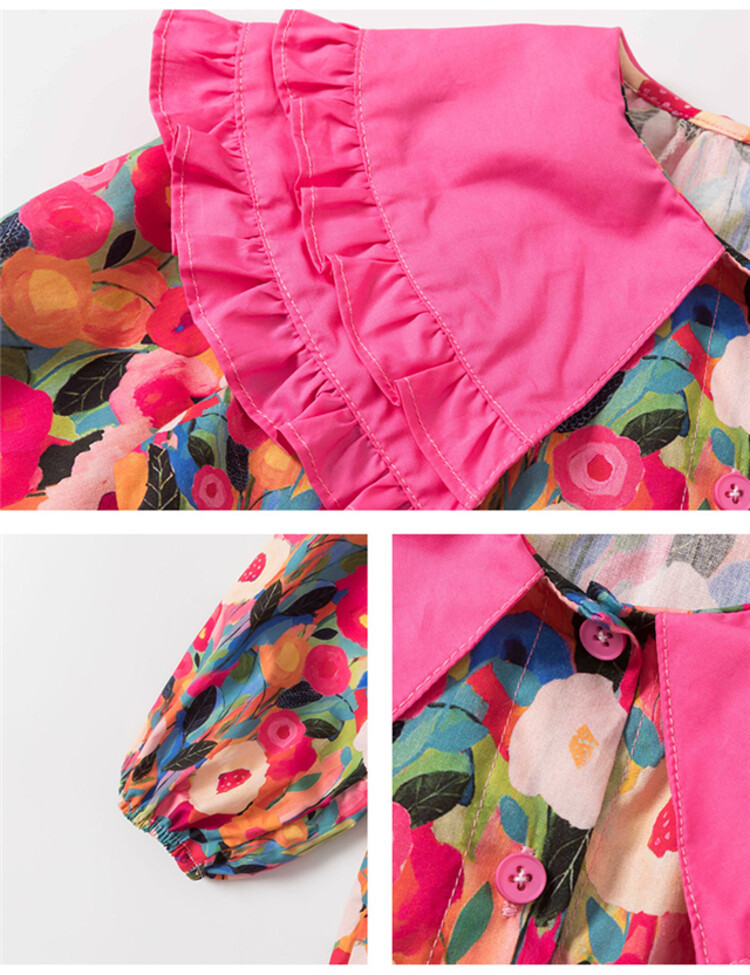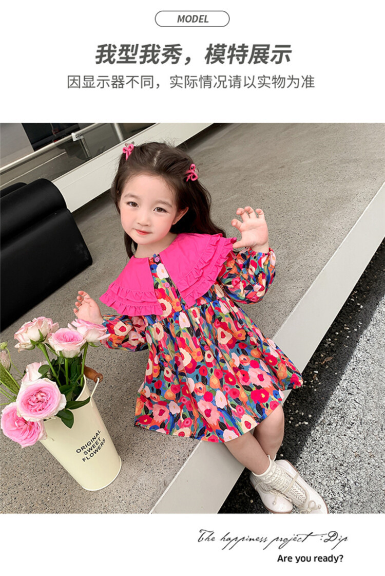 Las niñas de dopamina primavera y otoño vestido floral pitaya falda floral de solapa grande falda floral de estilo occidental de moda