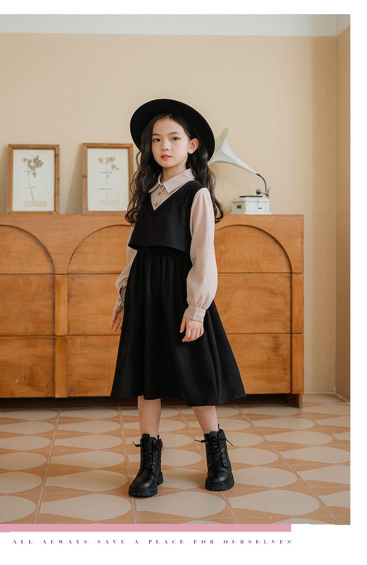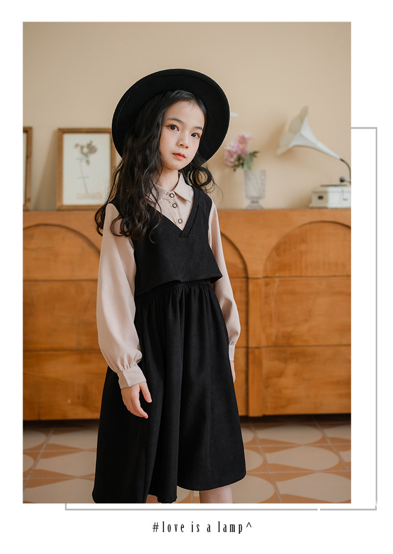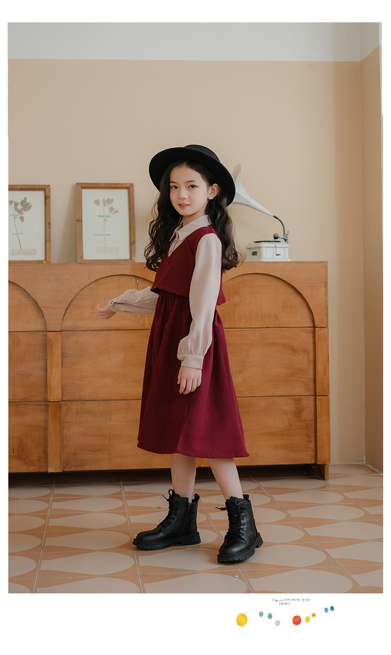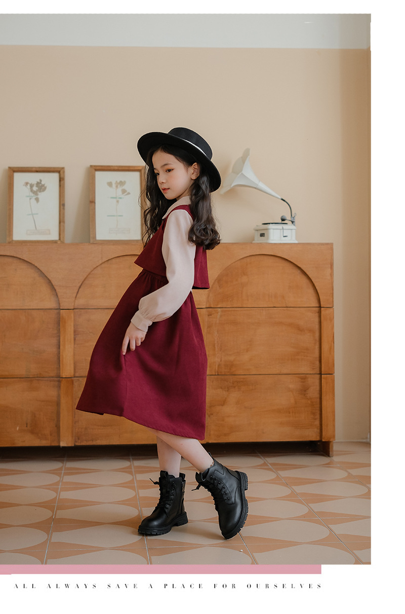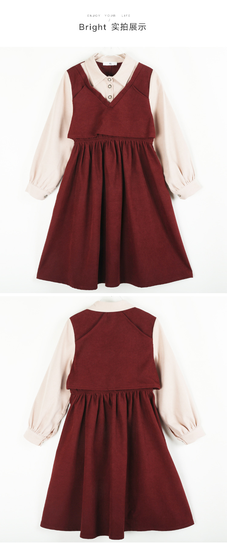 2024 niñas solapa moda falso vestido de dos piezas niños medianos y grandes rojo Otoño e Invierno vestido de princesa de pana vestido de padre e hijo