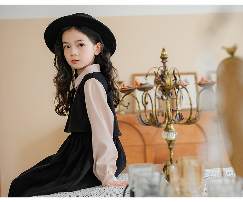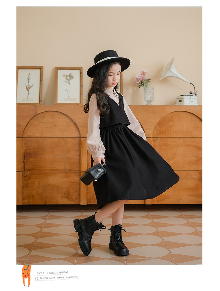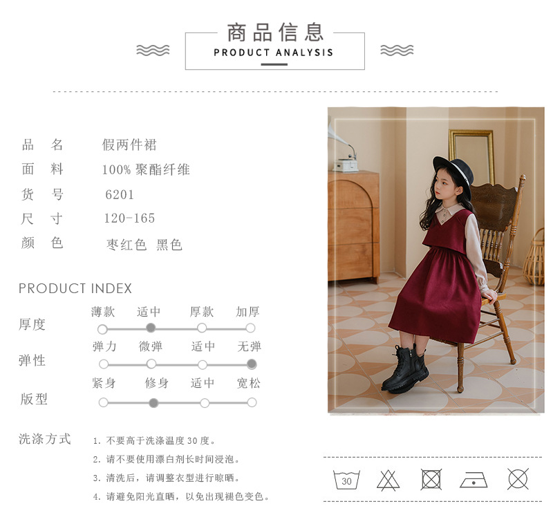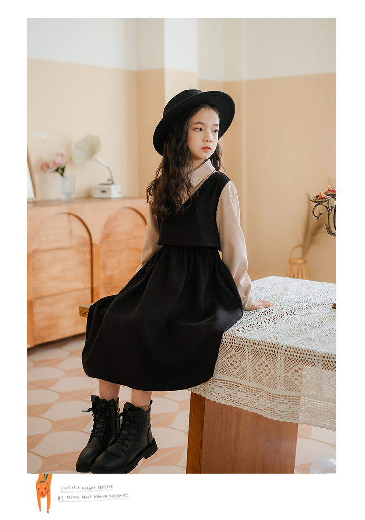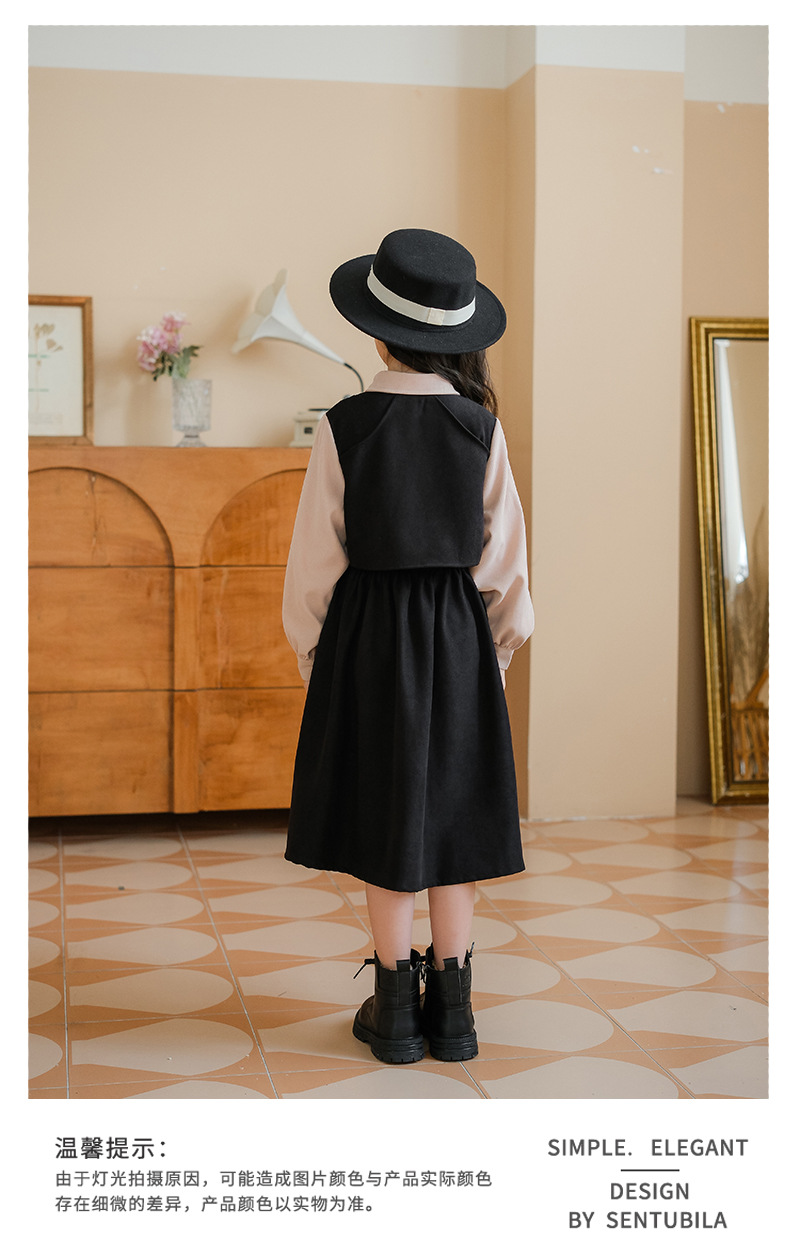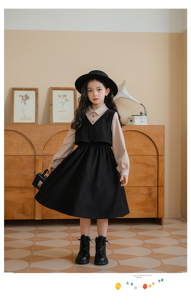 2024 niñas solapa moda falso vestido de dos piezas niños medianos y grandes rojo Otoño e Invierno vestido de princesa de pana vestido de padre e hijo