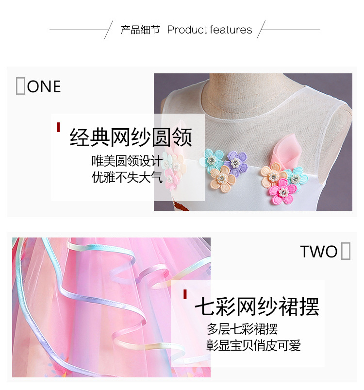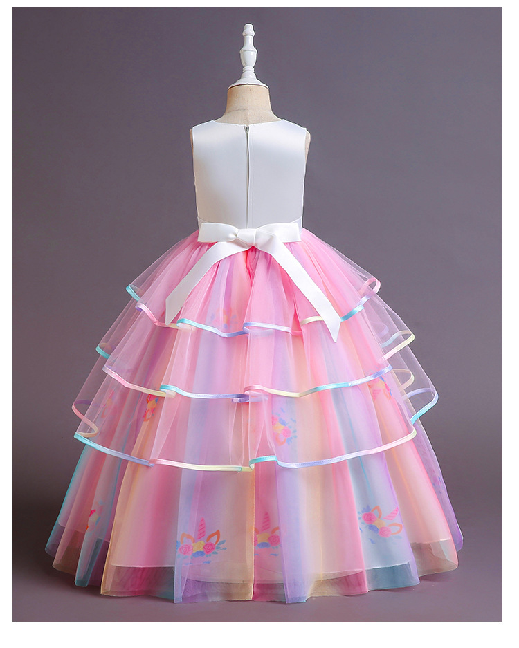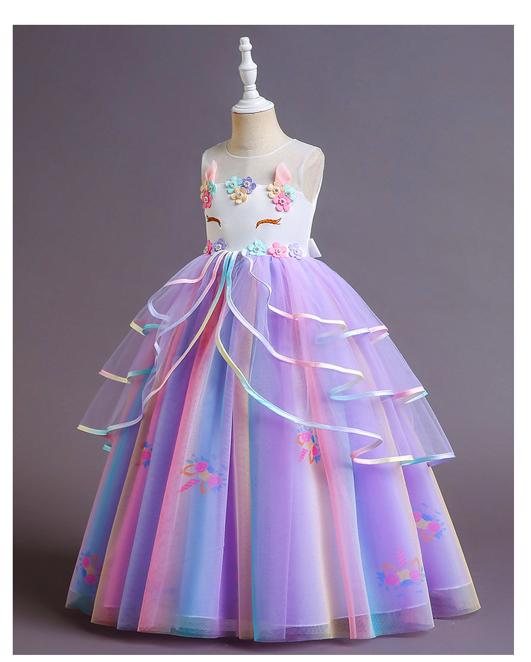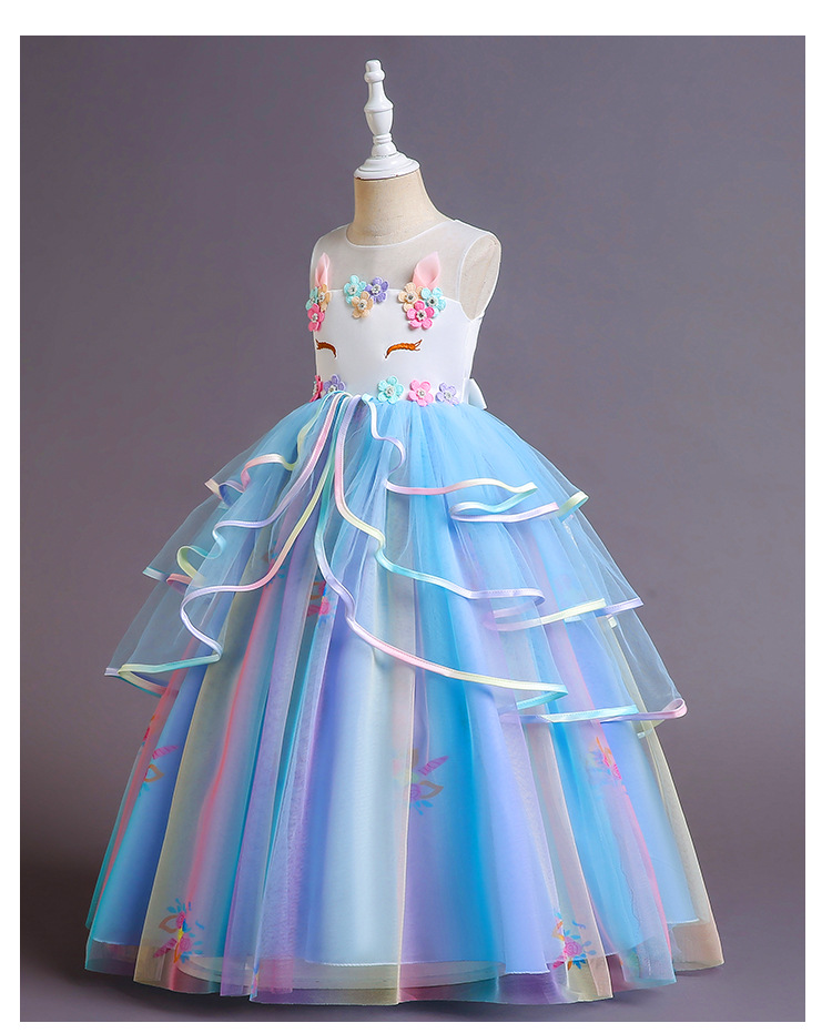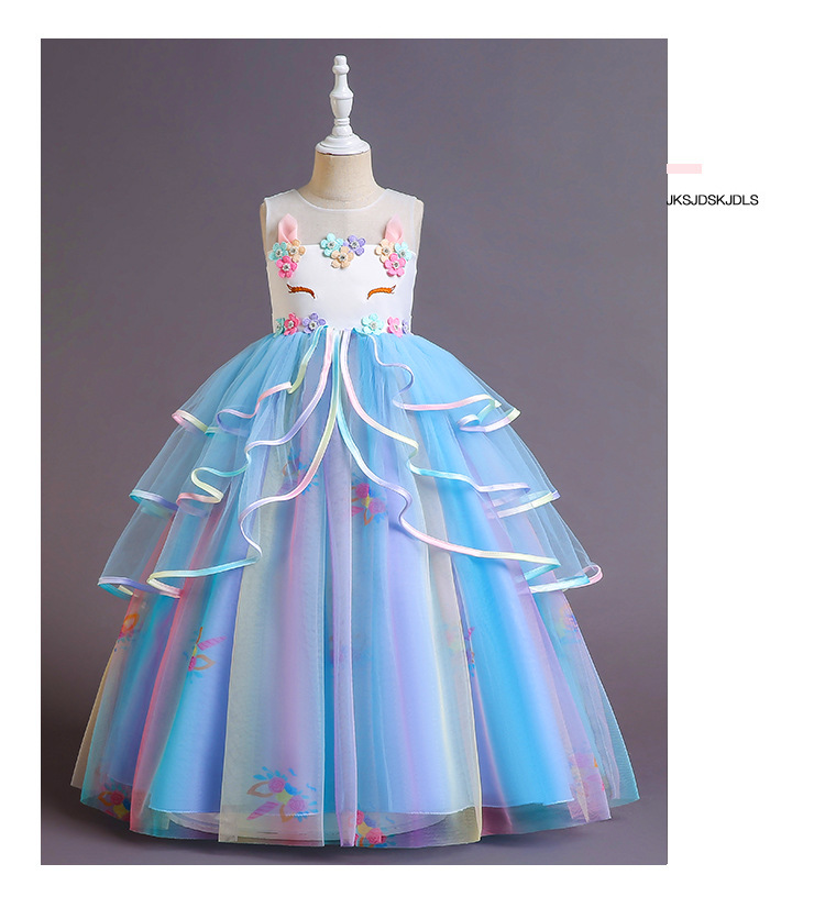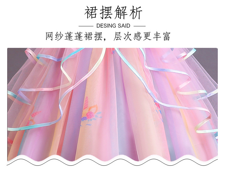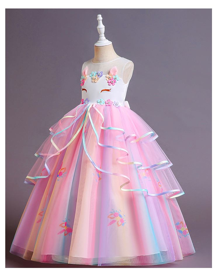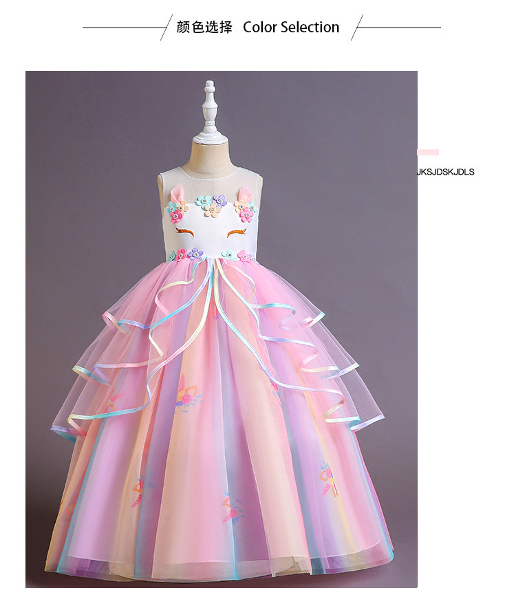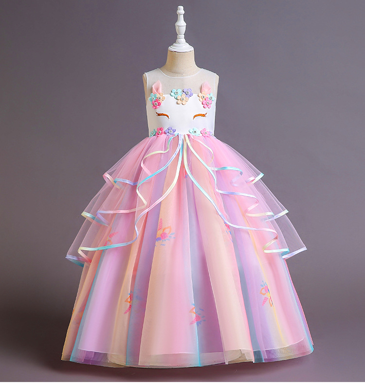 Vestidos para niñas europeas y americanas, vestidos de princesa para niñas, vestidos de tul esponjosos, vestidos de niña de las flores con diseño de unicornio para primer cumpleaños, vestidos infantiles transfronterizos para festivales.