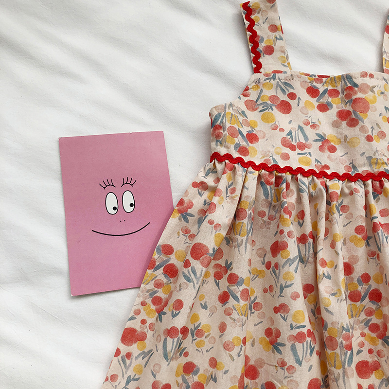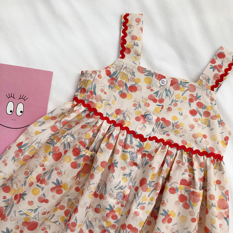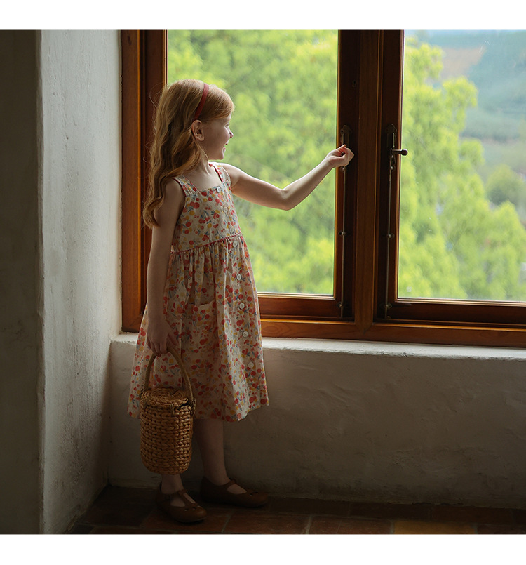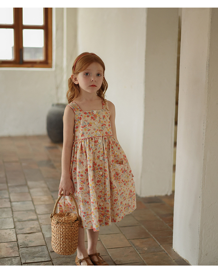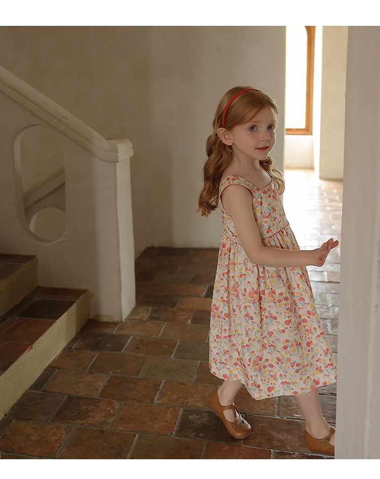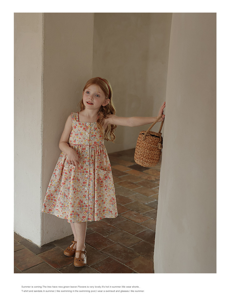 Gera ropa para niños vestido de honda para niñas 2024 verano para niños de estilo coreano cuello cuadrado vestido de chaleco impreso entrega de una pieza