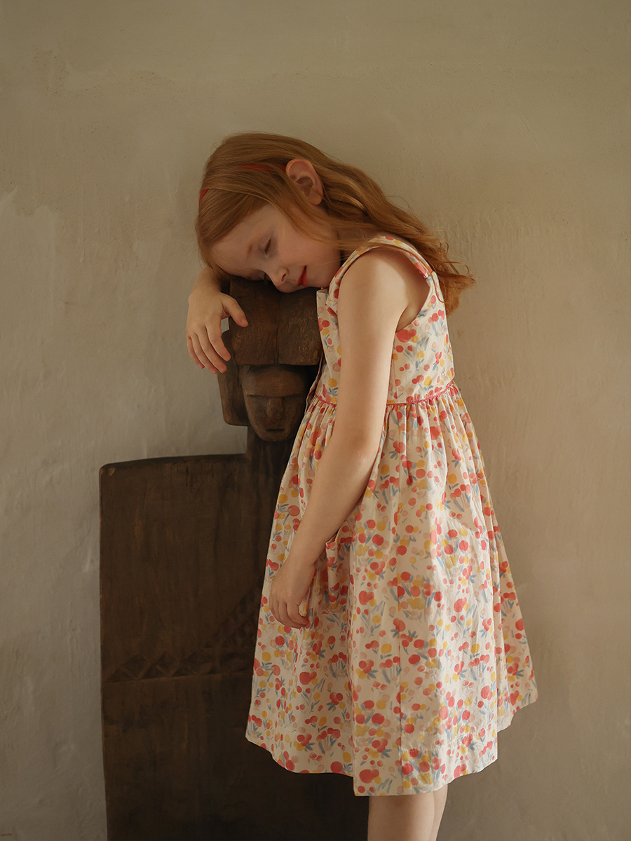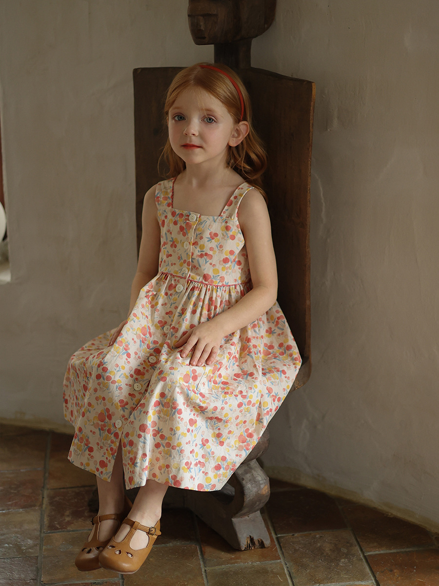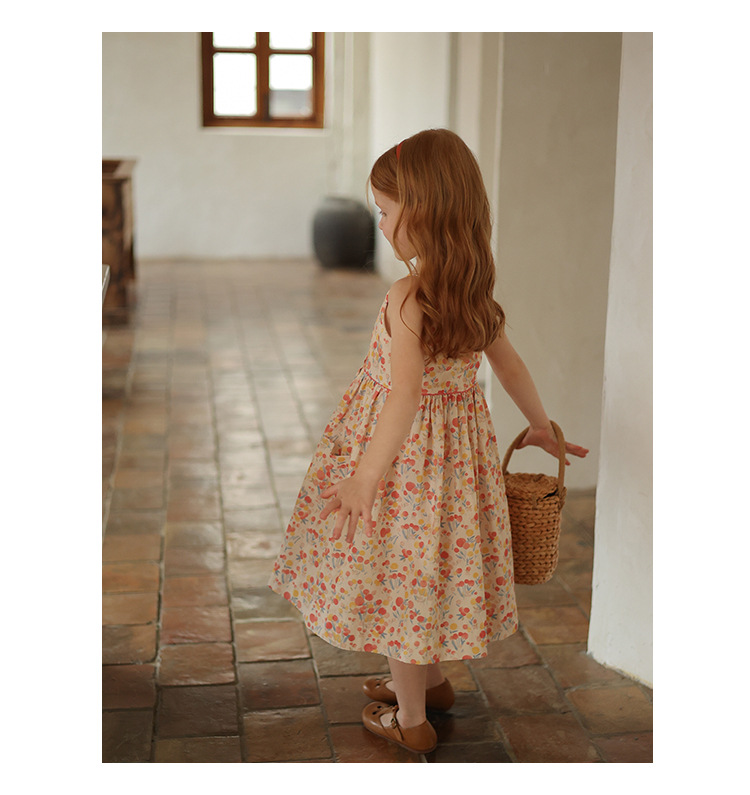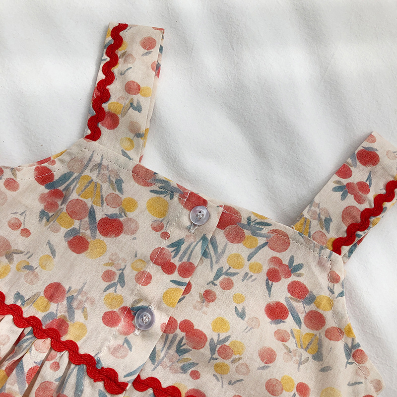 Gera ropa para niños vestido de honda para niñas 2024 verano para niños de estilo coreano cuello cuadrado vestido de chaleco impreso entrega de una pieza