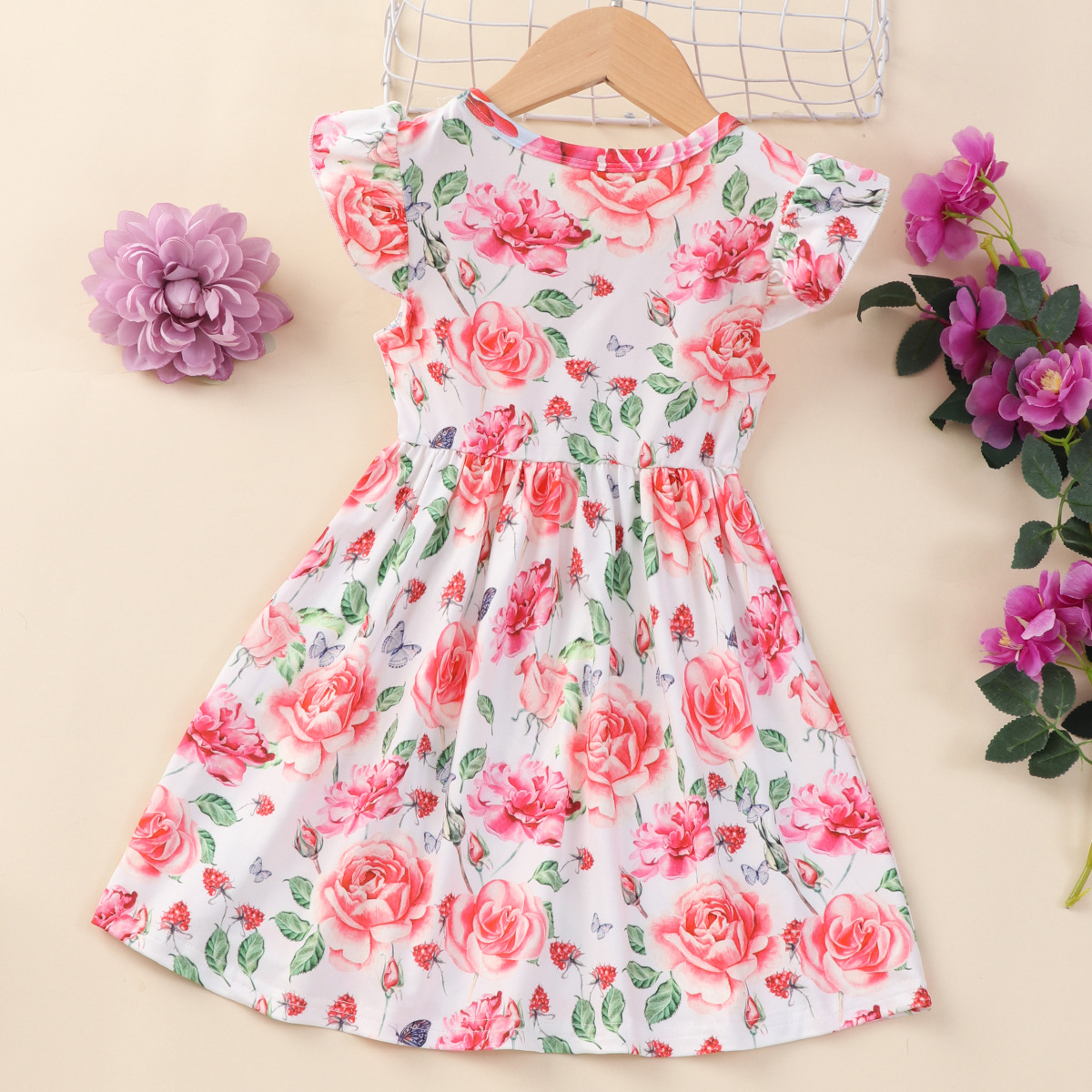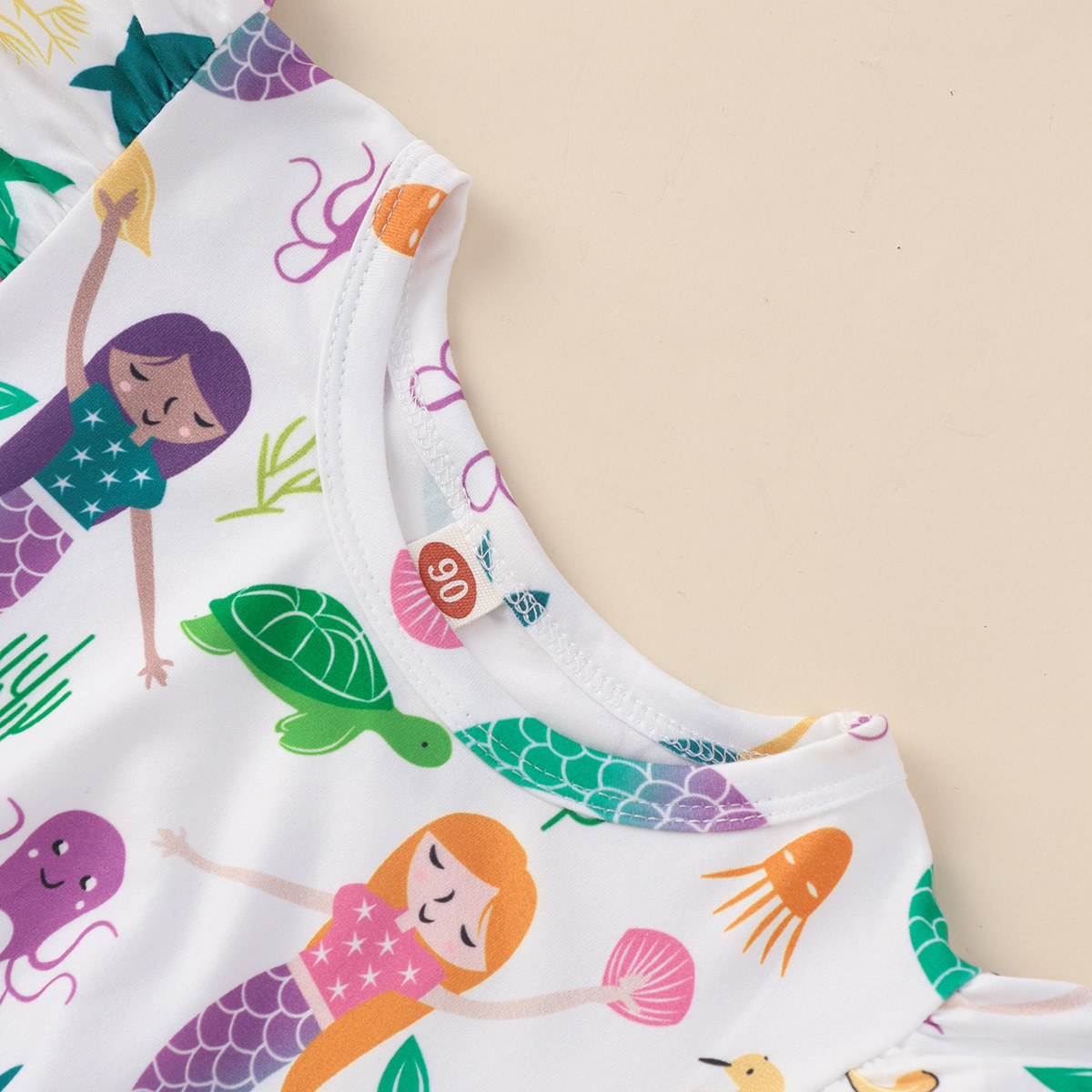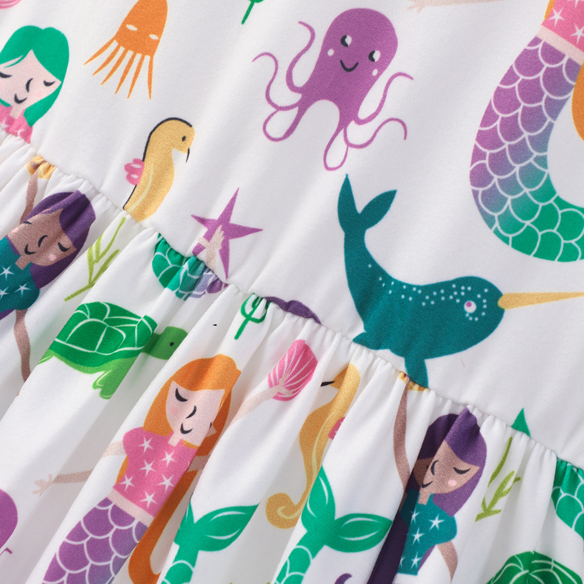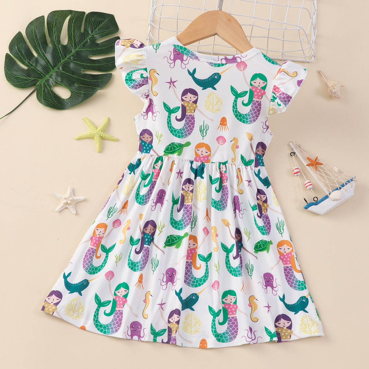 Patrón de la sirena los niños volando mangas transpirable fresco vestido cintura