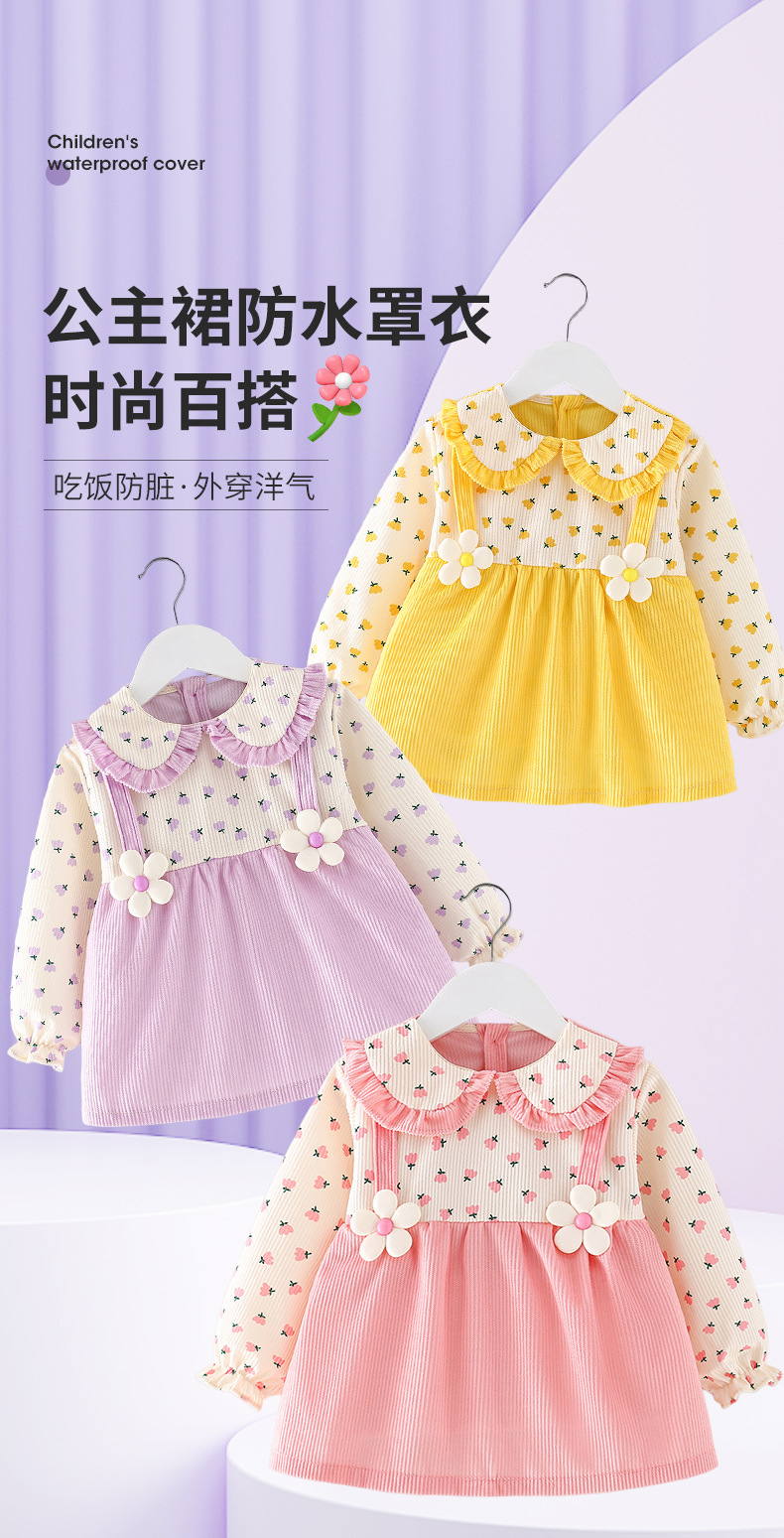 Smock baby girl PANA otoño e invierno a prueba de agua anti-sucio niños comiendo babero bebé vestido inverso ropa protectora delantal
