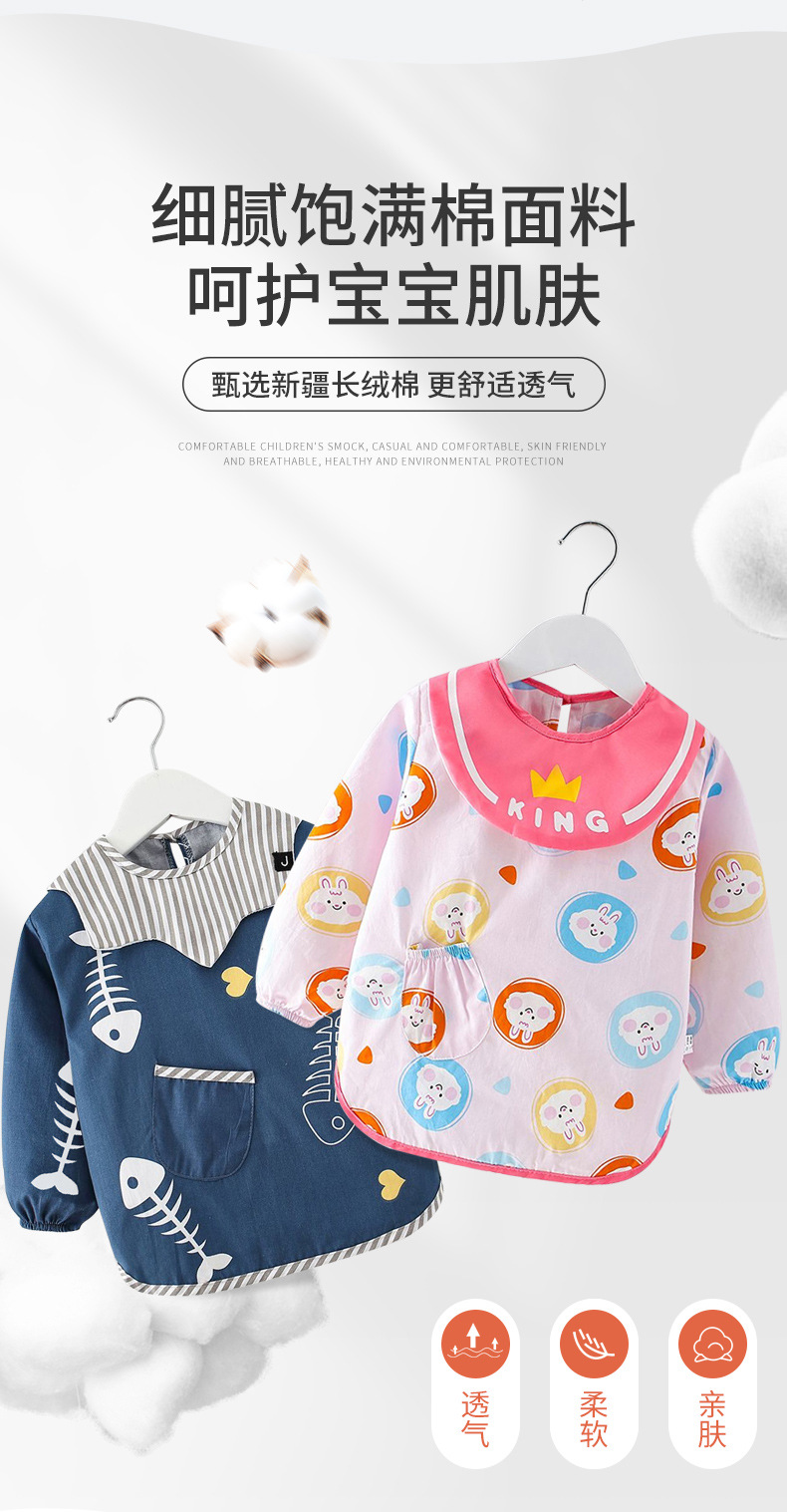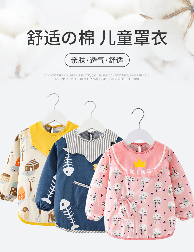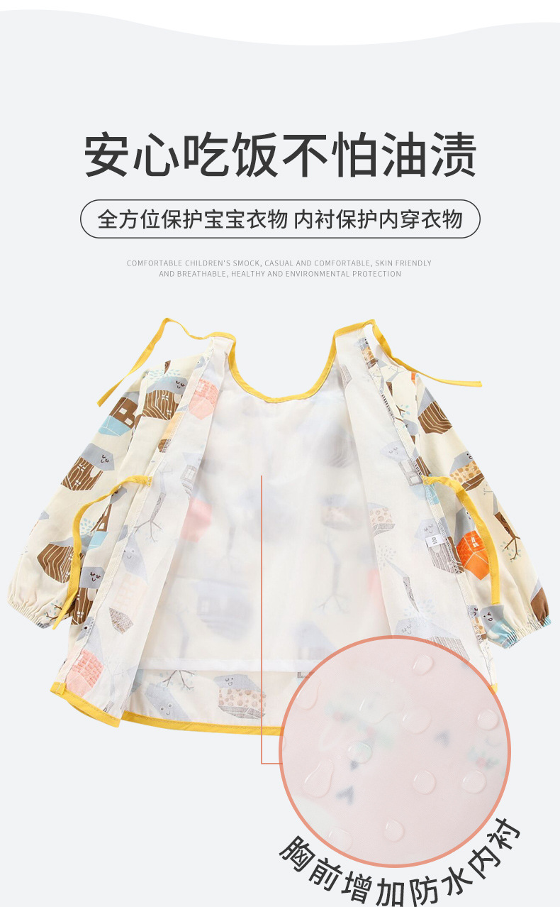 Abrigo de algodón puro para niños impermeable otoño e invierno Bebé de manga larga bebé anti-vestirse comer ropa protectora delantal blusa Nuevo
