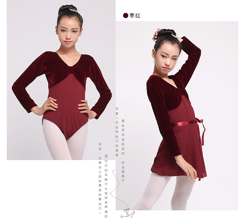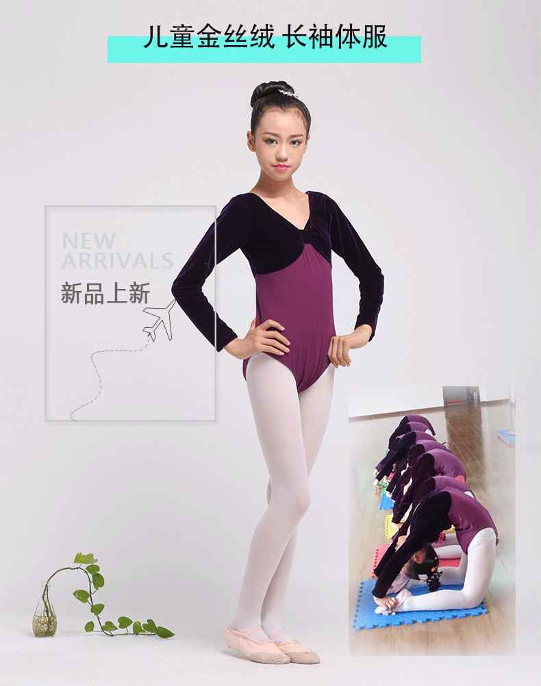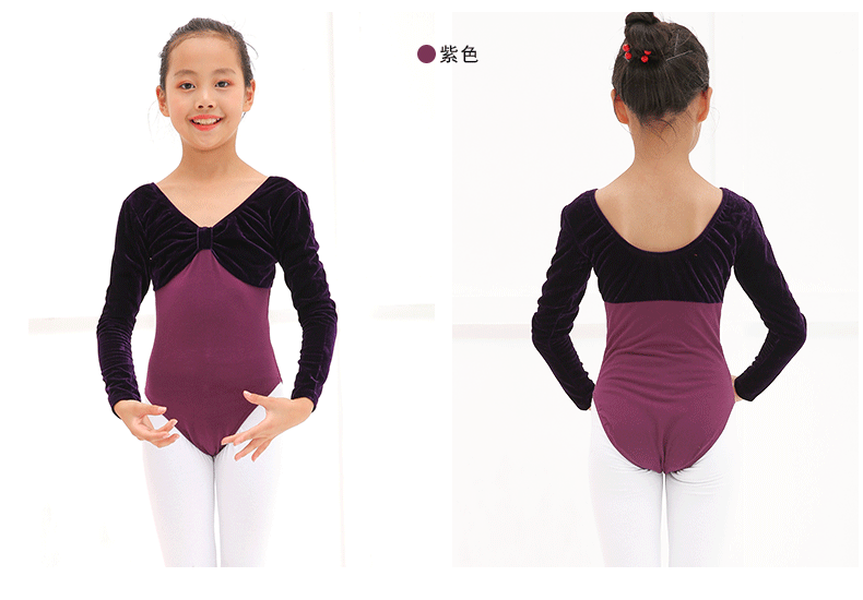 En stock de manga larga de primavera y otoño ropa de ballet ropa de práctica de una sola pieza para niños ropa de baile para niñas de terciopelo dorado ropa de clasificación de gimnasia